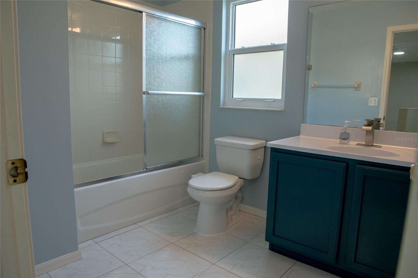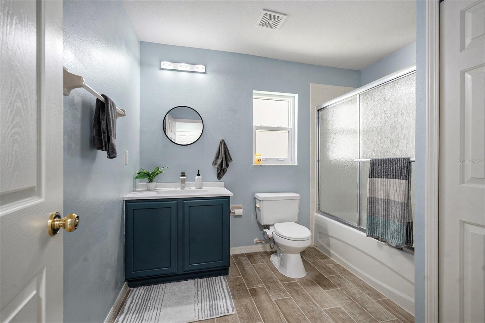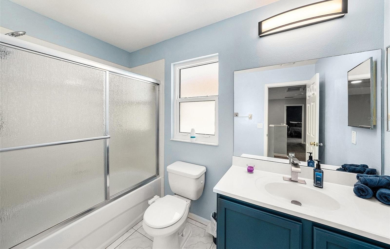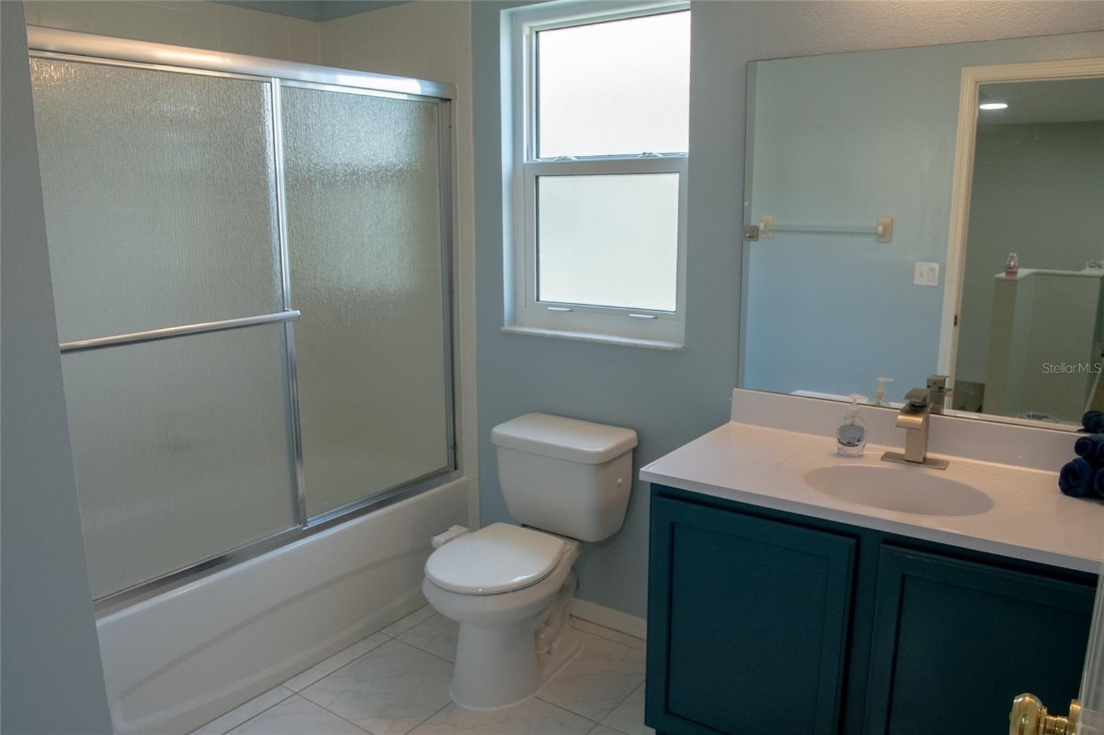 Energy efficiency and peace of mind come built in. Recently installed PGT impact-resistant windows, a roof only 3 years old with a transferable 25-year warranty, and a thoughtfully modified HVAC system (upgraded return airflow, relocated thermostats, whole-house fan, and attic vent fan) mean comfort and lower energy costs year-round. So picture yourself working in the yard or in the garage, and you're all dirty, and you step into the house-- take a few steps, turn into the laundry room, drop your dirty duds there, then step into the attached full bathroom and jump in the shower- so close by! What a set up!
