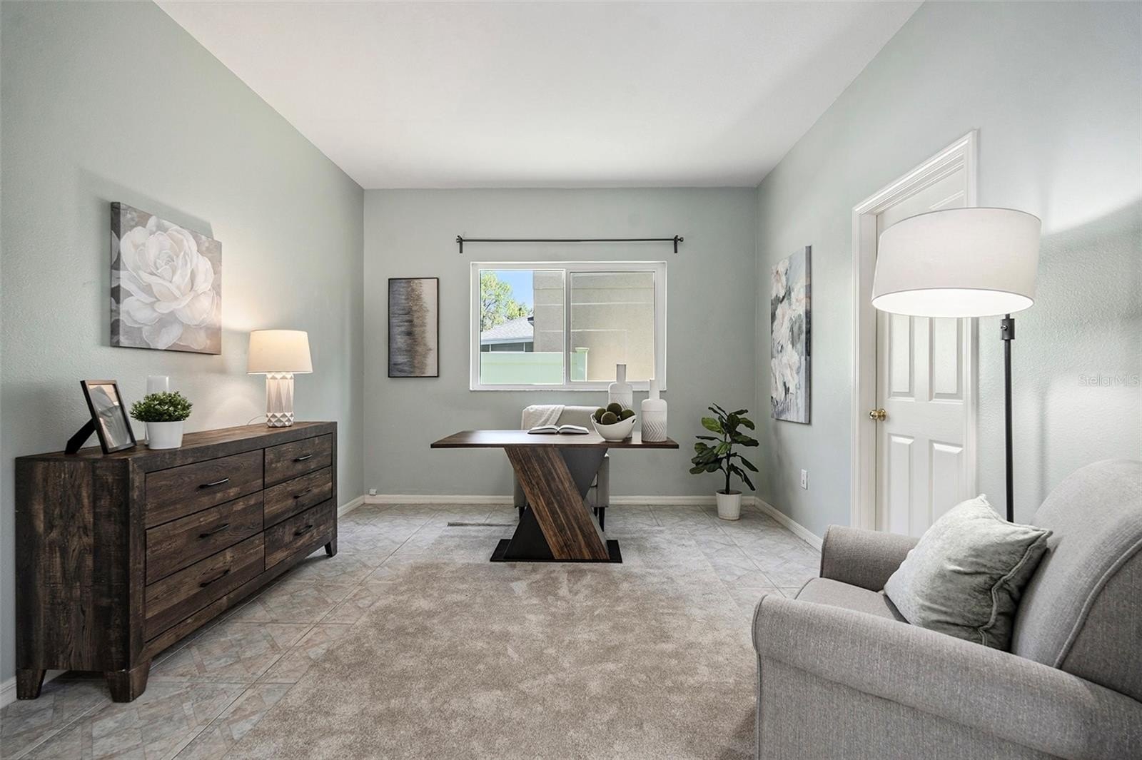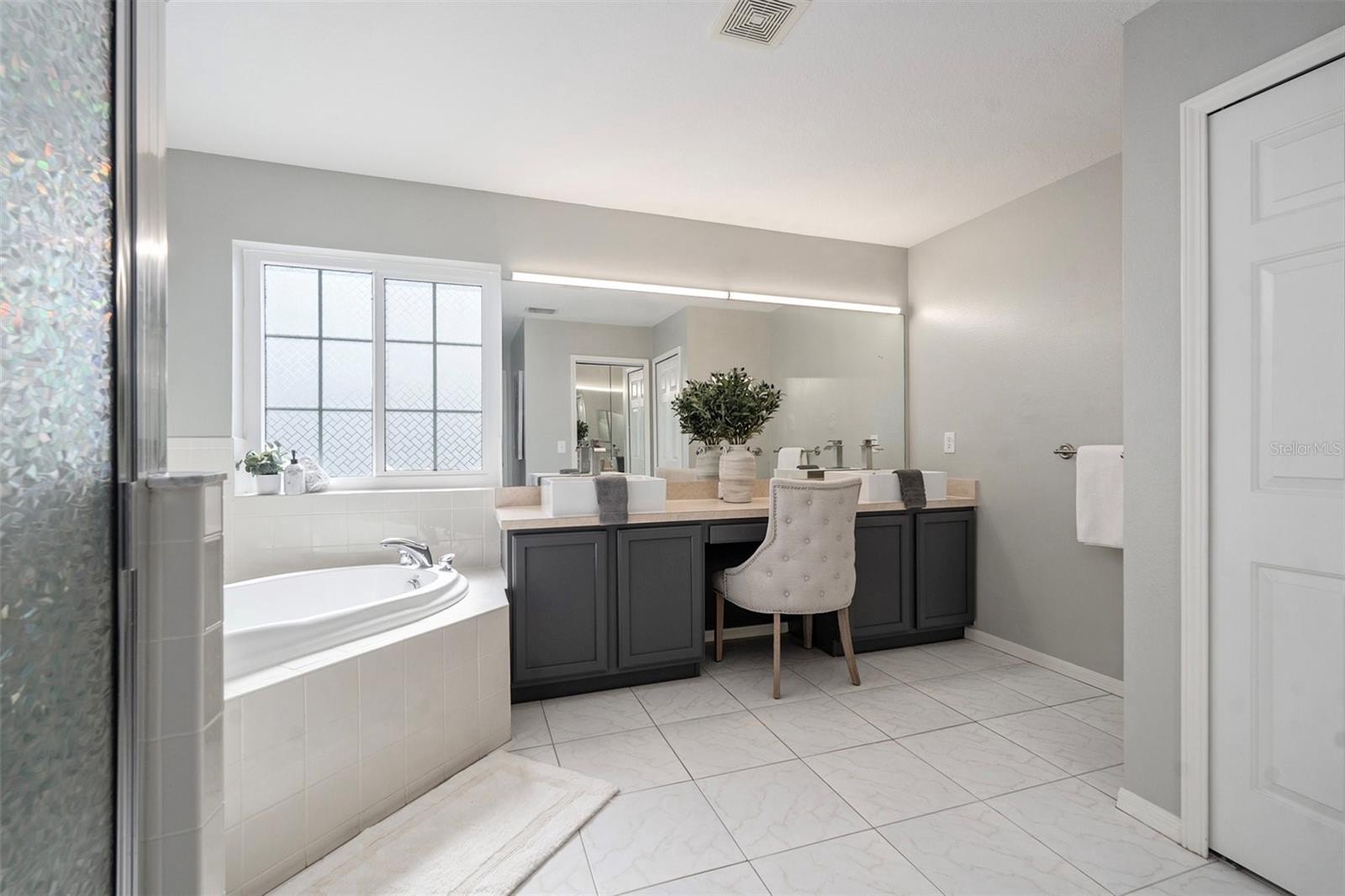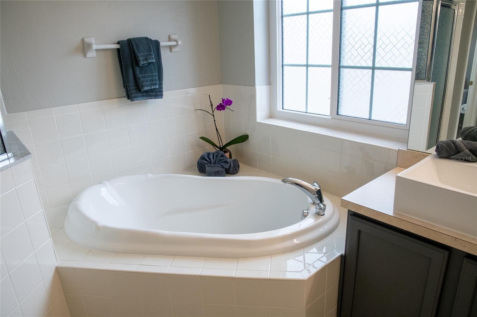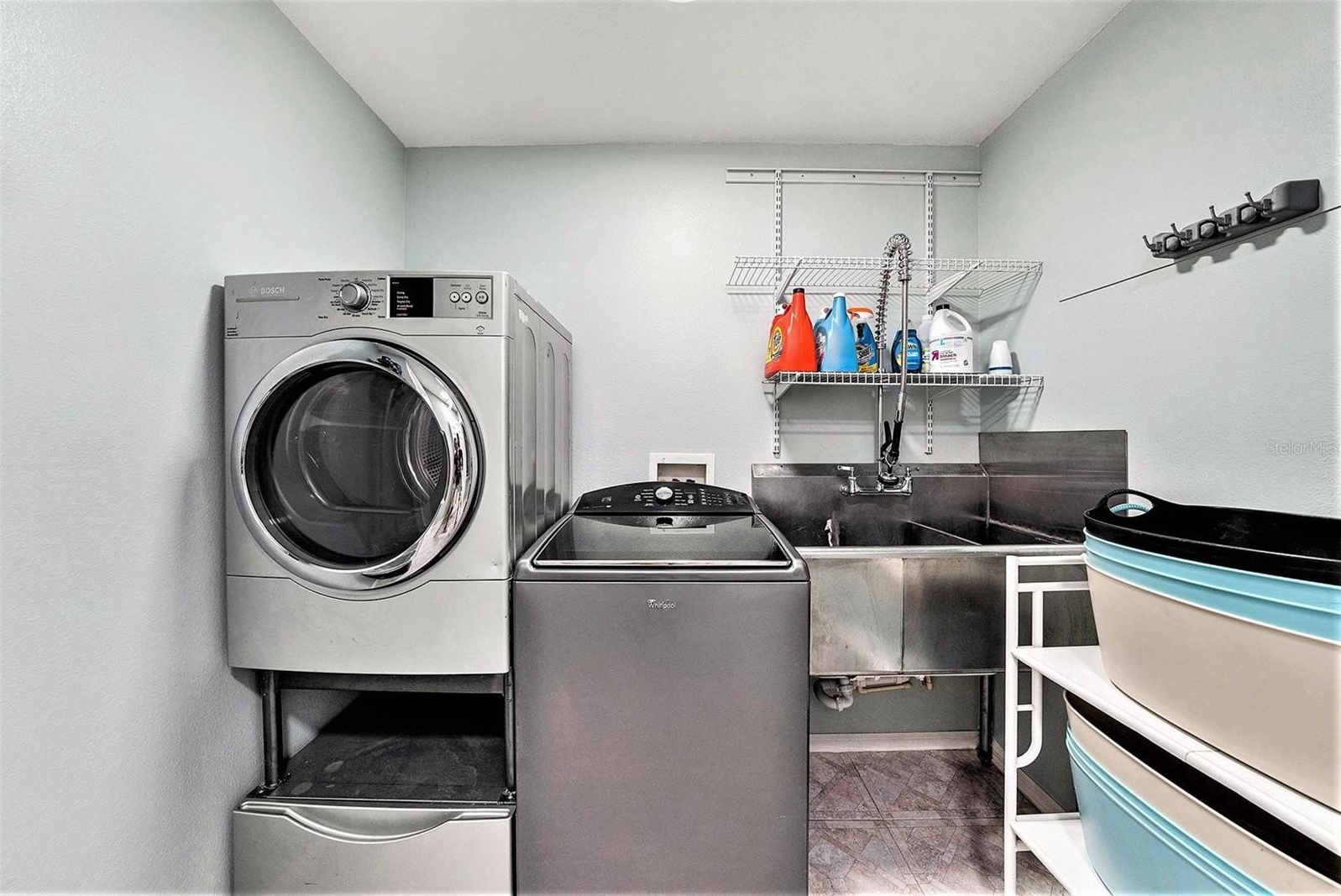 Energy efficiency and peace of mind come built in. Recently installed PGT impact-resistant windows, a roof only 3 years old with a transferable 25-year warranty, and a thoughtfully modified HVAC system (upgraded return airflow, relocated thermostats, whole-house fan, and attic vent fan) mean comfort and lower energy costs year-round. So picture yourself working in the yard or in the garage, and you're all dirty, and you step into the house-- take a few steps, turn into the laundry room, drop your dirty duds there, then step into the attached full bathroom and jump in the shower- so close by! What a set up!