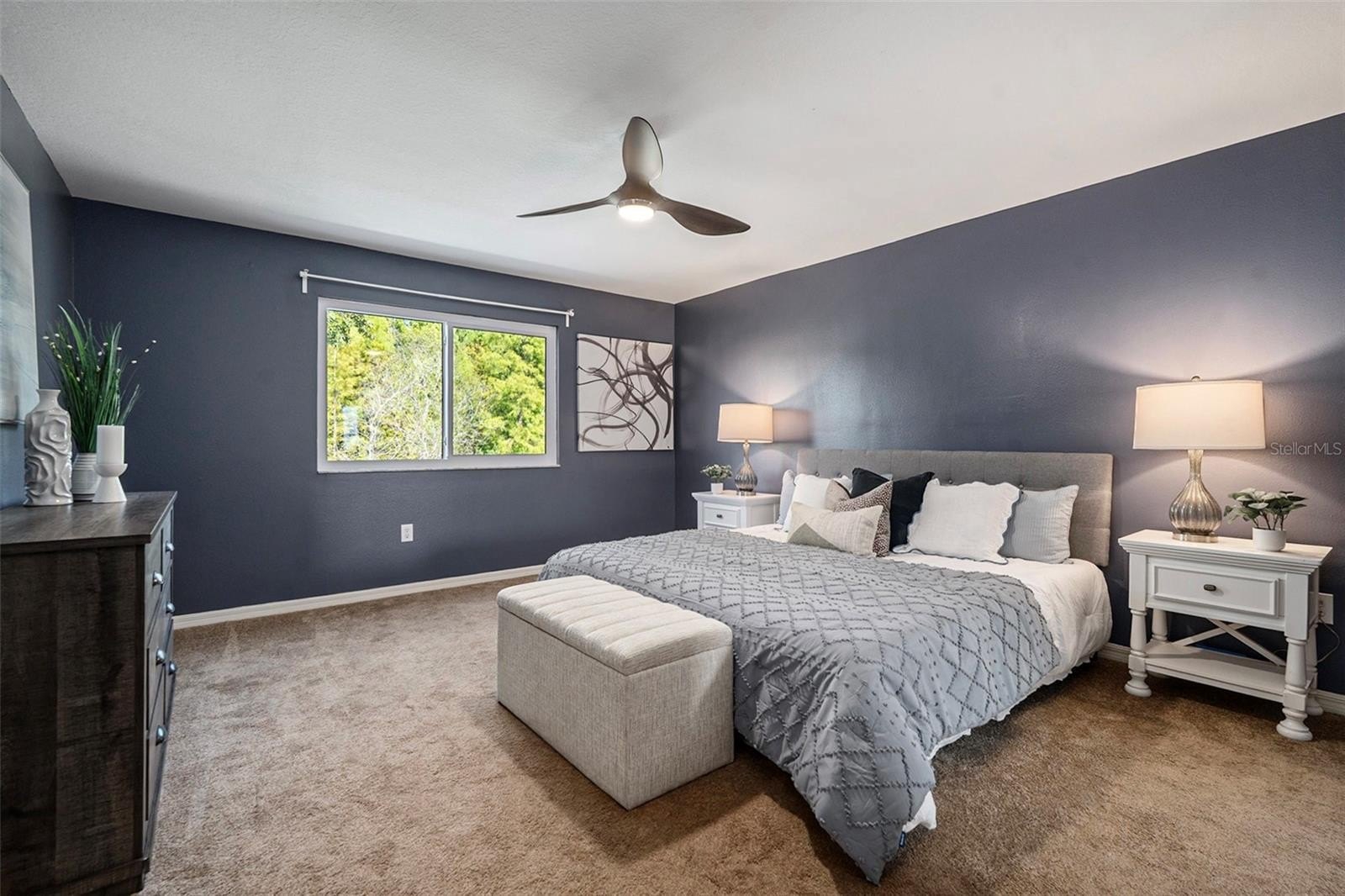 Upstairs, you’ll find newer carpeting and a spacious primary suite with dual closets. The en-suite bath boasts a self-powered shower system with multiple spray settings—perfect for a spa-like start or end to your day. All bathrooms have been refreshed with updated countertops and newer toilets.