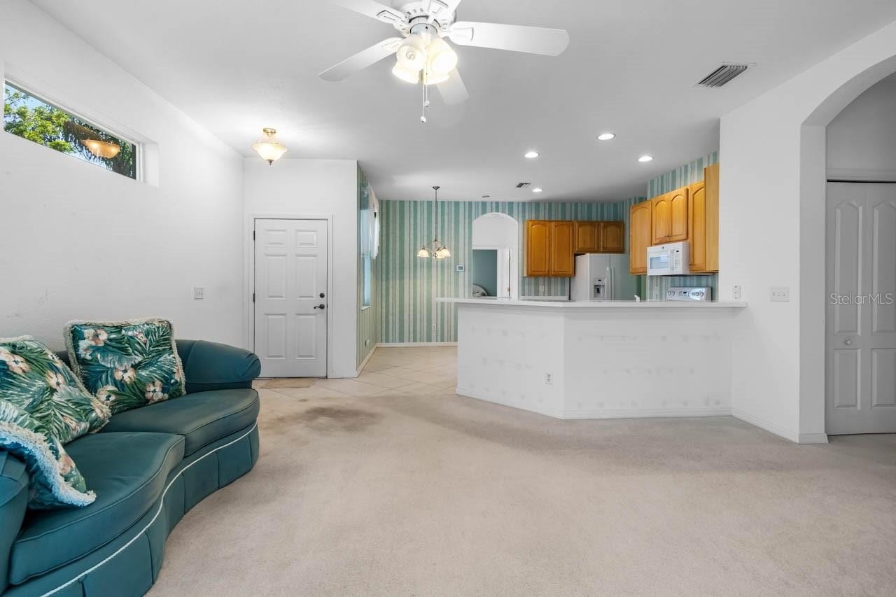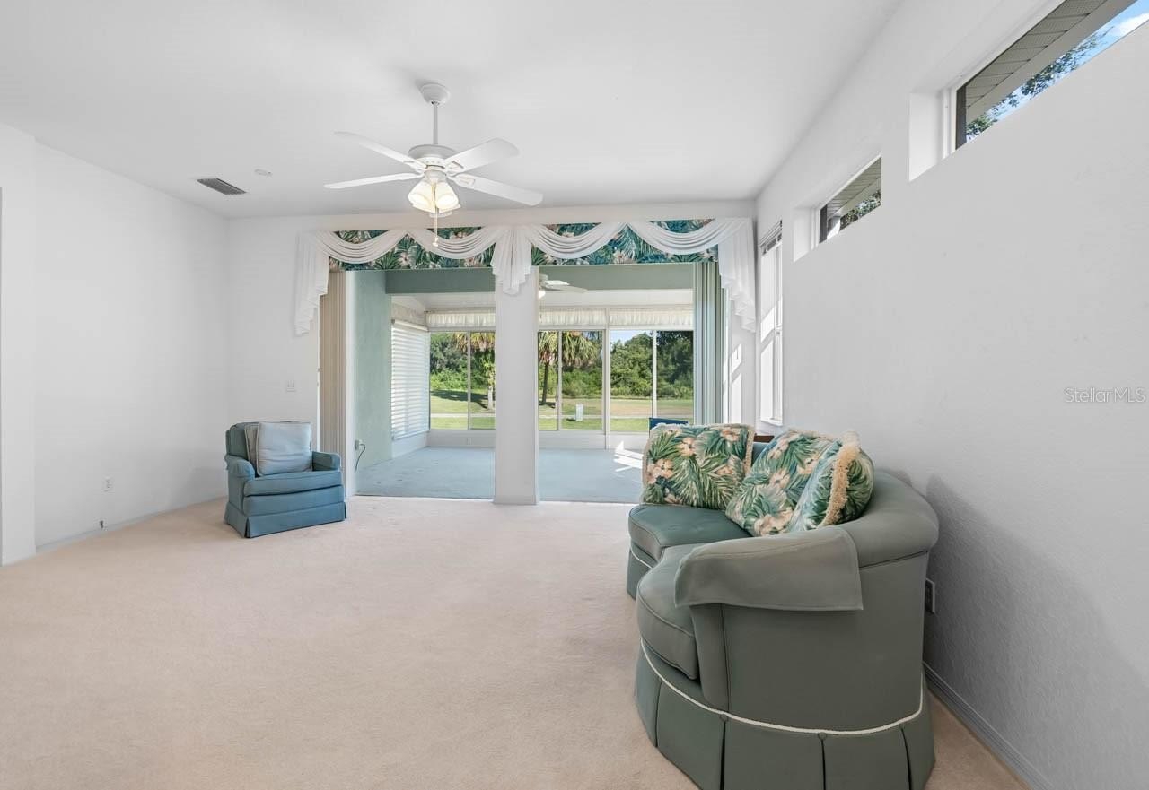 Look, new great price for home with such a great view. Come to Kings Point and enjoy the carefree lifestyle. This lovely home has large FL Room overlooking a view of the golf course and water. There are 3 bedrooms one is great for a home office. A large eat in kitchen that overlooks the great room. This home is located on a quiet street close to the South Entrance. Electric Stove, Microwave, Dishwasher, Refrigerator, Washer, Water Heater and AC have been recently replaced. The home is plumbed for gas so that is an option for new owner. Golf cart can be included with your purchase. The amenities are too many to mention all of them but the N Club has an 850 seat theatre, many card and function rooms available to residents as well as cafe service light breakfast and lunch. The S. Club has a full service bar and casual dining as well as card and entertainment space. There are 6 pools, many pickleball courts, tennis, and corn hole. The 2020 Center is full service spa and fitness center with many classes offered weekly. There is golf available thru Clublink. What are you waiting for begin living the carefree lifestyle in the sunshine.