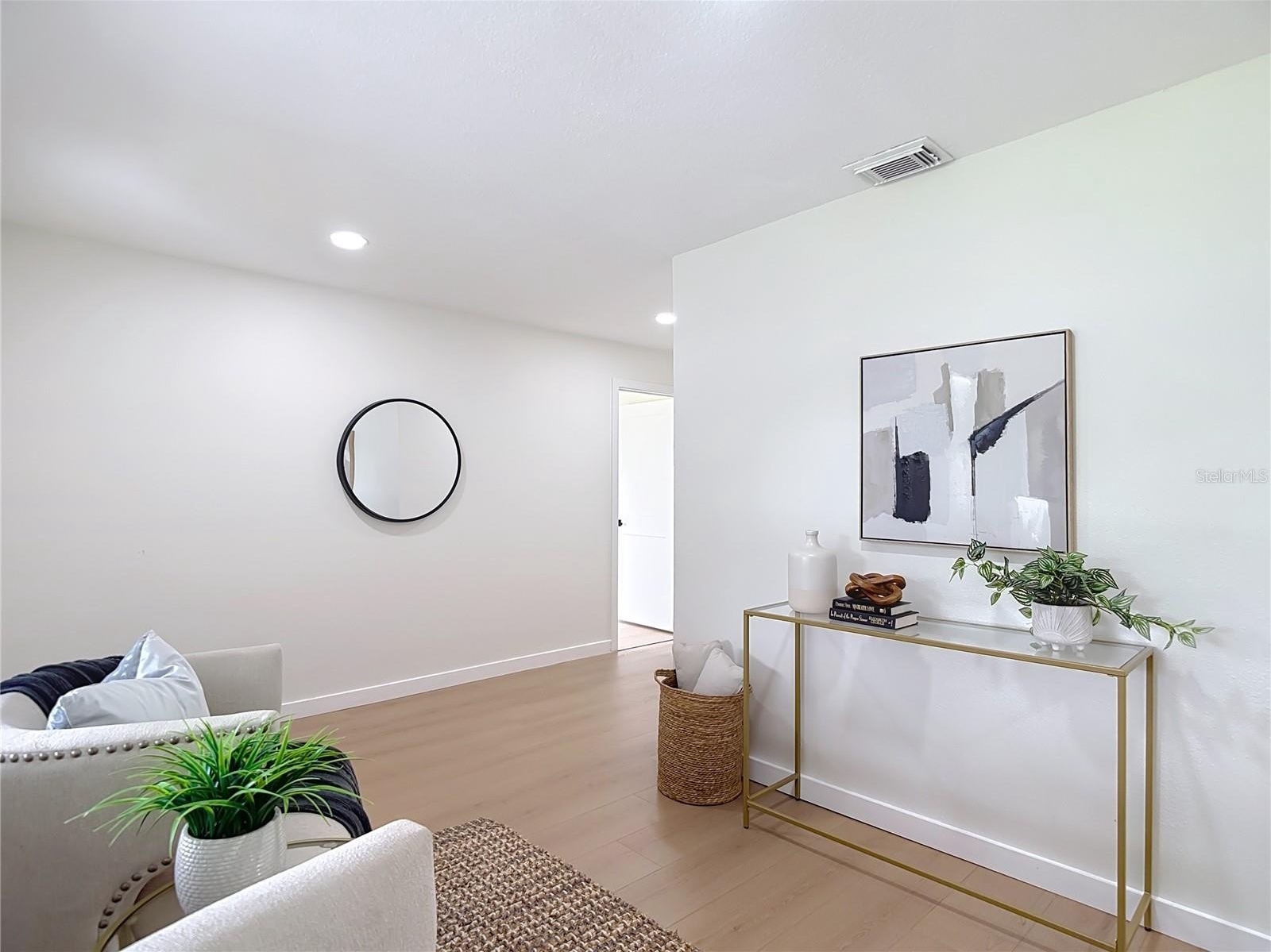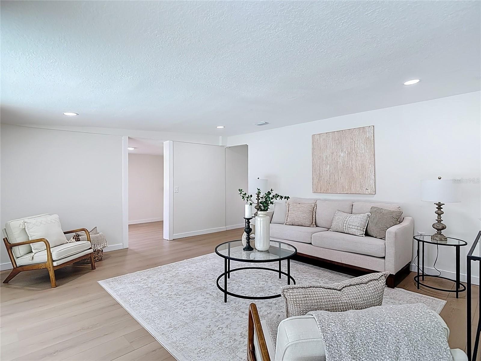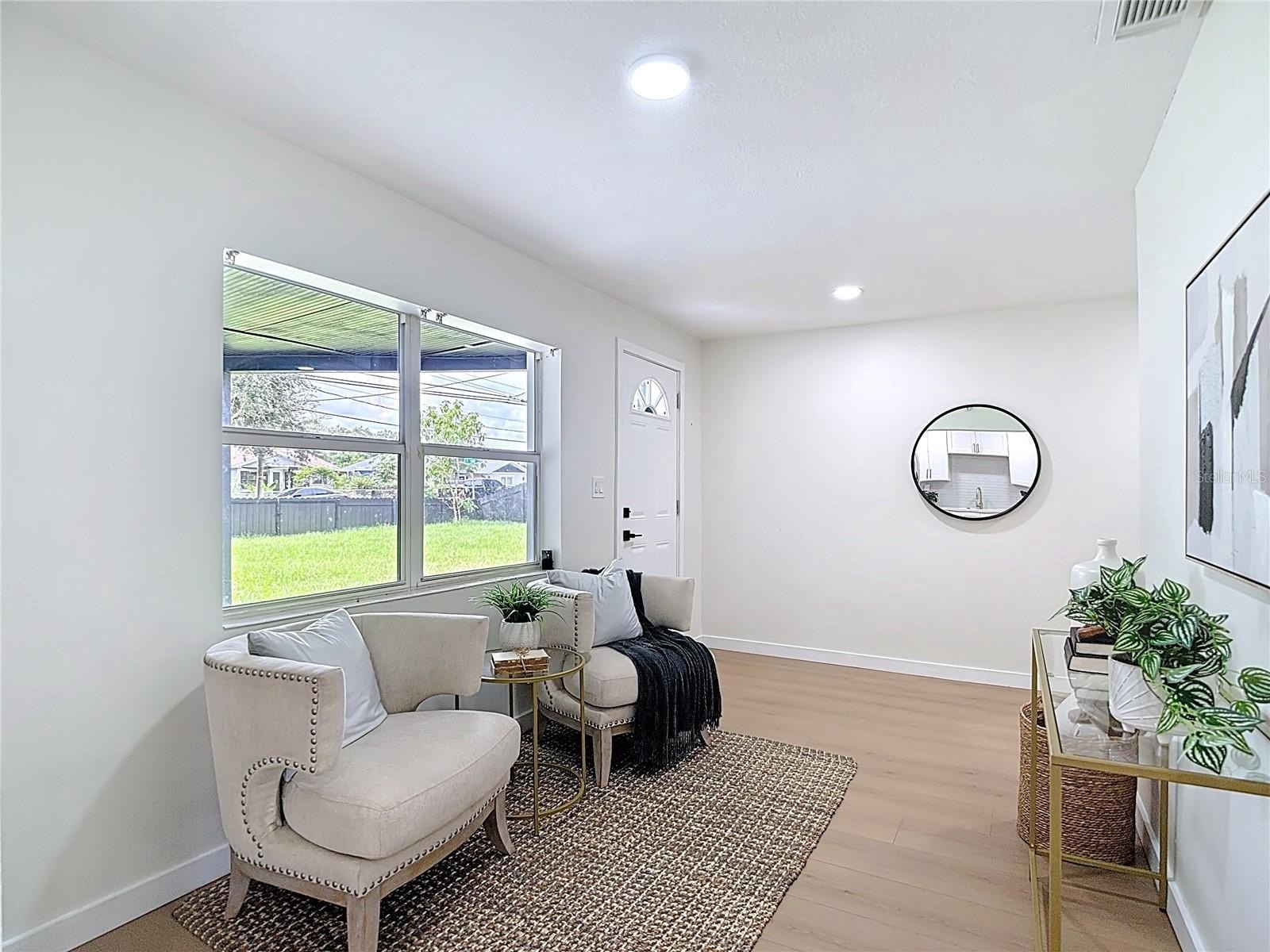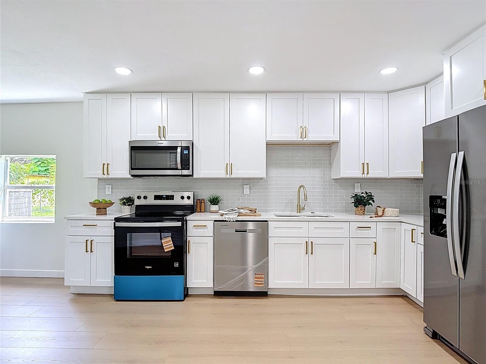 Inside, the brand-new kitchen features quartz countertops, solid wood cabinetry, and stainless steel appliances, flowing into a modern layout with a dedicated entertainment area, separate living, dining and family rooms, and luxury vinyl plank flooring throughout. Enjoy two and a half beautifully updated bathrooms and a custom design that balances comfort and style.