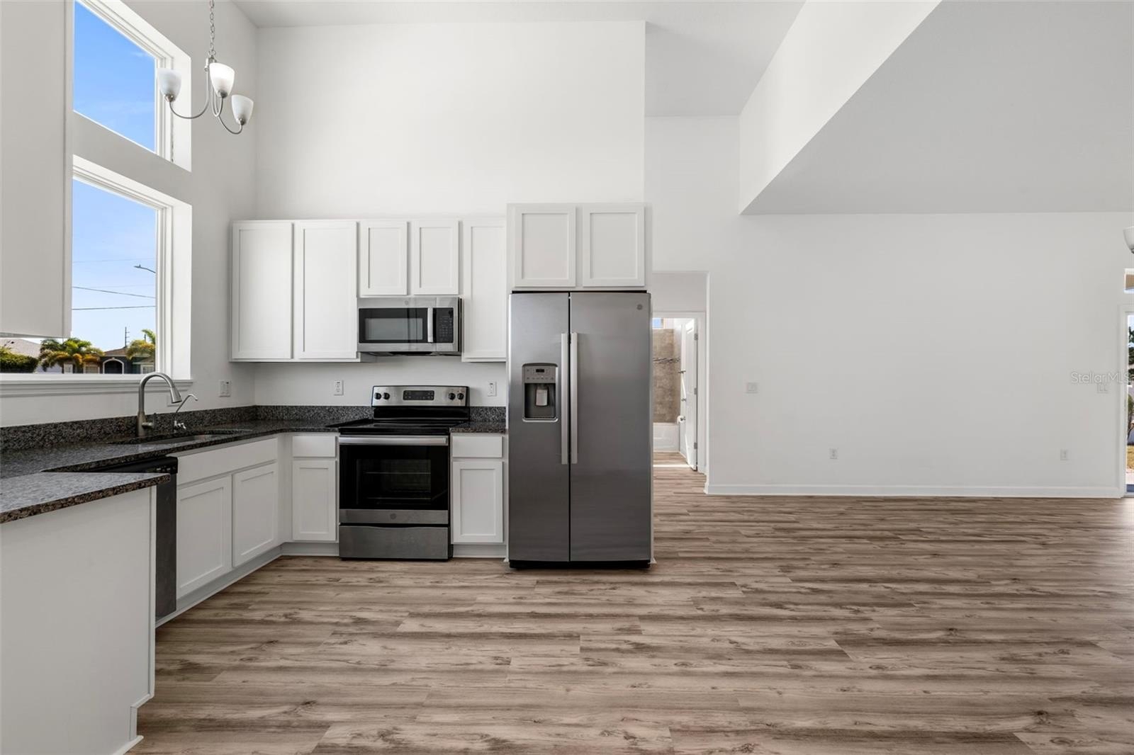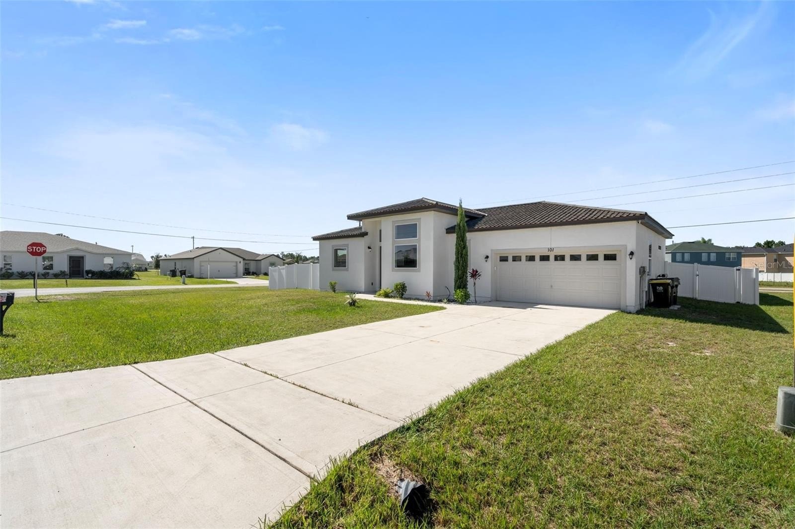 THIS IS YOUR NEW HOME: BUILT IN 2021, NOT a Cookie Cutter, It is a Classy with HIGH CEILINGS and easy Flow. Interior recently painted, with new CARPET in all bedrooms and new Luxury Vynil Planks else where. There are 3 bedrooms and two bathrooms to please your family needs. A rear Covered Porch Connects the patio with sliding doors to the living room. The spacious OPEN FLOOR PLAN provides Granite Countertops in Kitchen and bathrooms, Plus Stainless Steel Appliances, and Plenty Natural Light. tHe separate inside laundry room includes the Washer and dryer. The two Car garage and its drive way can fit up to six cars. The lot is a CORNER LOT with .24 acre and all the patio is FENCED. The HUGE patio connects to the house entering thru the glass sliding door in the REAR COVERED PORCH, adding for more entertainment.