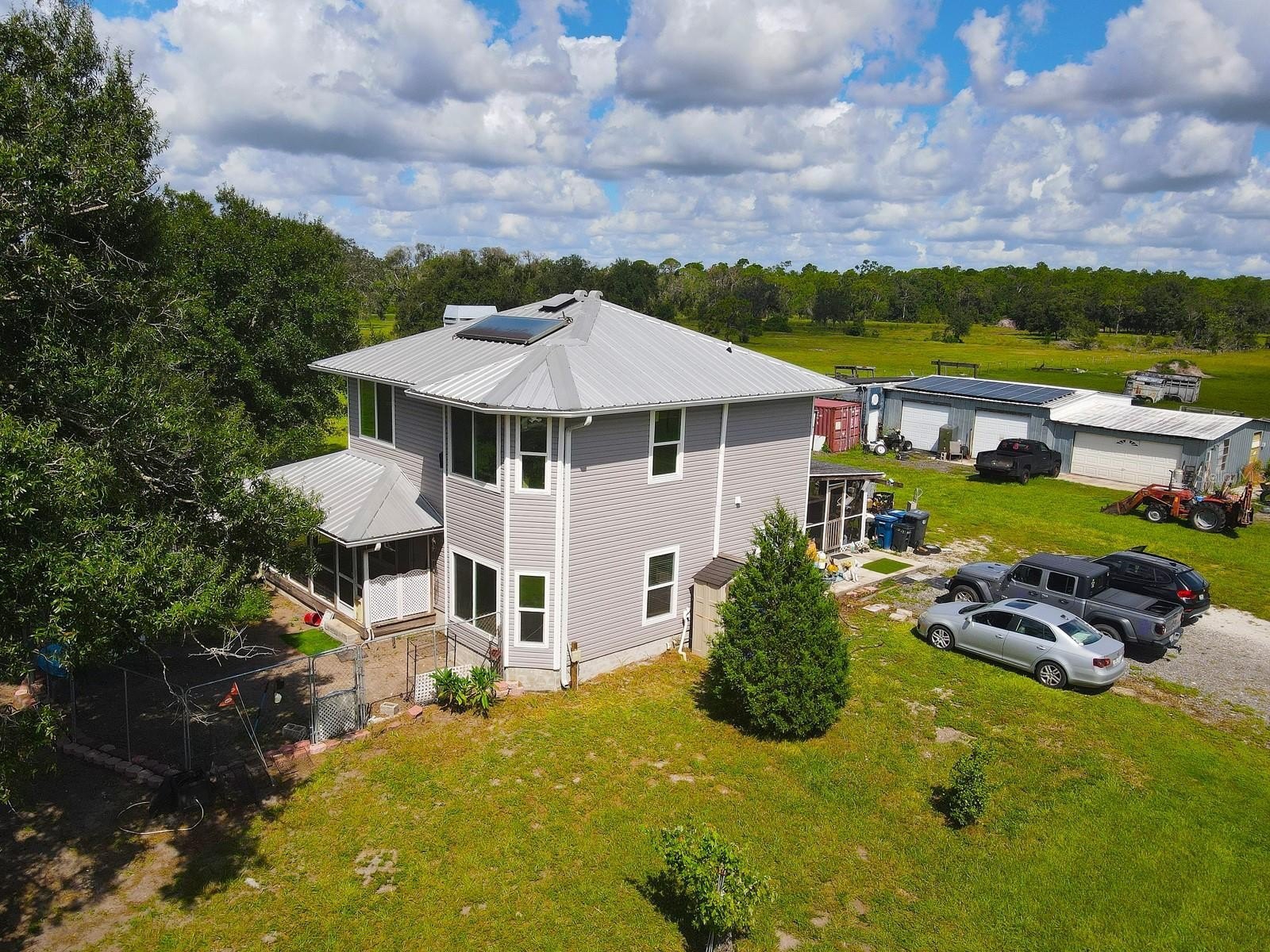 NEW PRICE + SOLAR ASSIST + METAL ROOF! This beautifully updated 3-bedroom home sits on 5 ACRES of private, fully usable land in Myakka City—no HOA, NO DEED RESTRICTIONS, zoned AGRICULTURAL! Enjoy peace of mind with a METAL ROOD, IMPACT-RESISTANT WINDOWS, NEW VINYL SIDING, and SOLAR ASSIST for energy savings... ASSUMABLE VA LOAN...The UPDATED KITCHEN and open layout make it perfect for entertaining or quiet country living. Bring your horses, toys, or RV—plenty of space and freedom to live your way. NO DEED RESTRICTIONS. This 2-story house has a great structure featuring a spacious floor plan with 3-bedrooms, 2-1/2 baths, office/den, UPDATED KITCHEN with quartz counter-tops, solid wood cabinets, soft close hinges and drawers. Updated appliances include 4-door Samsung stainless fridge, stainless over-size deep sink, gas range with convection and air-fry capabilities, over-the range microwave with 12" turntable. Updated panty storage area and mud room with exterior door access. SOLAR ASSIST for electric and hot water. Spray foam in attic. METAL ROOF / NEW VINYL SIDING 2022 / IMPACT RESISTANT WINDOWS rewrapped and sealed in 2022. Living room / dining room has wood burning fireplace. 5 ACRES cross-fenced with pond; 60 x 30 WORKSHOP / STORAGE space on concrete slab, 4 GARAGE DOORS with AUTO LIFT and partial AC office space and RV hook-up;chicken coop and a cross-fenced pasture. NO HOA OR CDD fees; zoned AGRICULTURAL including horses, livestock and RVs. Bring your vision to this well-located home with endless potential! Just minutes from Lakewood Ranch yet worlds away from the hustle! Great location near the new Solana Golf Course, Myakka City and close to Sarasota / Bradenton / Lakewood Ranch, I-75, UTC mall and beaches. ZILLOW DOES NOT INCLUDE ALL THE EXTRAS!! This property is priced to sell quickly in its current AS-IS condition. Perfect for buyers looking to customize or investors looking for their next project. Don’t miss this rare opportunity! Priced to move!