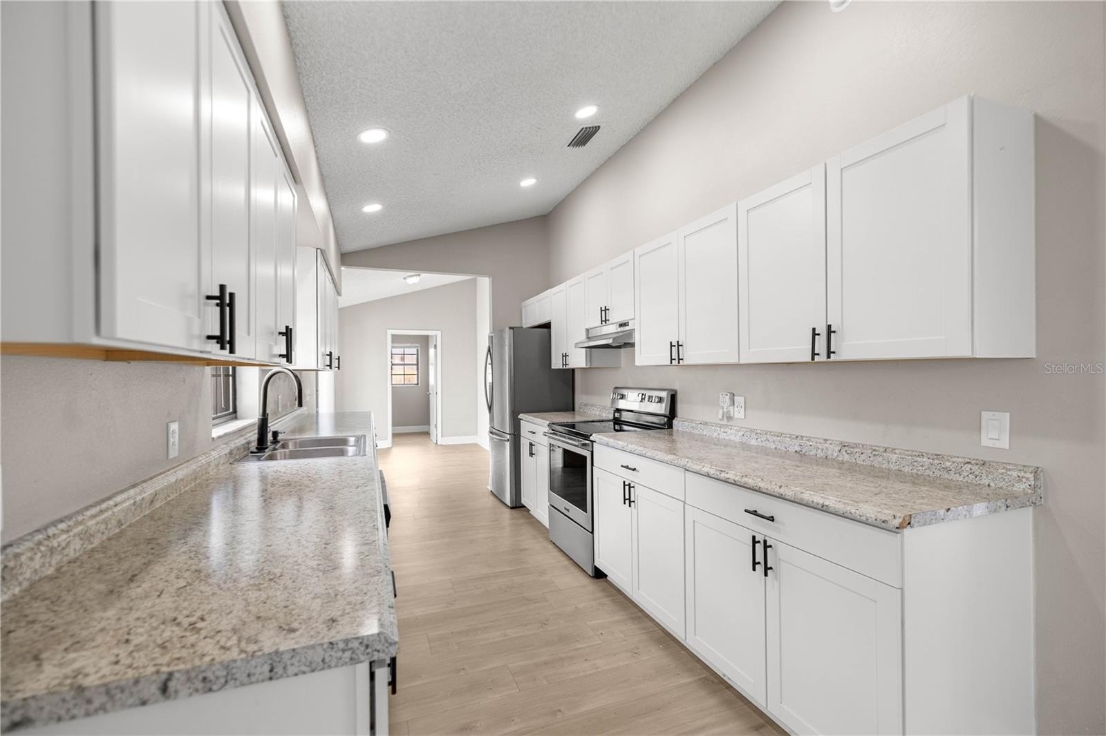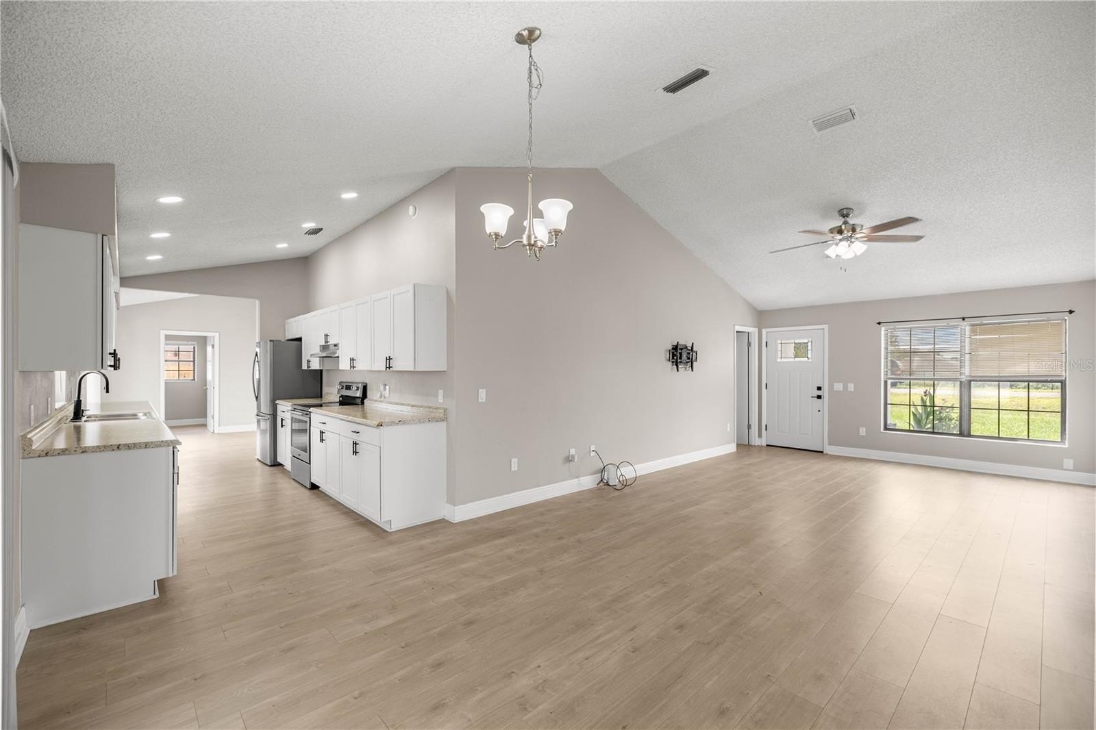 Welcome to this charming 3-Bedroom, 2-Bathroom concrete block and stucco home in the desirable Silver Springs Shores Unit 23 of Ocala, Florida. Featuring an open floor plan, this home has been thoughtfully updated with modern bathrooms, a refreshed kitchen, newer flooring, and a fresh exterior paint job. Enjoy the convenience of a dedicated laundry room, stainless steel appliances, and a spacious screened-in back patio that leads to a large backyard-perfect for entertaining or relaxing outdoors. The spacious two-car garage is great for your cars to to store your toys. Located in the welcoming Porter Shores neighborhood, where neighbors connect through a private Facebook group to share community updates, host fun events like the annual Golf Cart parade, and exchange local goods. Enjoy the nearby outdoor activities at Silver Springs State Park and Baseline Trailhead Park, in proximity to trails accessible from the back of the neighborhood. Ideally located just minutes from downtown Ocala, the World Equestrian Center, and a variety of shopping and dining options, this home combines comfort, style, and accessibility.