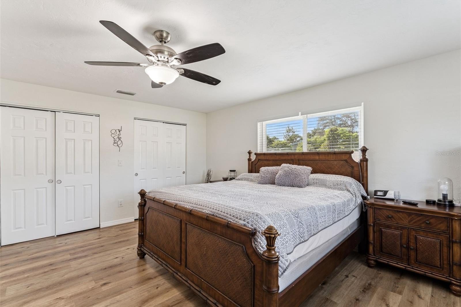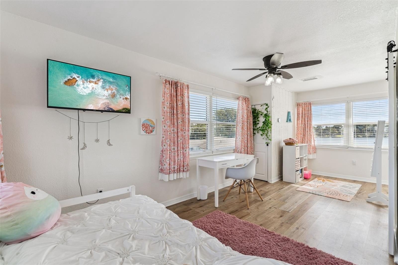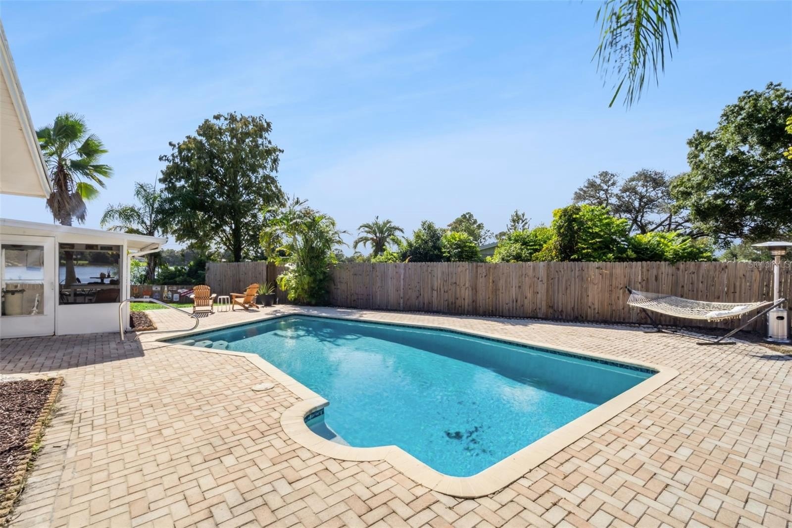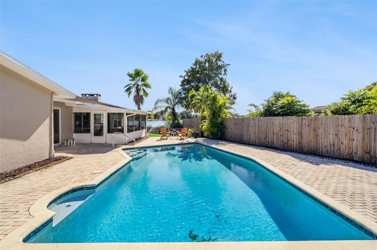 Each evening you can watch a stunning sunset over Clear Lake from your living room in this beautifully renovated 4-bedroom, 3-bathroom pool home located on Eva Street. Situated on a large cul de sac with plenty of room to park all your Toys! As you enter into this fully renovated home you will be greeted with lots of natural light, stunning lake view and a wood burning fireplace. This home features luxury vinyl flooring throughout all the rooms. Adjacent to the living room you will find the dining room and updated kitchen with stainless steel appliances, granite countertops and modern cabinets. Sliding glass doors lead off the dining area that lead to the screened patio and the spacious fenced private pool area. The two primary bedrooms are on the main level and the additional 2 bedrooms are upstairs with a Jack and Jill bath. This home has been fully cosmetically renovated with new doors, lighting, remodeled baths, kitchen and replumbed, 11 windows replaced, new insulation and siding. Indoor large laundry room and a 2 car garage. Bring your fishing poles, canoes, paddle boards and more and enjoy this beautiful lake. No HOA! Call for your private showing today.