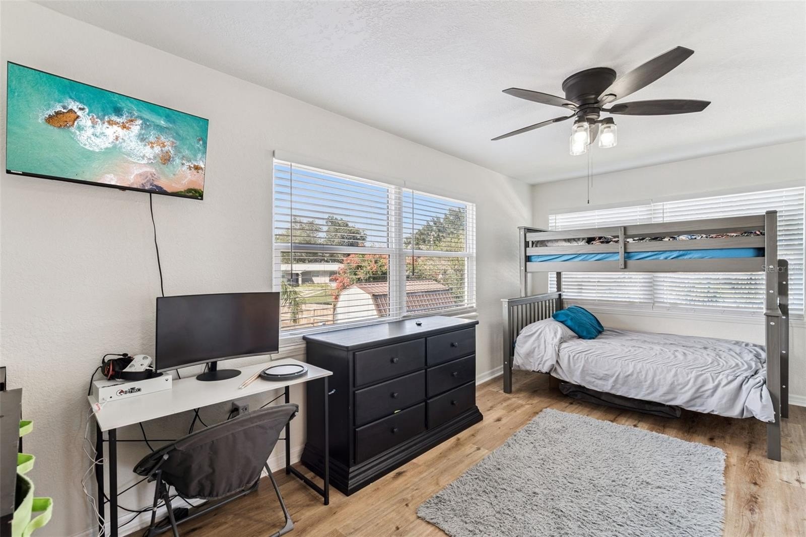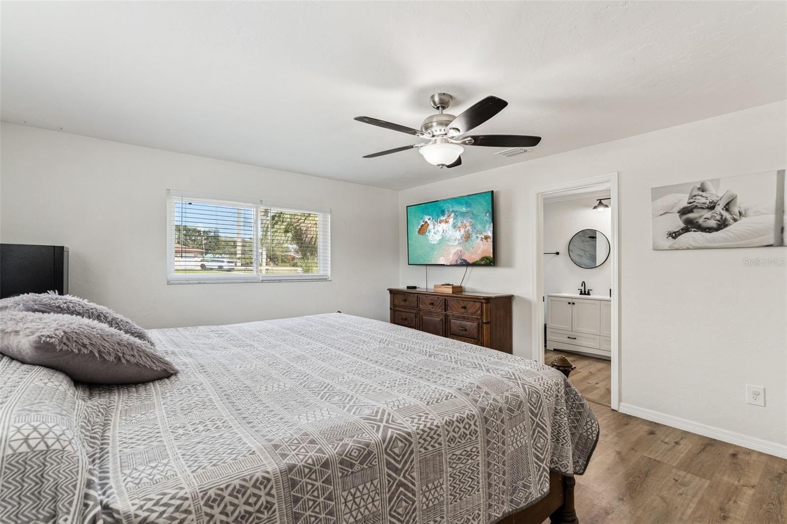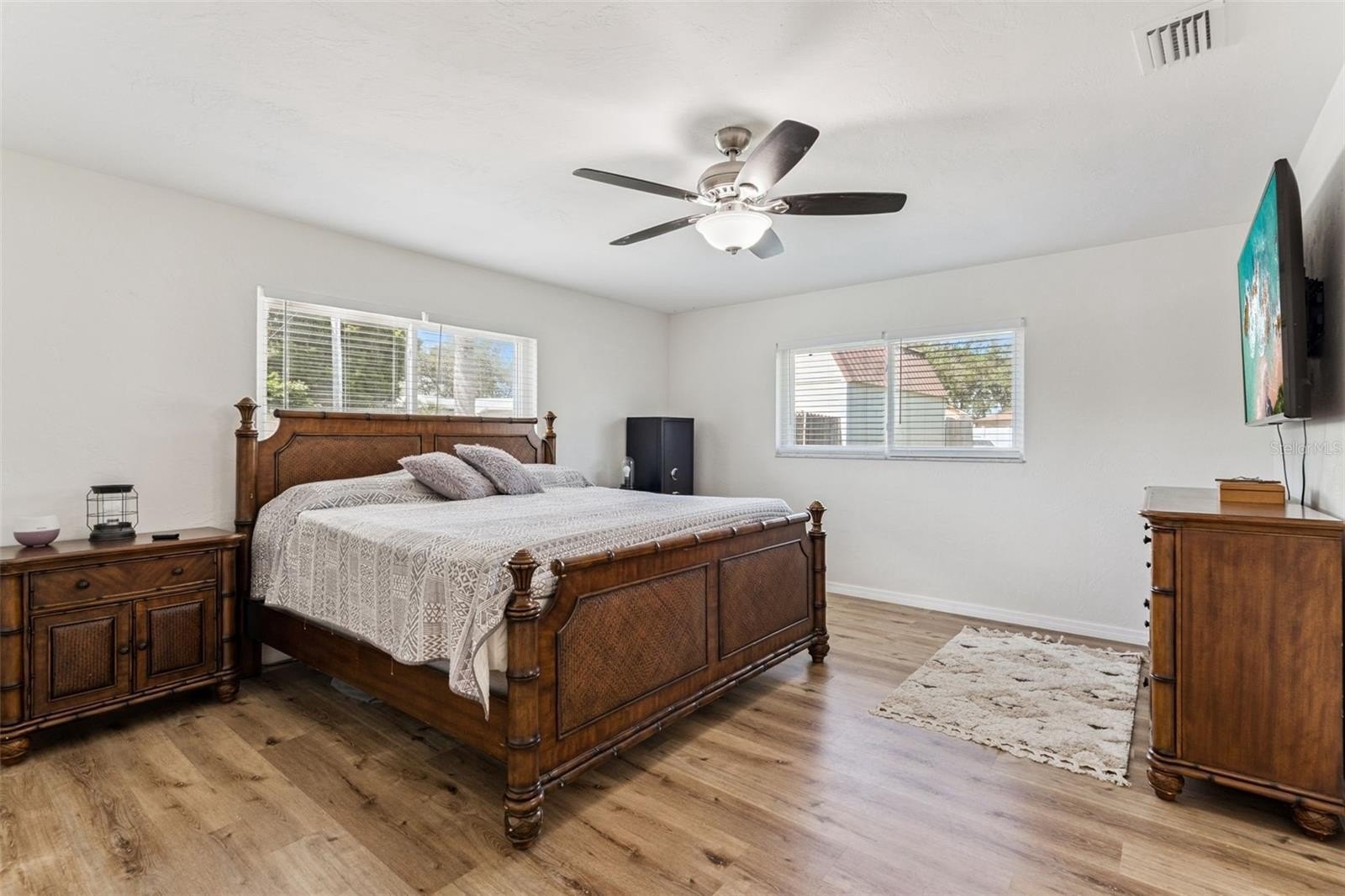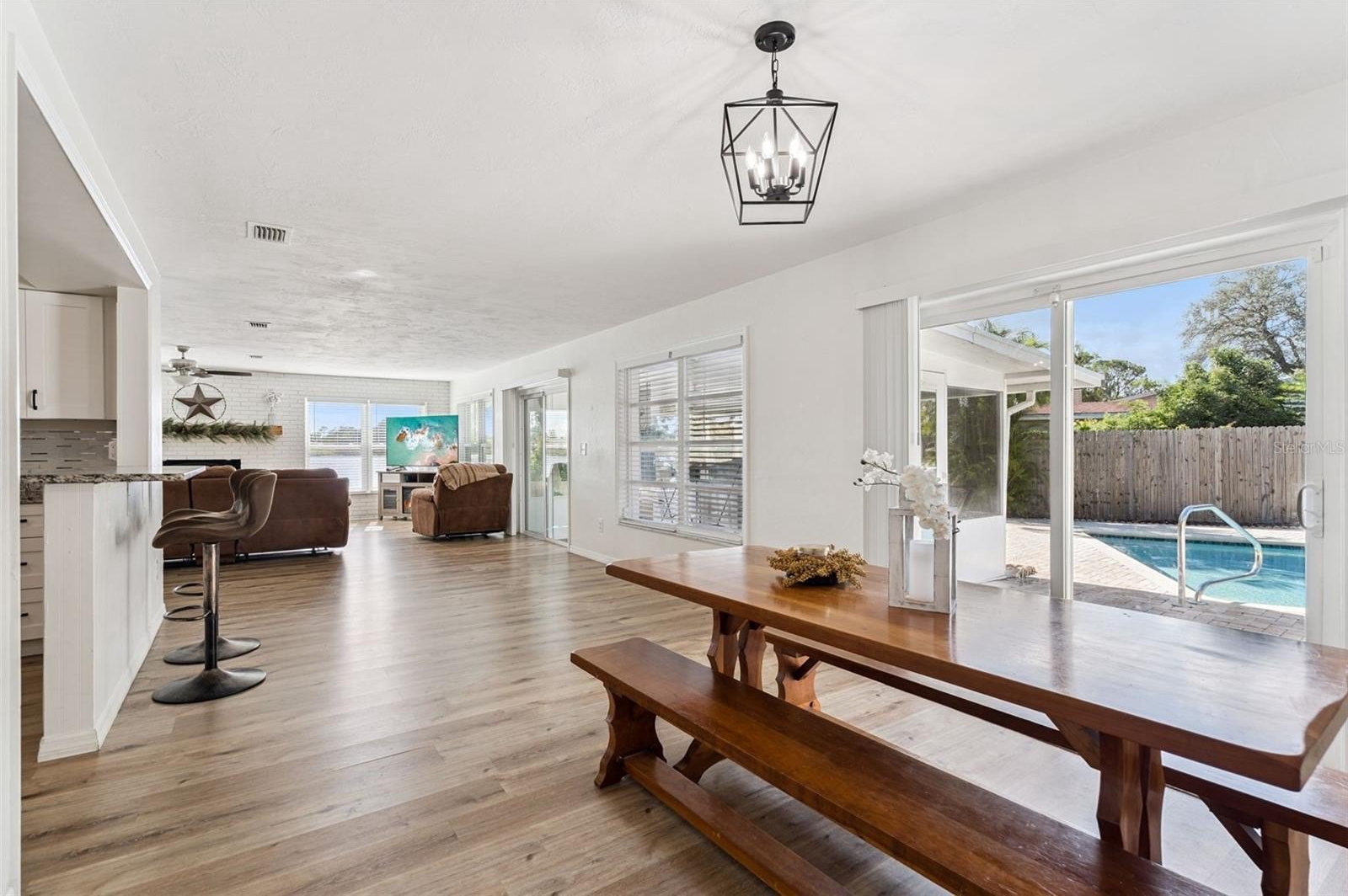Each evening you can watch a stunning sunset over Clear Lake from your living room in this beautifully renovated 4-bedroom, 3-bathroom pool home located on Eva Street. Situated on a large cul de sac with plenty of room to park all your Toys! As you enter into this fully renovated home you will be greeted with lots of natural light, stunning lake view and a wood burning fireplace. This home features luxury vinyl flooring throughout all the rooms. Adjacent to the living room you will find the dining room and updated kitchen with stainless steel appliances, granite countertops and modern cabinets. Sliding glass doors lead off the dining area that lead to the screened patio and the spacious fenced private pool area. The two primary bedrooms are on the main level and the additional 2 bedrooms are upstairs with a Jack and Jill bath. This home has been fully cosmetically renovated with new doors, lighting, remodeled baths, kitchen and replumbed, 11 windows replaced, new insulation and siding. Indoor large laundry room and a 2 car garage. Bring your fishing poles, canoes, paddle boards and more and enjoy this beautiful lake. No HOA! Call for your private showing today.