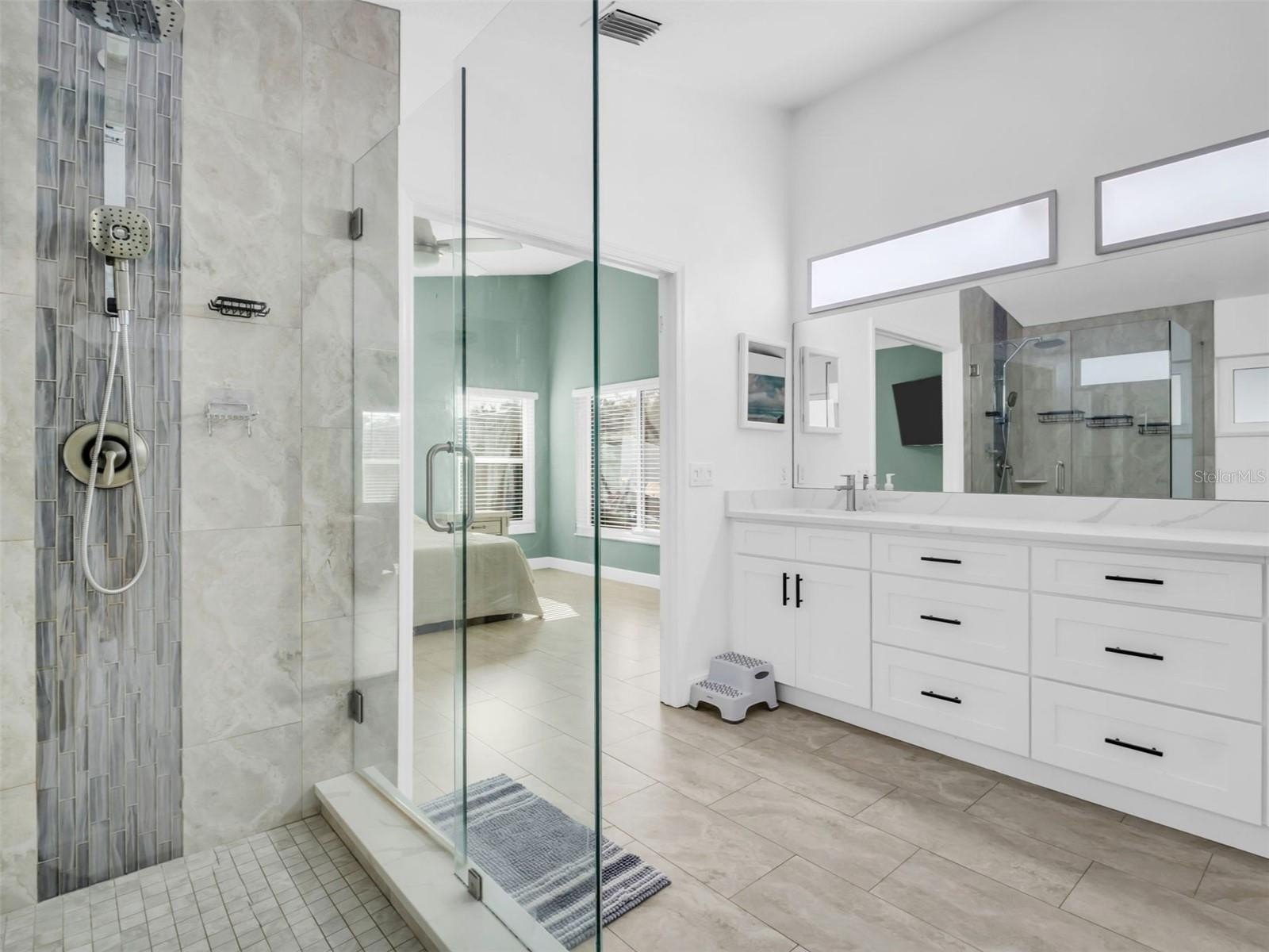 With soaring ceilings, an open-concept layout, and abundant natural light, the living areas feel bright and airy. The thoughtful split floor plan provides privacy for the primary suite, and custom closet built-ins add convenience and organization. Every detail has been carefully considered to create a home that is both elegant and livable.