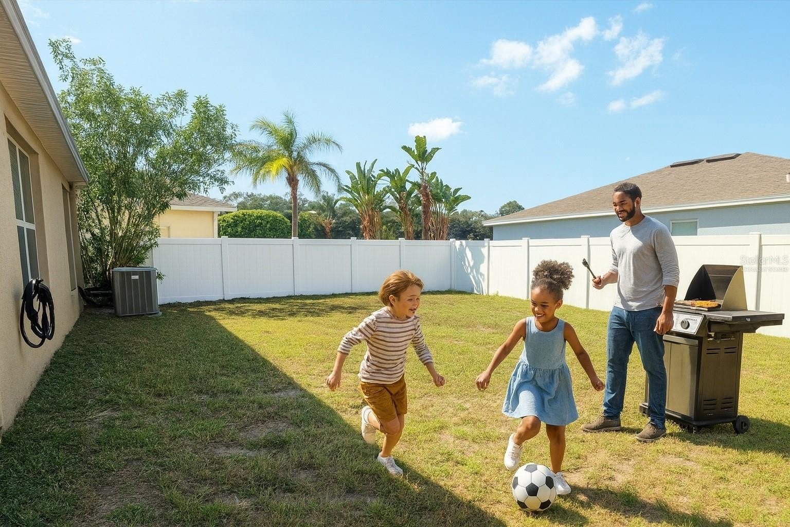 One or more photo(s) has been virtually staged. Here's your OPPORTUNITY to buy below market and add your own colors to MAKE THIS HOME YOURS! The sellers are motivated. Just dropped the price another $16,000, for a total price reduction of $36,000!! It's worth coming out to see this 3-bedroom, 2-bath, 2-car garage home being sold as-is, built in 2016, a Lennar Arlington model and IDEALLY LOCATED near schools, shopping, dining, and just a short drive to the beaches. Just a little bit of fixing up to make this home yours! Step inside to a bright and open GREAT ROOM with soaring VAULTED CEILINGS, ceramic tile, with a door leading to the COVERED LANAI and spacious backyard. The eat-in kitchen is a chef’s delight, featuring rich wood cabinetry with crown molding, granite countertops, stainless steel appliances, recessed lighting, a breakfast bar, and a walk-in pantry. The master suite offers a private retreat with wood laminate flooring, a generous walk-in closet, ceiling fan, and a spa-like bath complete with dual vanities, wood cabinetry, and a glass-enclosed tiled shower. Two additional bedrooms share a well-appointed full bath, PERFECT FOR FAMILY OR GUESTS. Additional highlights include an indoor laundry room with shelving, an in-wall pest control system, stacked stone exterior accents, and a FULLY FENCED CORNER LOT with side gate access—ideal for outdoor enjoyment. Residents also enjoy access to a community park, playground, and dog park. This is a GREAT STARTER HOME or if a couple wants an office and guest bedroom, it is ready for its new family. Don’t miss this opportunity—schedule your private showing today!