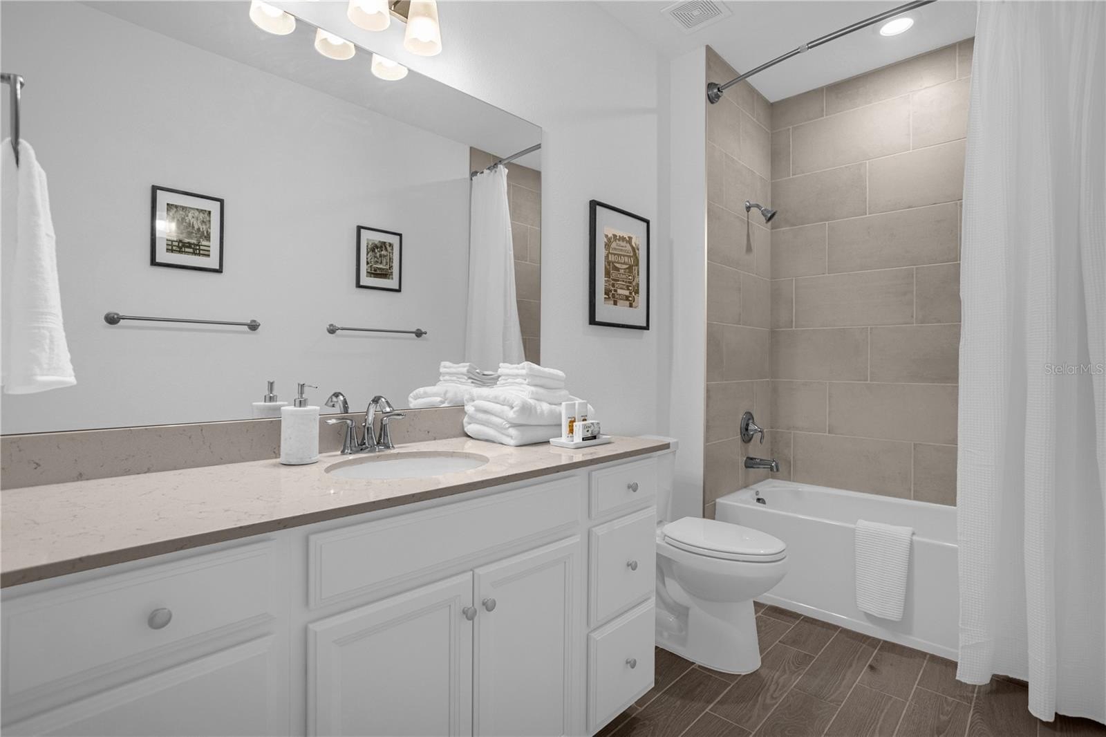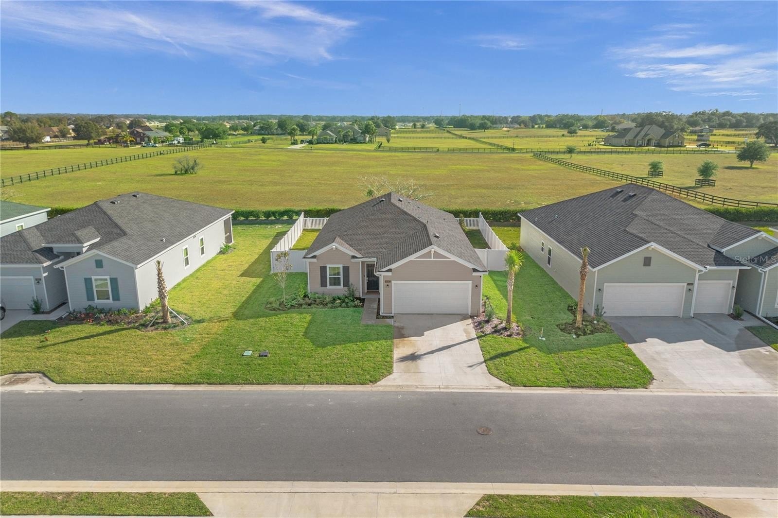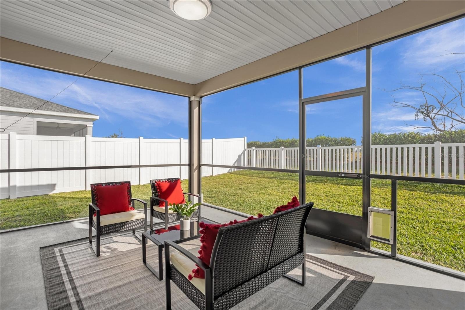 Welcome to this newer 2022 built 3 bedroom, 2 bath home with a 2 car garage in Freedom Crossing Preserve offering over 2,100 sq. ft. of living space. As you step inside, a bright den sits just off the entry, also perfect for a home office or playroom. The open concept layout creates an easy flow between the kitchen, dining and living spaces. At the heart of the home is the modern kitchen, featuring quartz countertops, stainless steel appliances, a breakfast bar and pantry. The spacious primary suite easily fits a king-sized bed and includes a walk-in closet and has an en suite bath which features double sinks and walk-in shower. Two spacious guest rooms share the 2nd bath. Step outside to the covered patio which looks out to private, fenced in backyard. The community offers great amenities including a pool and sidewalks and is conveniently located near restaurants, shopping, and I-75. Home can be purchased furnished (separately from the purchase price).
