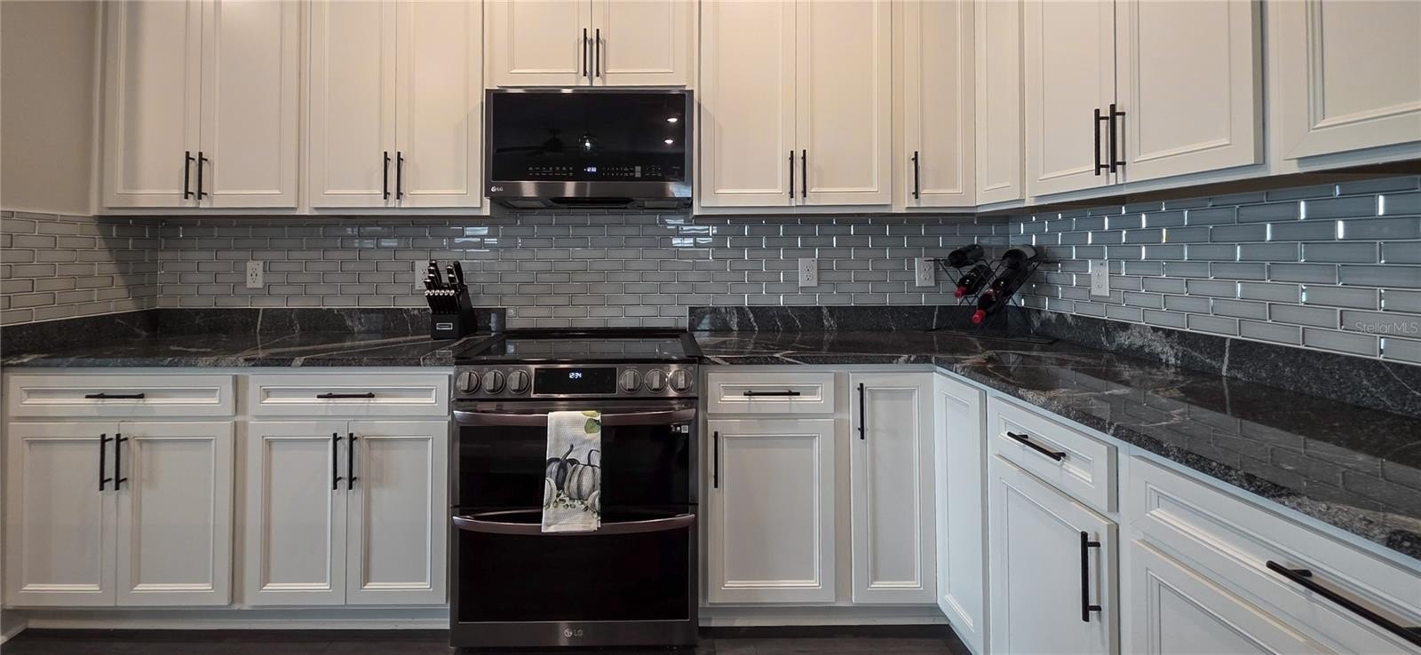 From the moment you step through the custom glass front door, you’ll be greeted by light-filled living spaces, neutral tones, and designer upgrades throughout. The open-concept kitchen showcases custom pantry shelving, a tile backsplash, and stone accents on the island—perfect for cooking and entertaining alike. The spacious great room flows effortlessly to the extended covered lanai, where weather-resistant rain shades and an electric heated saltwater pool create the ultimate outdoor retreat.