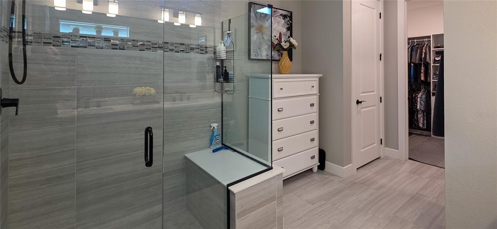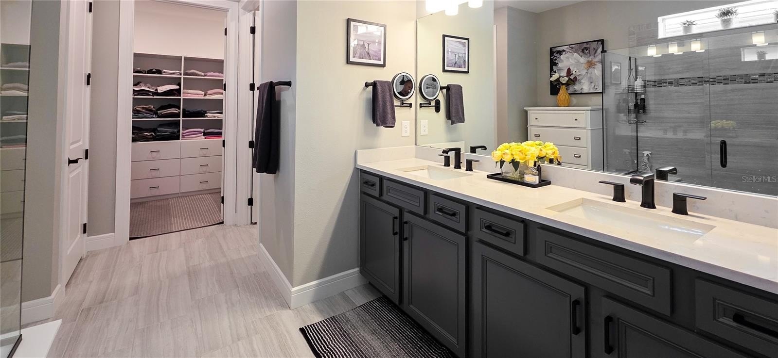Every detail in this home has been thoughtfully curated for style and function. Enjoy plantation shutters, electric roller shades on patio sliders, ceiling fans in every room, and custom built-ins in closets and the laundry room. The primary suite features a custom master closet system, so organization is effortless.