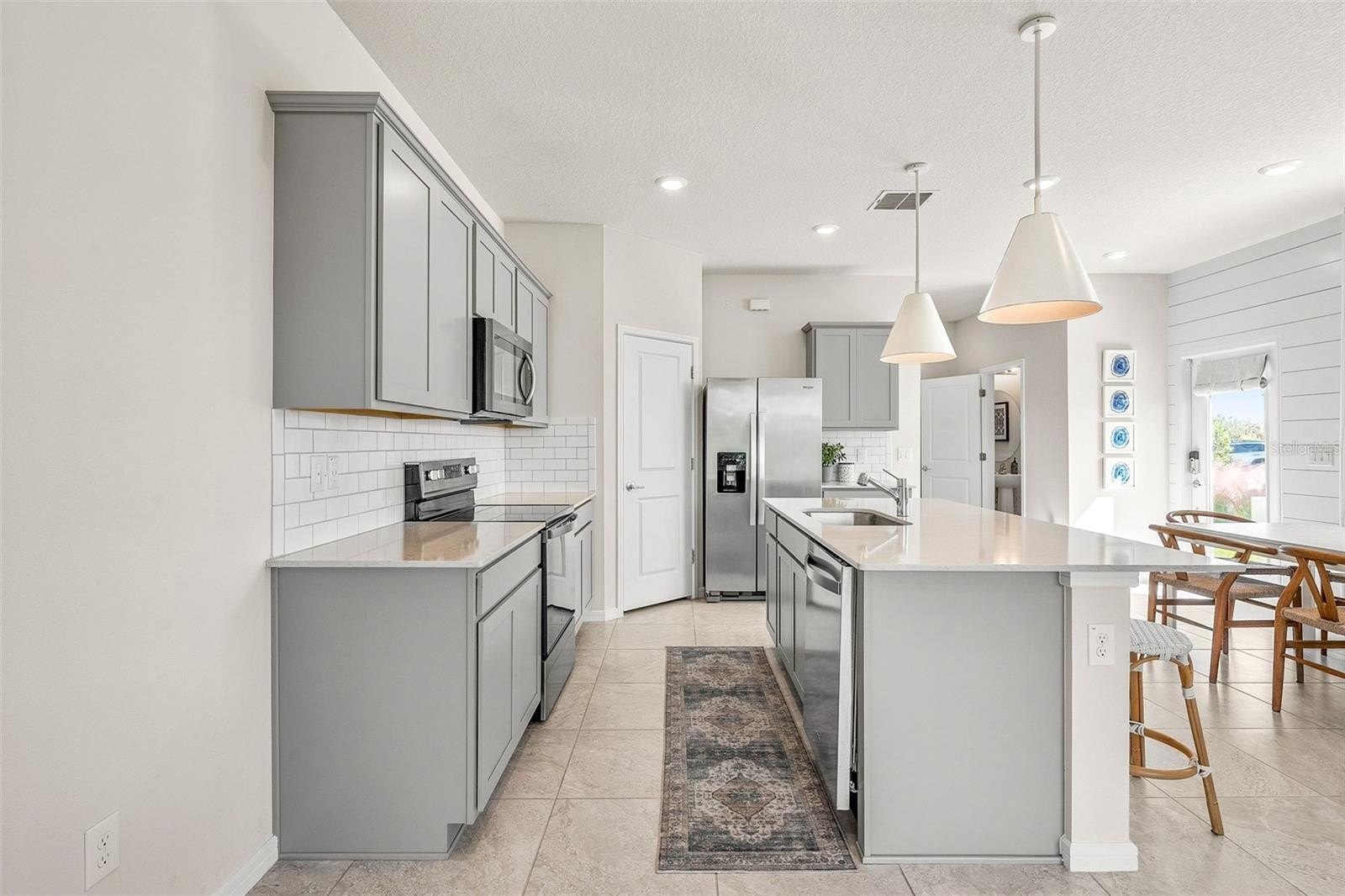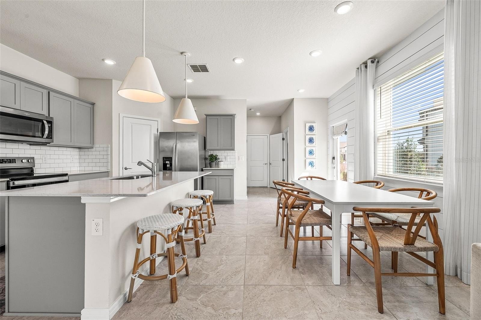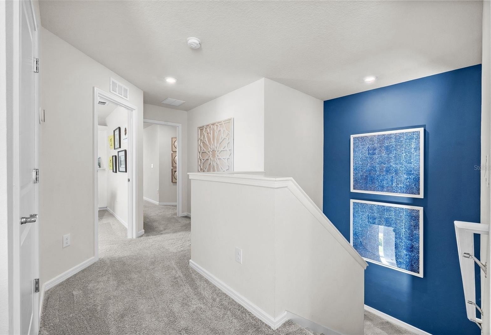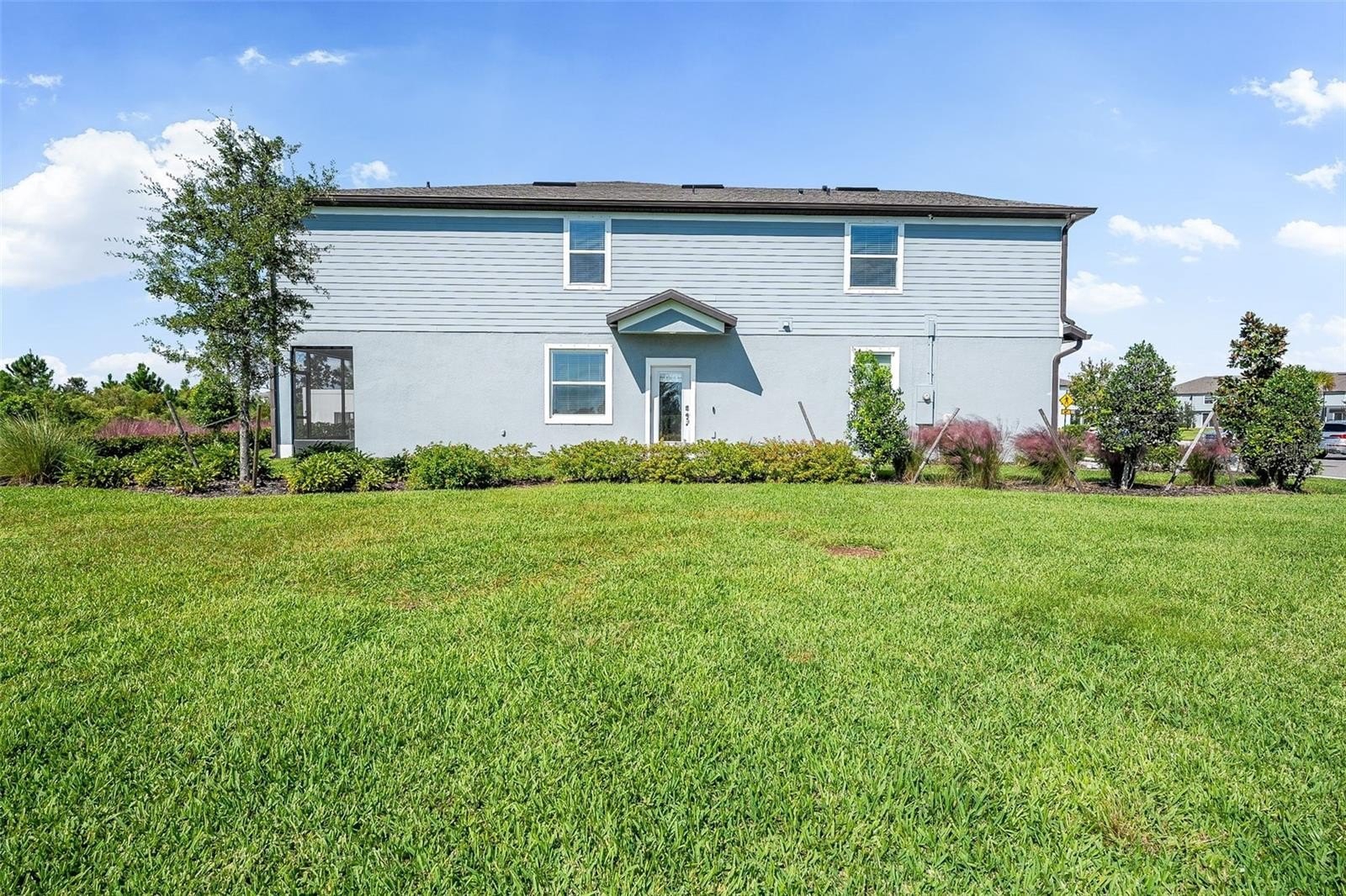 Welcome to this beautifully upgraded Ashe Floor Plan, former MODEL HOME! The biggest floor plan in the community with 3 bedrooms, 2.5 baths, upstairs loft, screened in back patio, a rare 2 car garage with epoxy flooring, oversized corner lot, and highly desired conservation wetland views. As a former model home, this property showcases designer upgrades throughout- including custom shiplap and accent walls, upgraded lighting, a glass insert front door, premium finishes, and a Smart Home technology package with a video doorbell. This home features stylish grey cabinets and quartz countertops in the kitchen and baths. Tile flooring in the main living areas and bathrooms, and stain-resistant carpet in the bedrooms and loft. The kitchen includes Whirlpool stainless steel appliances, a large single bowl sink, subway tile, and an island for bar seating. Off of the open kitchen is a breakfast area, half bath, and spacious living area overlooking the private backyard. Extra storage is located under the stairs. On the second floor you will find the spacious Owner's suite that has a large walk in closet and dual sinks in the Owner's bath. The second and third bedrooms, loft, guest bathroom, and laundry with Whirlpool washer and dryer are all located on the 2nd floor. The Chapel Crossing community has several amenities for you to enjoy including a Clubhouse, Pool with a lazy river, Gym, Dog Park, Pickle Ball Courts, and Playground. Perfectly situated off SR-54 and minutes from I-75, lots of shopping and dining close by!!