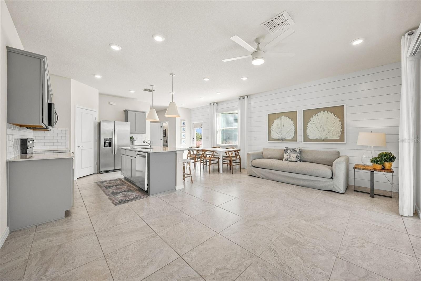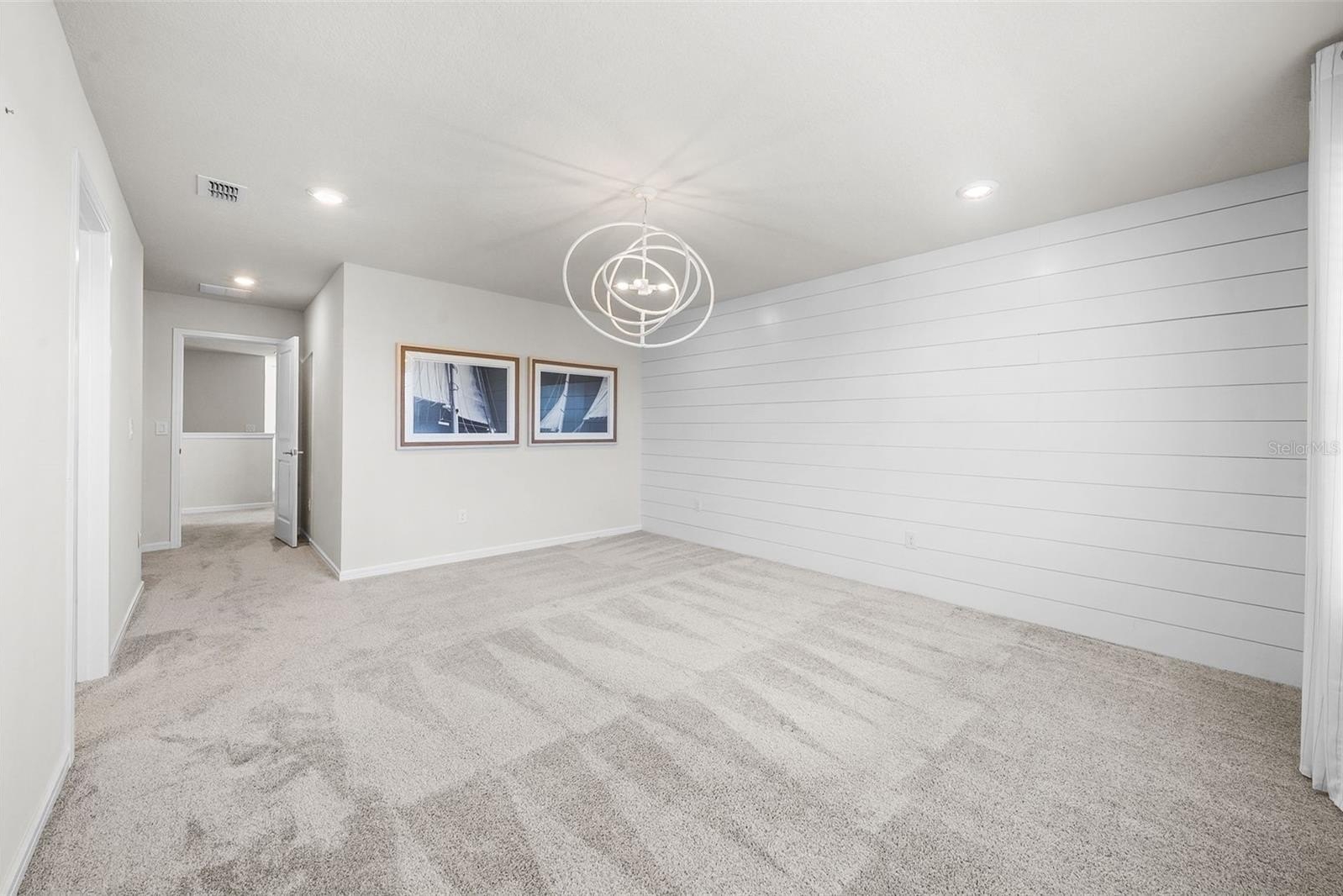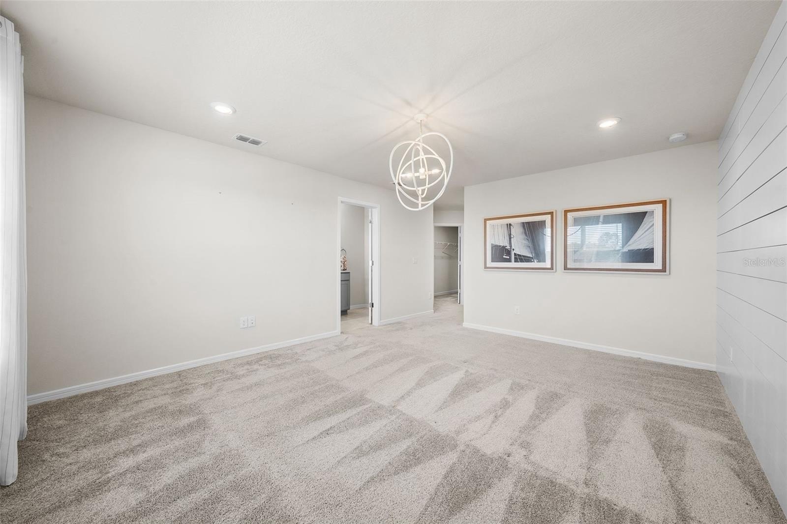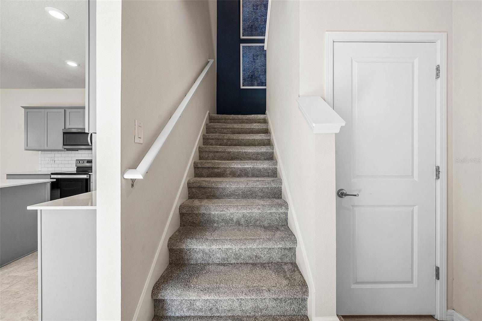 Welcome to this beautifully upgraded Ashe Floor Plan, former MODEL HOME! The biggest floor plan in the community with 3 bedrooms, 2.5 baths, upstairs loft, screened in back patio, a rare 2 car garage with epoxy flooring, oversized corner lot, and highly desired conservation wetland views. As a former model home, this property showcases designer upgrades throughout- including custom shiplap and accent walls, upgraded lighting, a glass insert front door, premium finishes, and a Smart Home technology package with a video doorbell. This home features stylish grey cabinets and quartz countertops in the kitchen and baths. Tile flooring in the main living areas and bathrooms, and stain-resistant carpet in the bedrooms and loft. The kitchen includes Whirlpool stainless steel appliances, a large single bowl sink, subway tile, and an island for bar seating. Off of the open kitchen is a breakfast area, half bath, and spacious living area overlooking the private backyard. Extra storage is located under the stairs. On the second floor you will find the spacious Owner's suite that has a large walk in closet and dual sinks in the Owner's bath. The second and third bedrooms, loft, guest bathroom, and laundry with Whirlpool washer and dryer are all located on the 2nd floor. The Chapel Crossing community has several amenities for you to enjoy including a Clubhouse, Pool with a lazy river, Gym, Dog Park, Pickle Ball Courts, and Playground. Perfectly situated off SR-54 and minutes from I-75, lots of shopping and dining close by!!