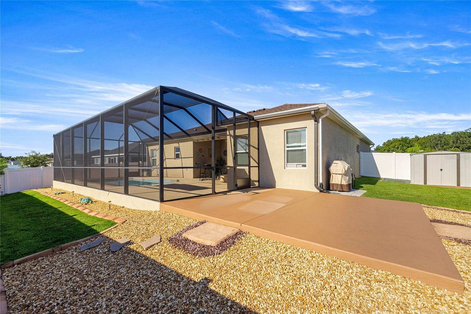 AMAZING & IMMACULATE" move-in ready, "POOL HOME" located in the highly sought-after "GATED COMMUNITY" of Summercrest. Offering 4 bedrooms, 3 bathrooms, and 2,370 square feet of living space, this nearly new 2020 build sits on a spacious corner lot fully fenced with white vinyl fencing for privacy. The pool, just 2 years old, creates your own private oasis with a screened enclosure, cemented patio area for barbecues and gatherings, and even a dedicated dog run with grass. Inside, you are welcomed into a bright open great room that flows seamlessly into the family room, with sliding doors overlooking the sparkling pool. The open-concept kitchen features an abundance of cabinets, an eat-in area, and a view of the outdoor space, perfect for entertaining. The three-way split floor plan provides ideal privacy, with the owner’s suite showcasing tray ceilings, a spa-like bath with double vanity, shower and soaking tub combo, and a huge walk-in closet. A guest suite with a private bath conveniently opens to the pool area, while two additional spacious bedrooms share a third full bathroom. Beautiful plantation shutters are found throughout the home, along with a 3-car garage for extra storage and parking. Don’t miss the chance to own this exceptional property—schedule your private showing today and make this stunning home your own!