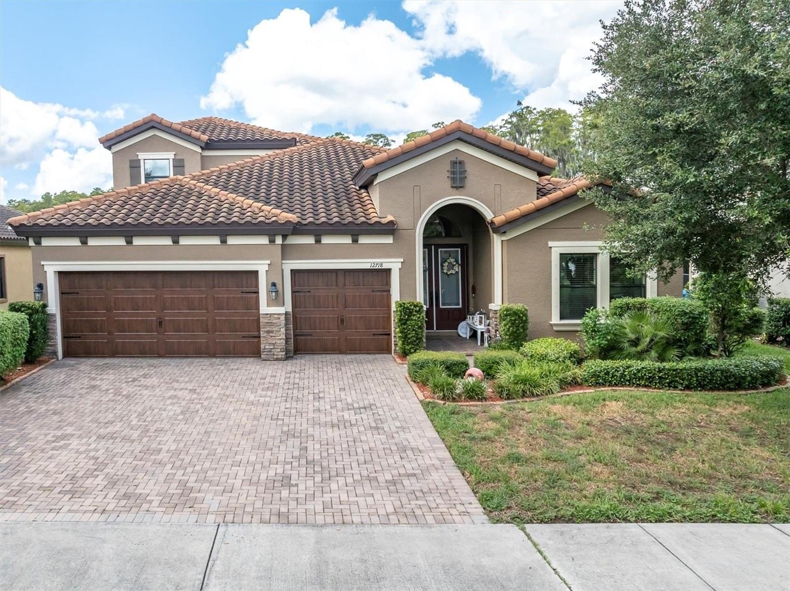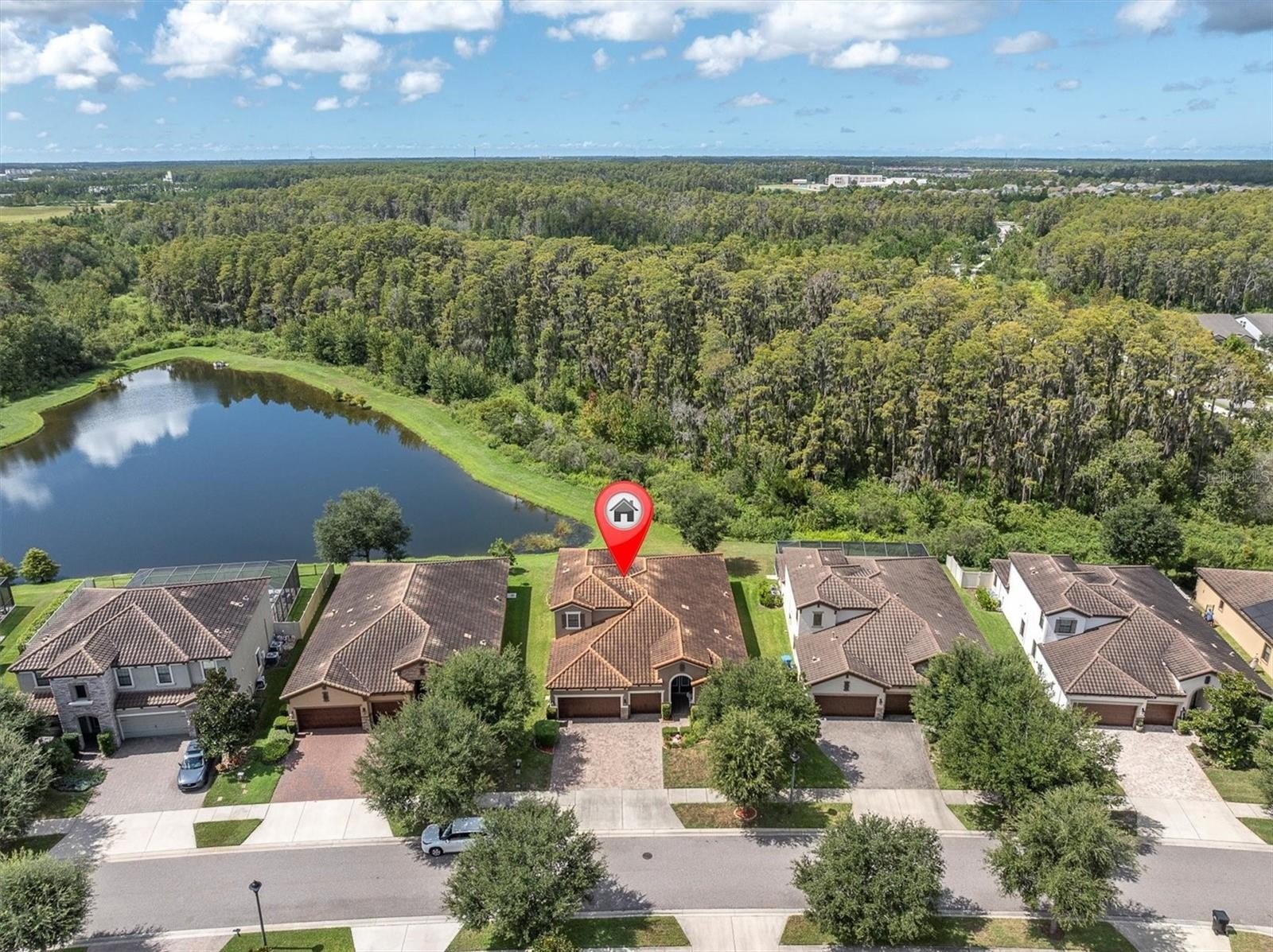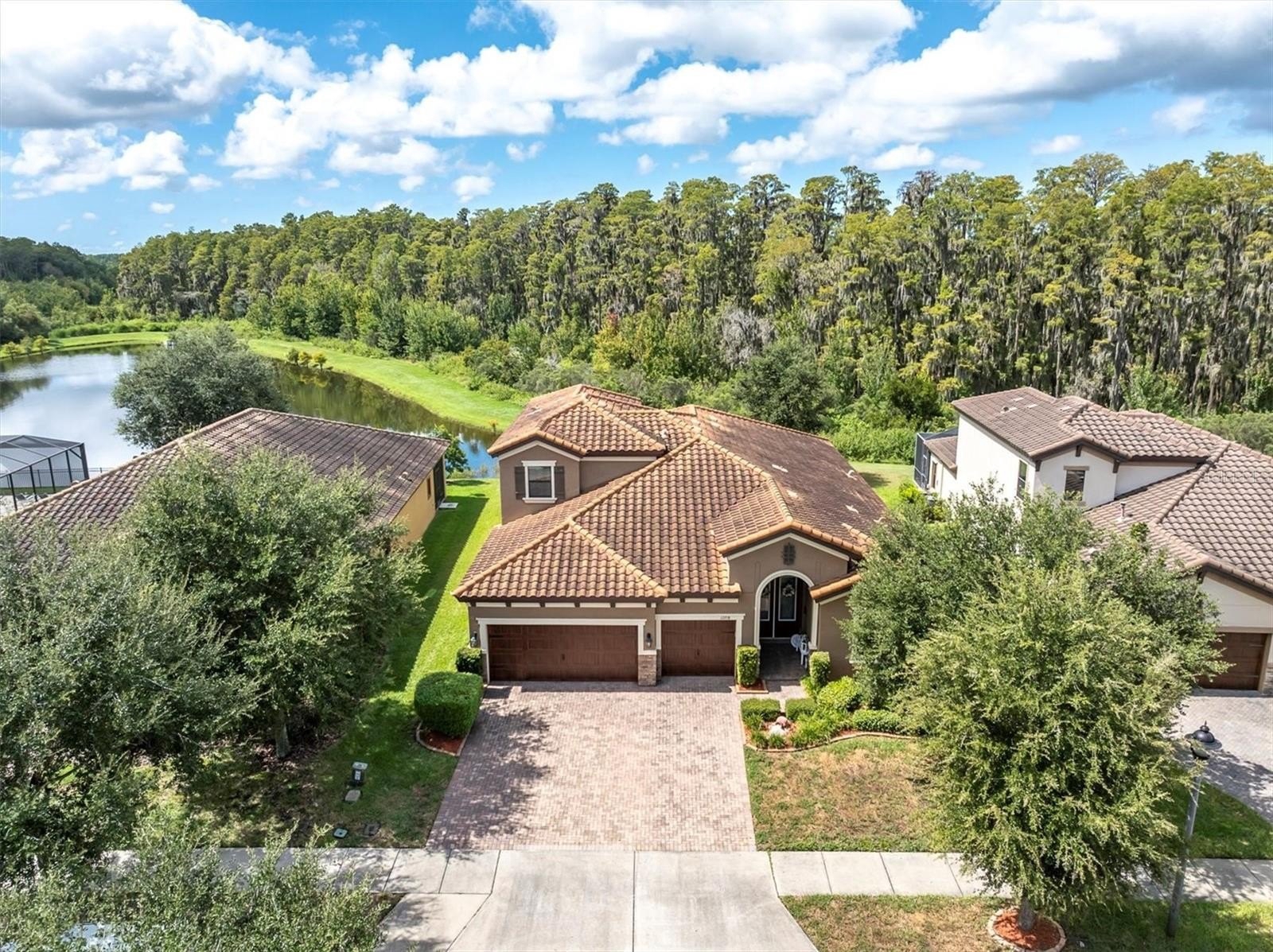 Step into luxury with this SHOWCASE HOME ON CONSERVATION in the highly sought-after Starkey Ranch! Built in 2018 by Homes by WestBay, this immaculate Bayshore II model sits on a private 65-foot conservation lot in Homestead Park and offers 4 bedrooms, 4 bathrooms, a 3-car garage, dedicated office, spacious bonus room, and a stunning stainless steel outdoor kitchen, perfect for alfresco entertaining. The Mediterranean-inspired exterior boasts a tile roof, stone accents, and paver driveway, while the interior impresses with soaring ceilings, arched architectural details, upgraded lighting, and rich wood-look tile flooring. The open-concept layout features a grand room with 16-foot disappearing sliders that showcase serene west-facing views, a generous dining area, and a gourmet kitchen with quartz countertops, custom cabinetry, GE Profile stainless steel appliances, and premium Moen and Delta faucets. The first-floor owner’s retreat offers tray ceilings, peaceful conservation views, and a spa-like ensuite with dual vanities, quartz counters, a sunken tub, frameless walk-in shower, and custom closet. Upstairs, the bonus room with full bath provides flexibility for a fifth bedroom or media space. Enjoy nightly sunsets from the large screened lanai overlooking the tranquil pond and lush greenery. Smart home upgrades include a water softener system, tankless water heater, and epoxy garage flooring. Starkey Ranch offers top-tier amenities: a K–8 magnet school, library, theater, three pools, playgrounds, dog parks, 20 miles of trails, a community garden, Cunningham Lake, and vibrant year-round events, all just minutes from Publix, dining, beaches, and an easy commute to Tampa. This home is the perfect blend of elegance, comfort, and convenience, schedule your private tour today!