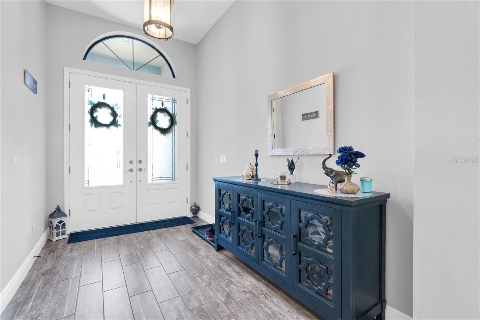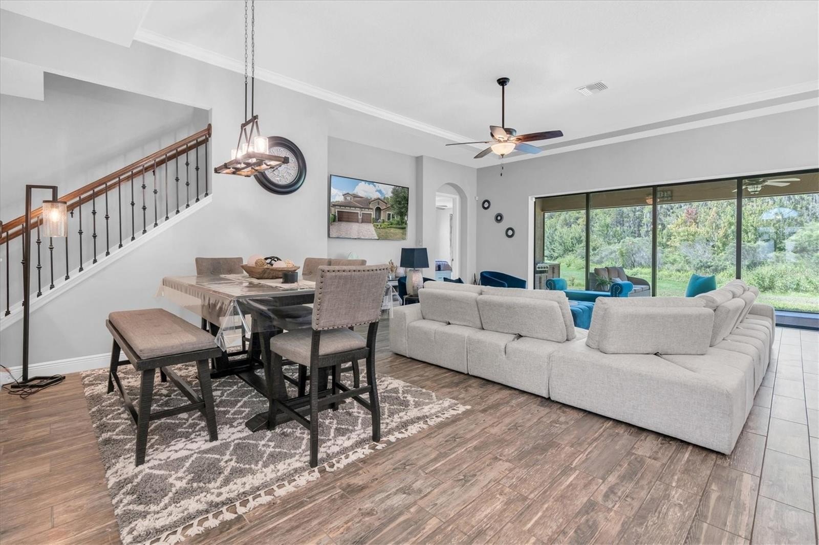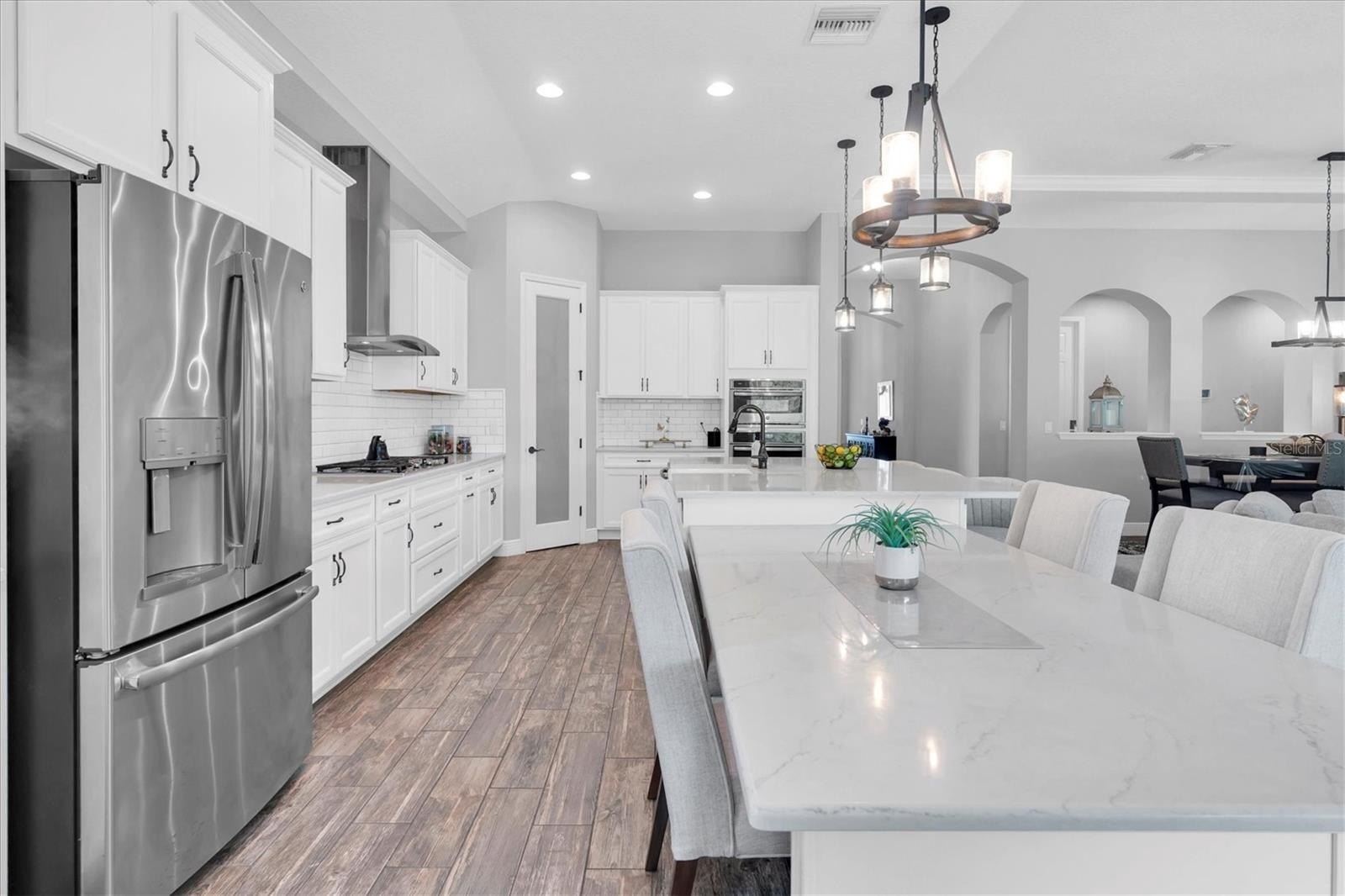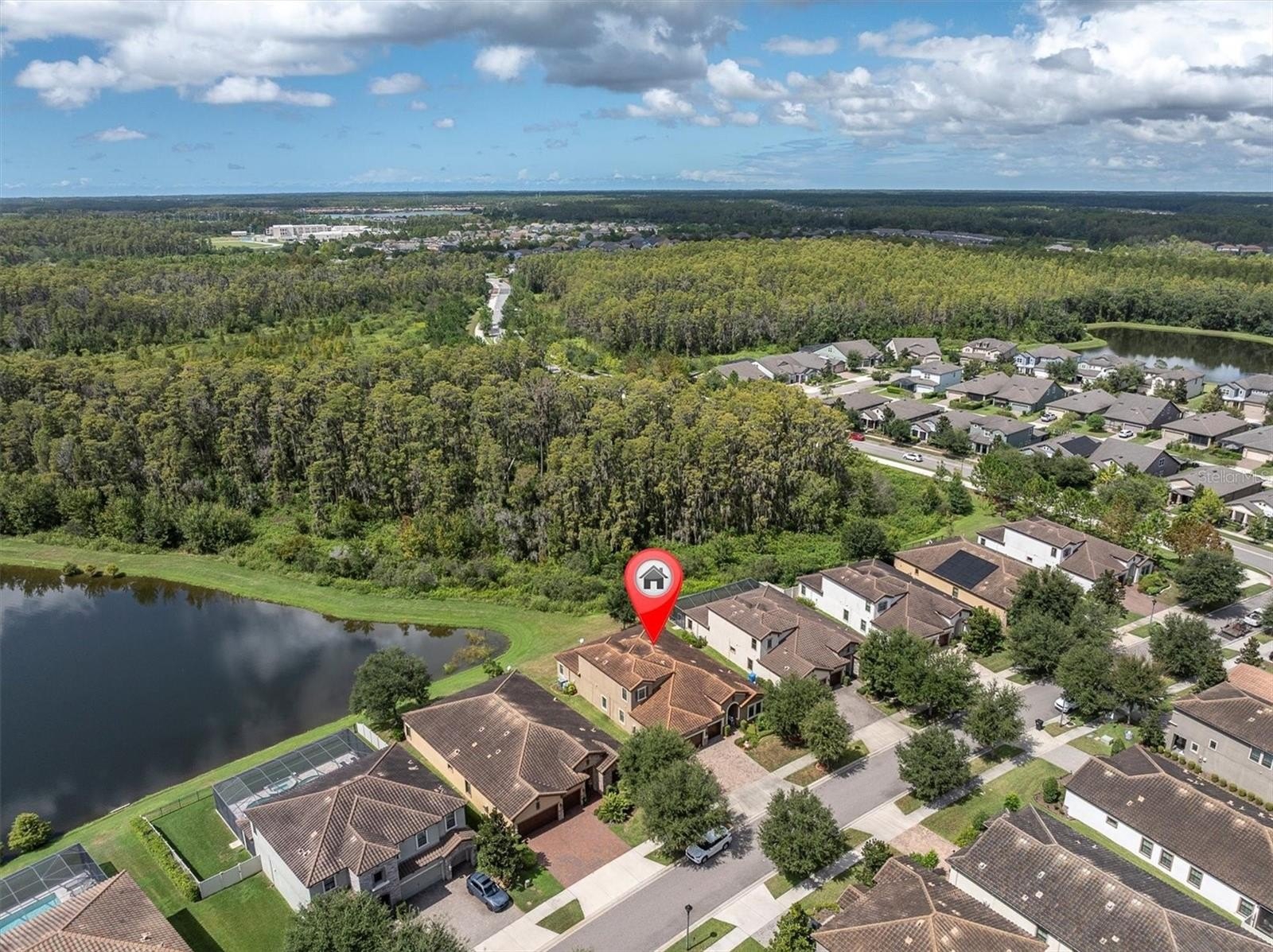 Step into luxury with this SHOWCASE HOME ON CONSERVATION in the highly sought-after Starkey Ranch! Built in 2018 by Homes by WestBay, this immaculate Bayshore II model sits on a private 65-foot conservation lot in Homestead Park and offers 4 bedrooms, 4 bathrooms, a 3-car garage, dedicated office, spacious bonus room, and a stunning stainless steel outdoor kitchen, perfect for alfresco entertaining. The Mediterranean-inspired exterior boasts a tile roof, stone accents, and paver driveway, while the interior impresses with soaring ceilings, arched architectural details, upgraded lighting, and rich wood-look tile flooring. The open-concept layout features a grand room with 16-foot disappearing sliders that showcase serene west-facing views, a generous dining area, and a gourmet kitchen with quartz countertops, custom cabinetry, GE Profile stainless steel appliances, and premium Moen and Delta faucets. The first-floor owner’s retreat offers tray ceilings, peaceful conservation views, and a spa-like ensuite with dual vanities, quartz counters, a sunken tub, frameless walk-in shower, and custom closet. Upstairs, the bonus room with full bath provides flexibility for a fifth bedroom or media space. Enjoy nightly sunsets from the large screened lanai overlooking the tranquil pond and lush greenery. Smart home upgrades include a water softener system, tankless water heater, and epoxy garage flooring. Starkey Ranch offers top-tier amenities: a K–8 magnet school, library, theater, three pools, playgrounds, dog parks, 20 miles of trails, a community garden, Cunningham Lake, and vibrant year-round events, all just minutes from Publix, dining, beaches, and an easy commute to Tampa. This home is the perfect blend of elegance, comfort, and convenience, schedule your private tour today!