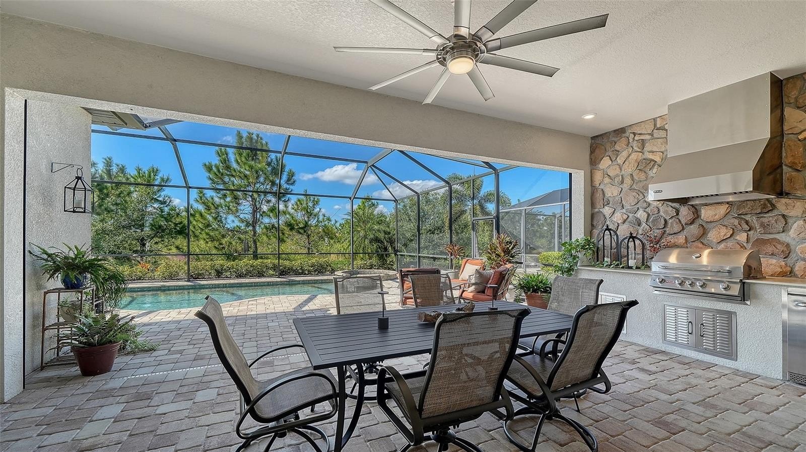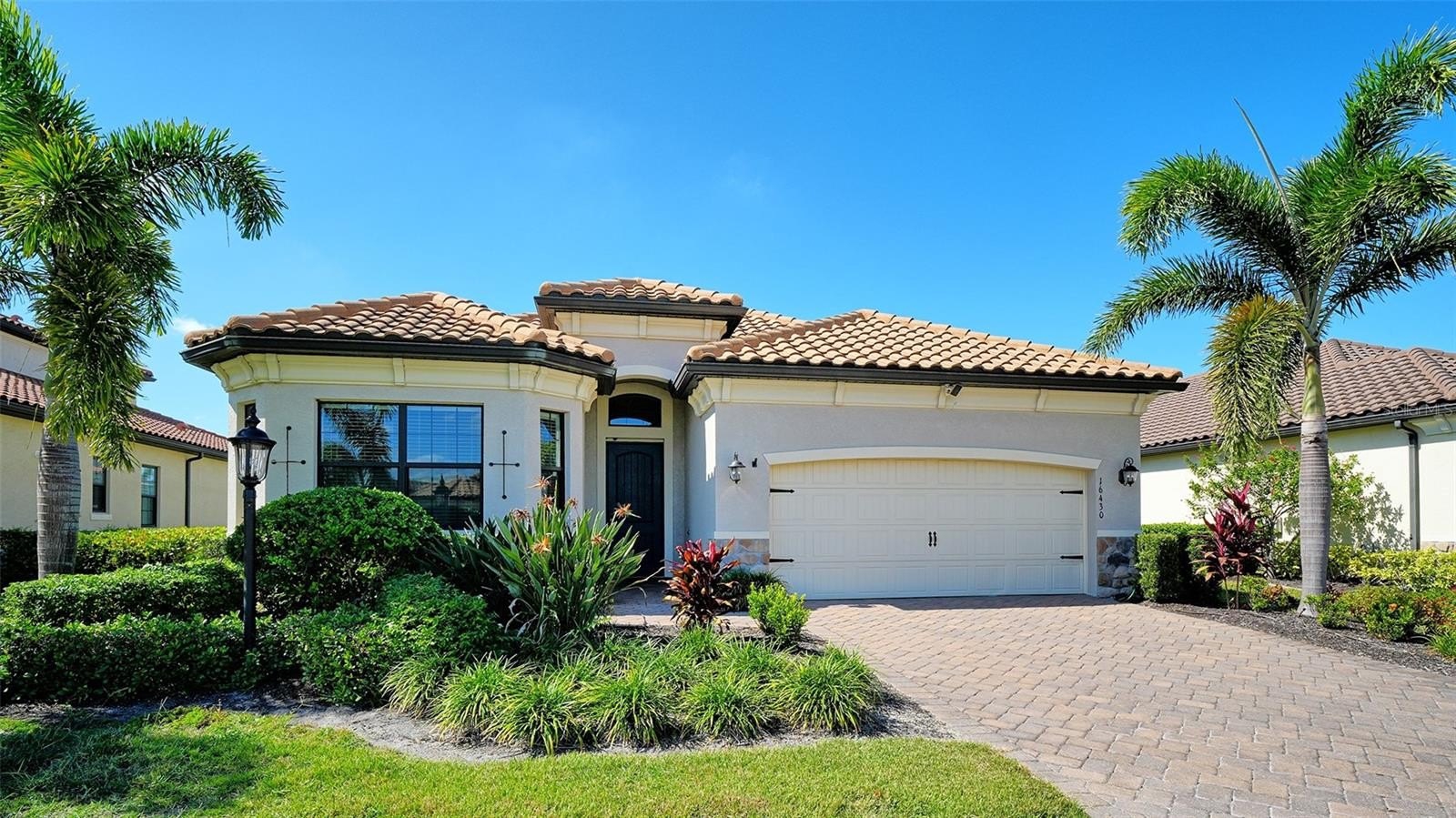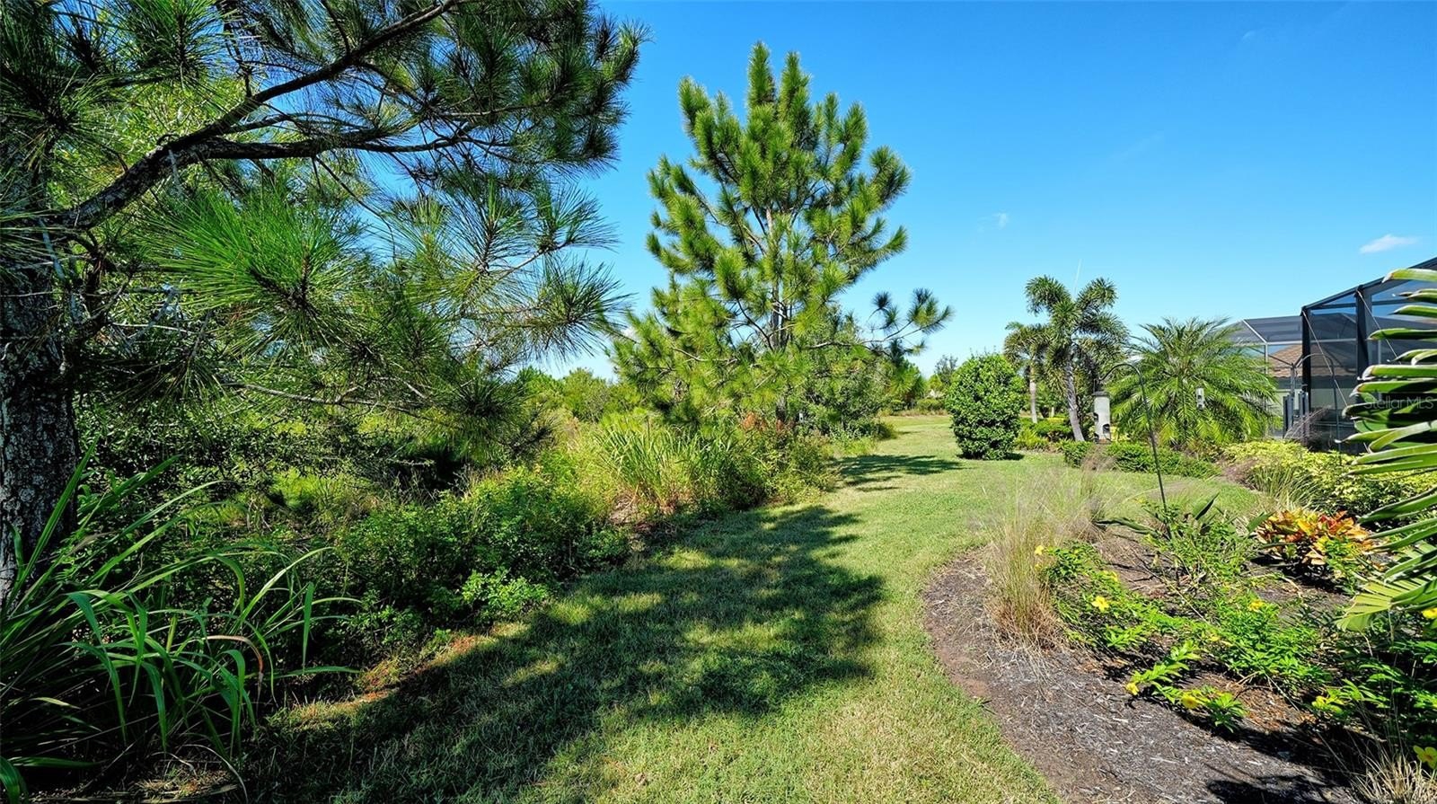 Peace and tranquility abounds. From when you park in the Paver driveway and walk on the Paver sidewalk entry way to the front door of this home and open it - you see and feel the private lushness of the conservation easement in the rear of this home and the magnificence of the pool/deck area overlooking it. The foyer entry of this newer 2019 built home opens into a great room comprised of the 13 x 14 dining area, the 18 x 22 living area, and the 11 x 21 Kitchen all opening to the 12 x 24 Paver, covered and screened lanai and the 28 x 40 screened pool deck overlooking this beautiful greenbelt area of trees and vegetation. The covered lanai area has a motorized sunshade to protect the rear of the when down and when up, one can enjoy bright and full sunsets from your lanai and living area. After dark the lanai area becomes a comfortable oasis for dining, drinking and relaxing by the 13 x 26 swimming pool and spa. The primary bedroom of this home has the same expansive views as does the living area. The primary bathroom has dual sinks, a separate bathtub and separate shower stall. On the front of the home is the 12 x14 second bedroom guest suite, with its bathroom with a tub/shower combination. Between the primary bedroom and the guest bedroom, directly off the great room is the 12 x 14 third bedroom, currently being used as an office. All he living area has tile flooring and all the bedrooms have carpet. This home is ready for immediate occupancy for the right buyer. This Hillside enclave in Country Club East of Lakewood Ranch has amenities such as a newly renovated fitness center at the clubhouse named "The Retreat" with the community swimming pool and volleyball court. This neighborhood is so close to UTC Mall, shopping, Publix, CVS, Walgreens, the new Fleming's Steakhouse and Ruth Chris Steakhouse and a short drive to Waterside, the Polo Club and to i-75. Only twenty minutes from Downtown Sarasota and only thirty minutes to St. Armands Circle and Lido Beach.