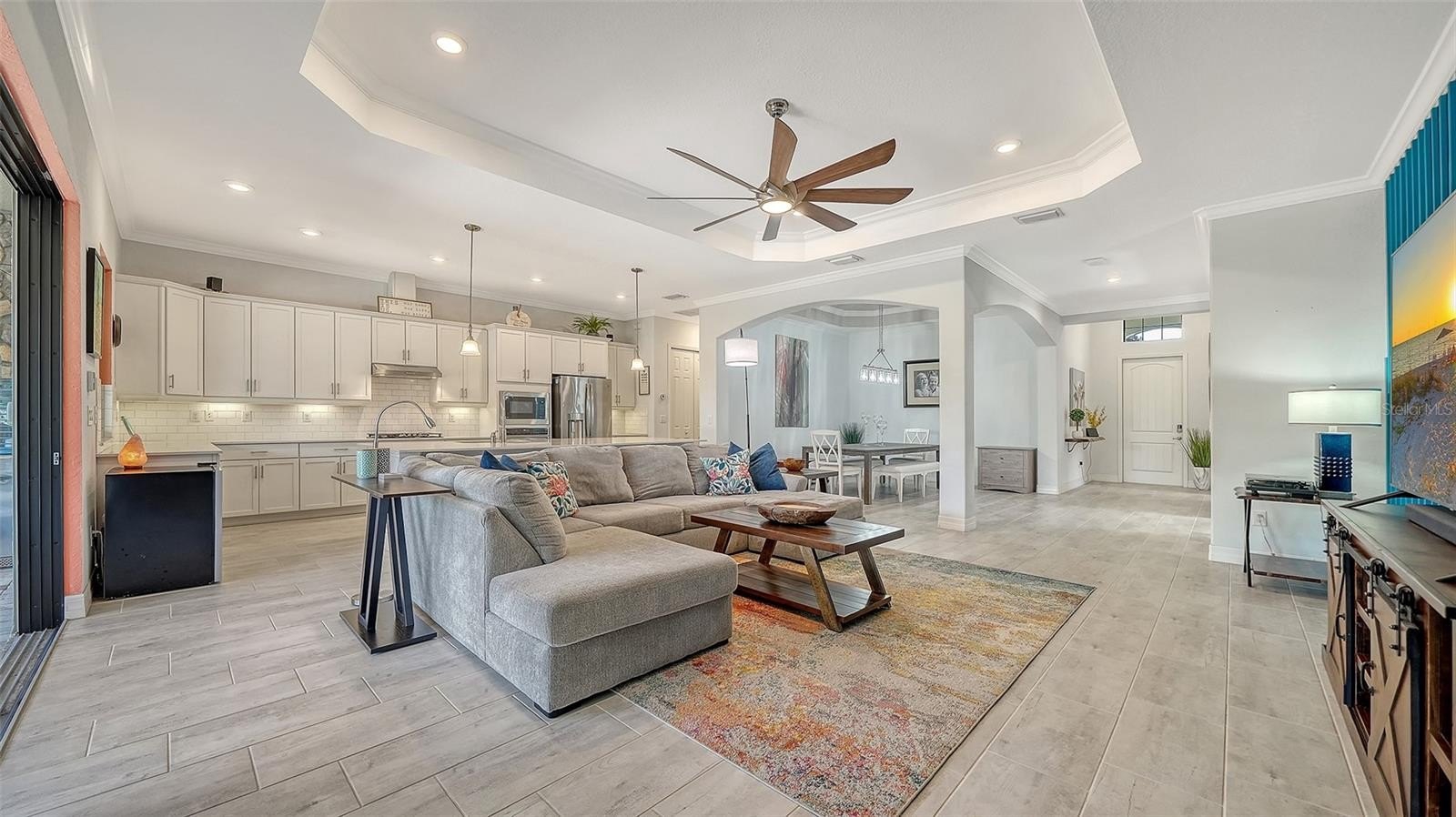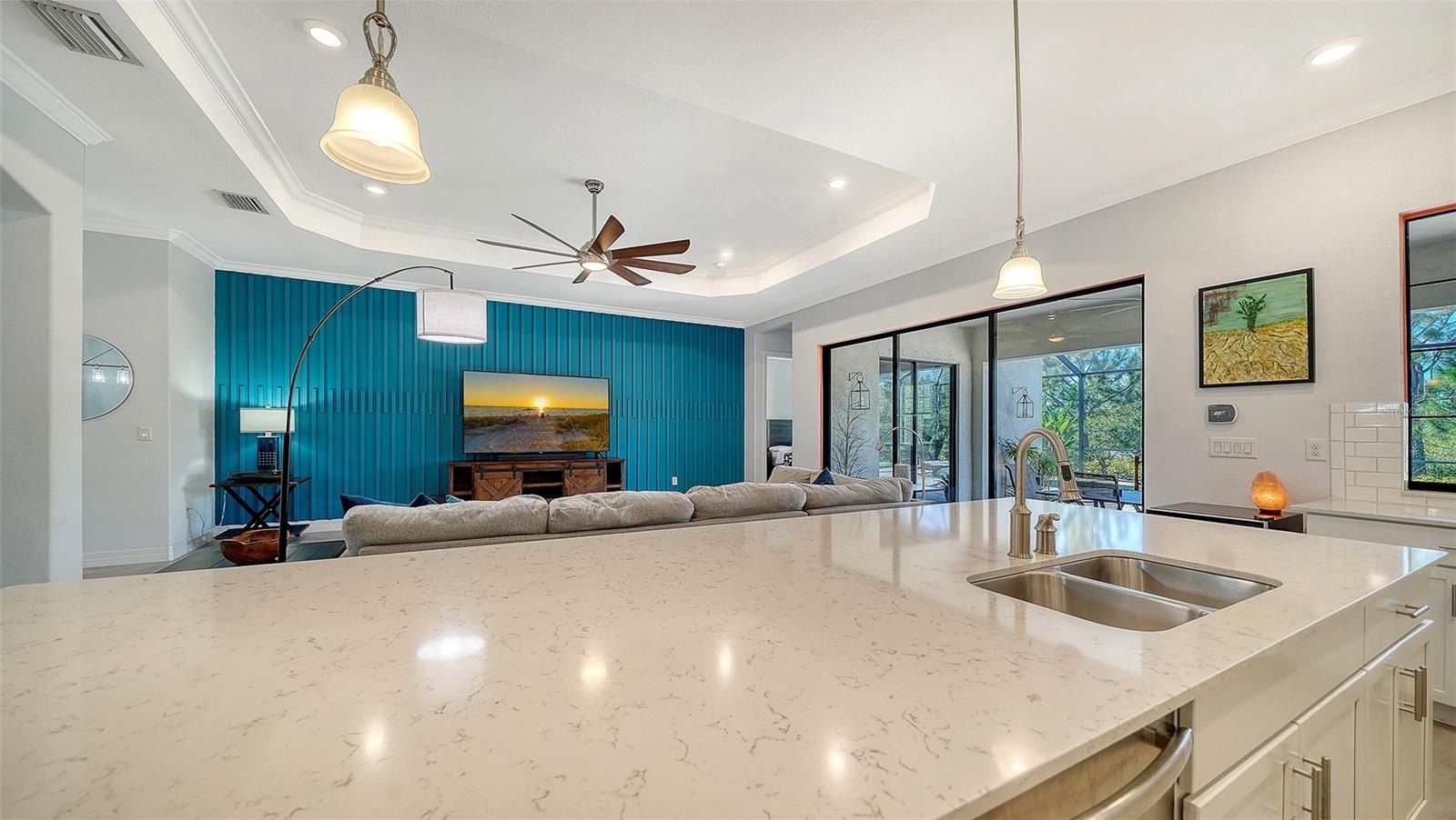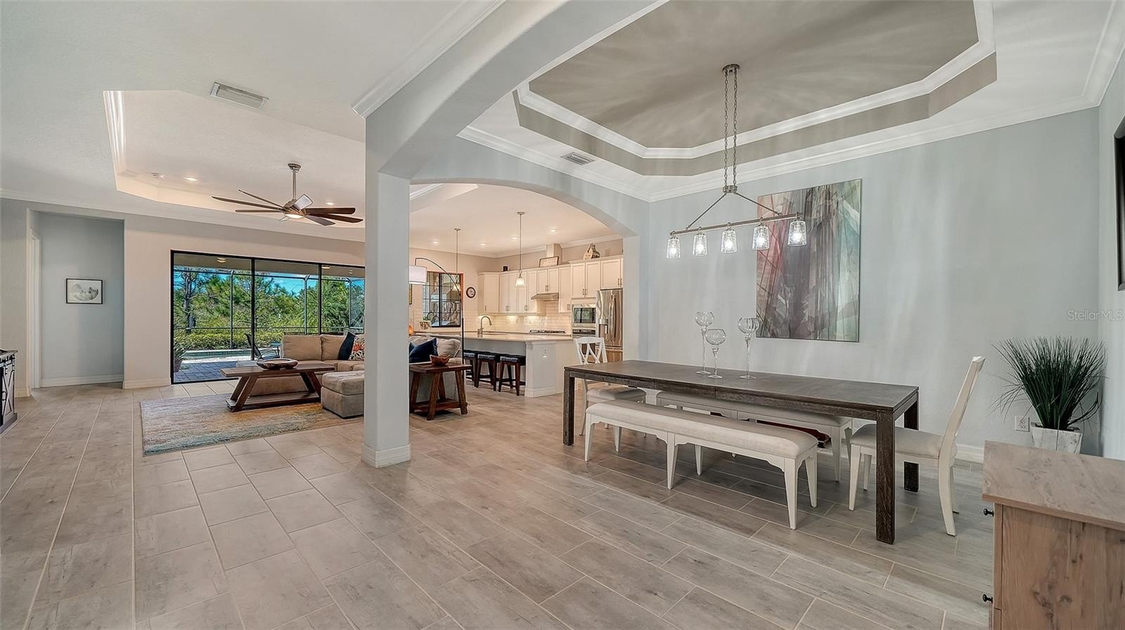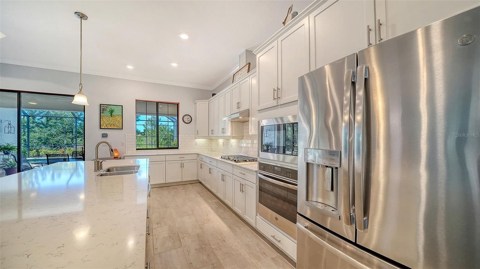 Peace and tranquility abounds. From when you park in the Paver driveway and walk on the Paver sidewalk entry way to the front door of this home and open it - you see and feel the private lushness of the conservation easement in the rear of this home and the magnificence of the pool/deck area overlooking it. The foyer entry of this newer 2019 built home opens into a great room comprised of the 13 x 14 dining area, the 18 x 22 living area, and the 11 x 21 Kitchen all opening to the 12 x 24 Paver, covered and screened lanai and the 28 x 40 screened pool deck overlooking this beautiful greenbelt area of trees and vegetation. The covered lanai area has a motorized sunshade to protect the rear of the when down and when up, one can enjoy bright and full sunsets from your lanai and living area. After dark the lanai area becomes a comfortable oasis for dining, drinking and relaxing by the 13 x 26 swimming pool and spa. The primary bedroom of this home has the same expansive views as does the living area. The primary bathroom has dual sinks, a separate bathtub and separate shower stall. On the front of the home is the 12 x14 second bedroom guest suite, with its bathroom with a tub/shower combination. Between the primary bedroom and the guest bedroom, directly off the great room is the 12 x 14 third bedroom, currently being used as an office. All he living area has tile flooring and all the bedrooms have carpet. This home is ready for immediate occupancy for the right buyer. This Hillside enclave in Country Club East of Lakewood Ranch has amenities such as a newly renovated fitness center at the clubhouse named "The Retreat" with the community swimming pool and volleyball court. This neighborhood is so close to UTC Mall, shopping, Publix, CVS, Walgreens, the new Fleming's Steakhouse and Ruth Chris Steakhouse and a short drive to Waterside, the Polo Club and to i-75. Only twenty minutes from Downtown Sarasota and only thirty minutes to St. Armands Circle and Lido Beach.