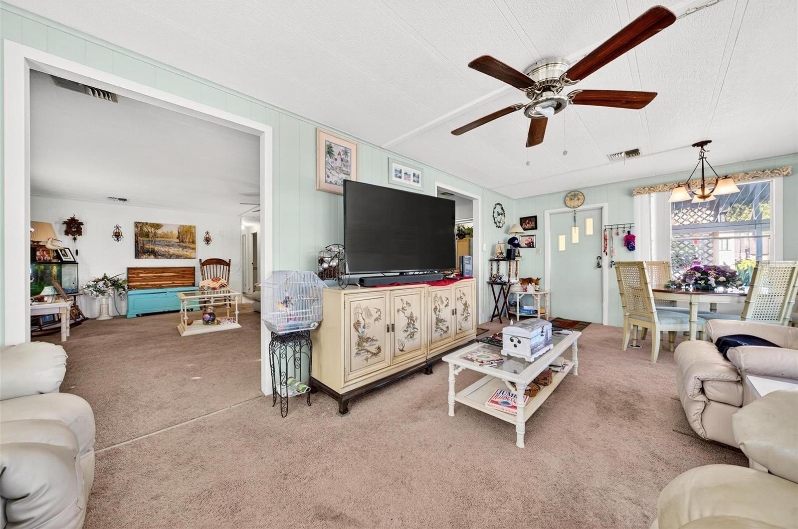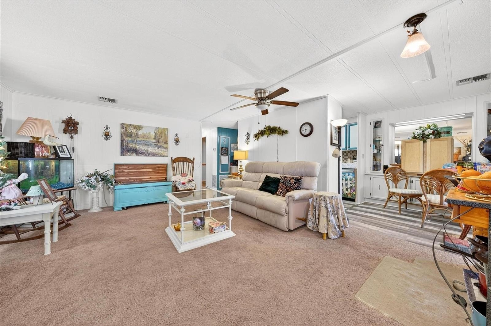 Welcome to Brittany Estates—a sought-after 55+ co-op community on Lake Griffin where you own your share and enjoy resort-style living without the high fees! This lovingly maintained 2-bedroom, 2-bath 1975 double-wide has been thoughtfully updated for peace of mind and comfort. Major improvements include a new carport (2025), new water pipes (2024–2025), vapor barrier sealed (2024), roof pressure washed and sealed (2024), and new lower kitchen cabinets (2022). The subflooring was replaced two years ago, and the A/C, replaced in 2015, is serviced twice a year for reliable performance. A 4-point inspection completed in February 2025 provides added confidence for new owners. Enjoy morning coffee or evening breezes in the enclosed lanai, a perfect year-round retreat. As a shareholder in this vibrant, pet-friendly community, you’ll appreciate an active lifestyle and fantastic amenities for just $160 per month—covering water, sewer, lawn care, twice-weekly trash pickup, and storage. Meet friends in the clubhouse for games or social events, take a dip in the heated and screened pool overlooking Lake Griffin, or spend the day fishing or boating from the private marina with 49 slips, boat ramp, and fishing pier. The community is also golf-cart friendly, making it easy to explore or visit neighbors. Ideally located just 3 miles from shopping, dining, and medical facilities, this home offers the perfect blend of comfort, convenience, and community living. Don’t miss your chance to enjoy affordable lakeside living at its finest—schedule your showing today! All information deemed reliable but must be verified by buyers. All room measurements are approx. and must be also verified by buyers. There is a $200.00 application fee to Brittany Estates for the approval process.
