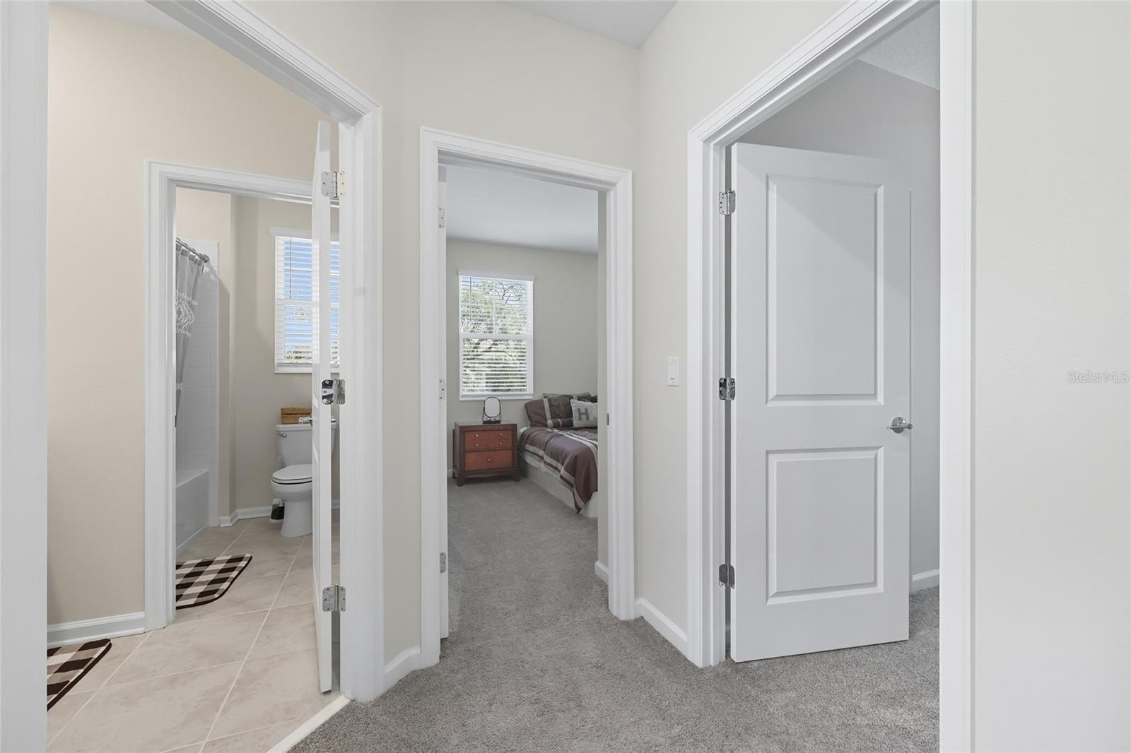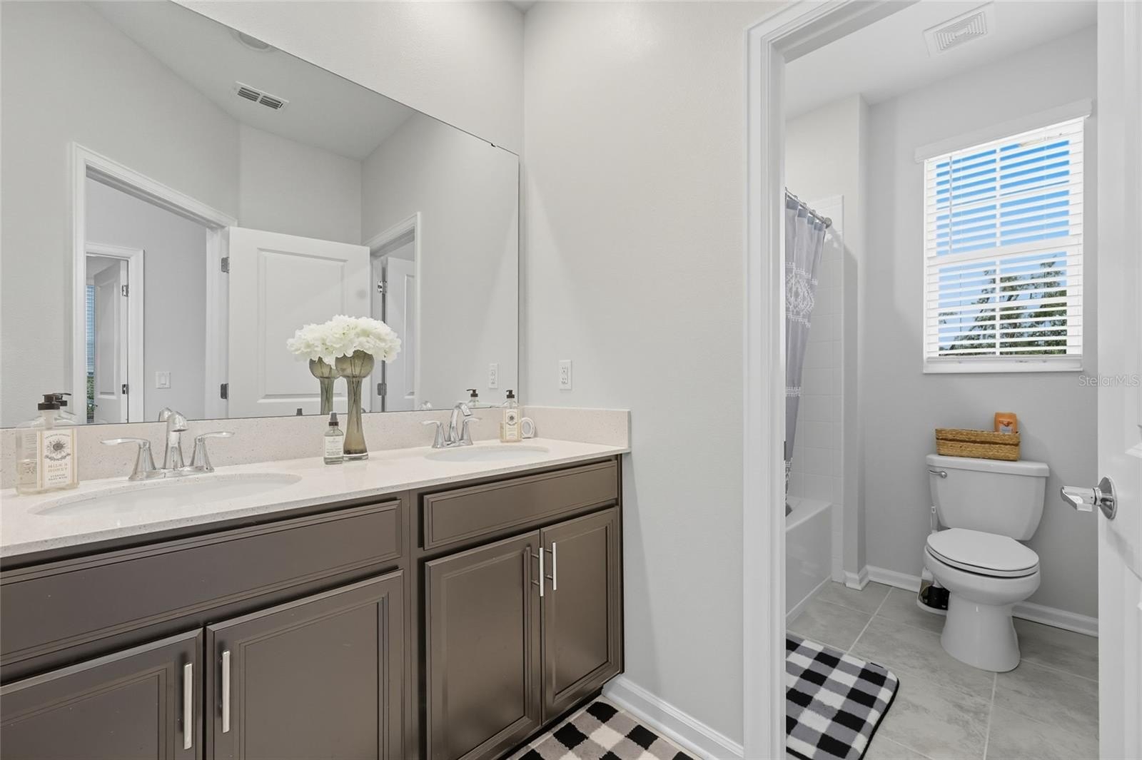 Conveniently, there is a bedroom and full bath on the first floor, perfect for guests or multi-generational living. Upstairs, you’ll find the inviting owner’s suite with dual vanities and a walk-in closet, along with two additional bedrooms and another full bathroom. Step outside to the expansive paver patio, ready for your personal touch, and enjoy the convenience of a full two-car rear-entry garage.