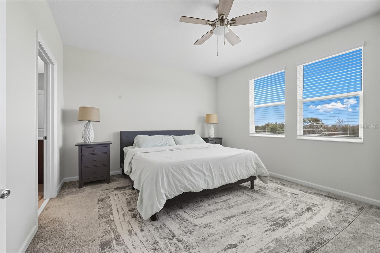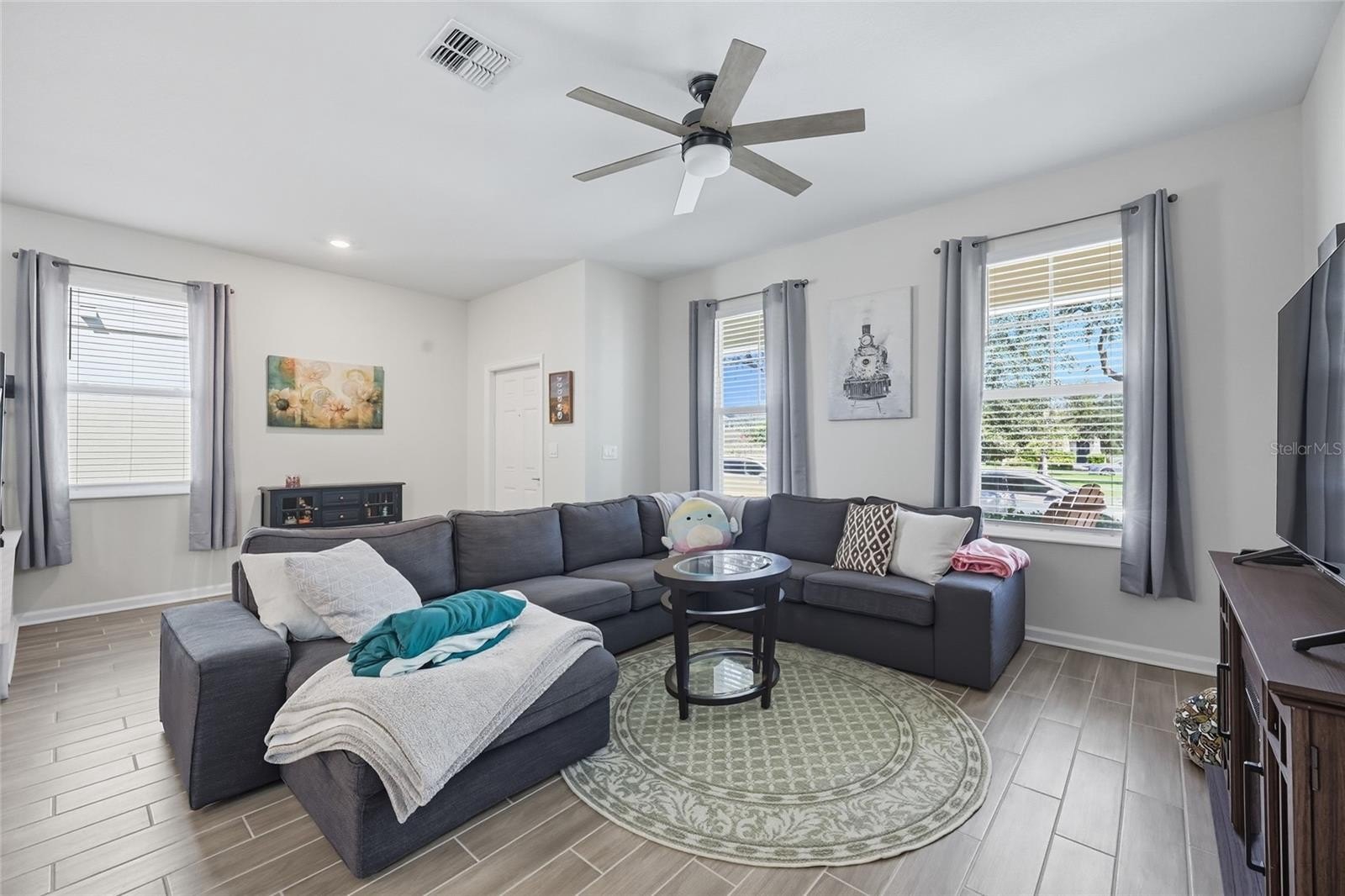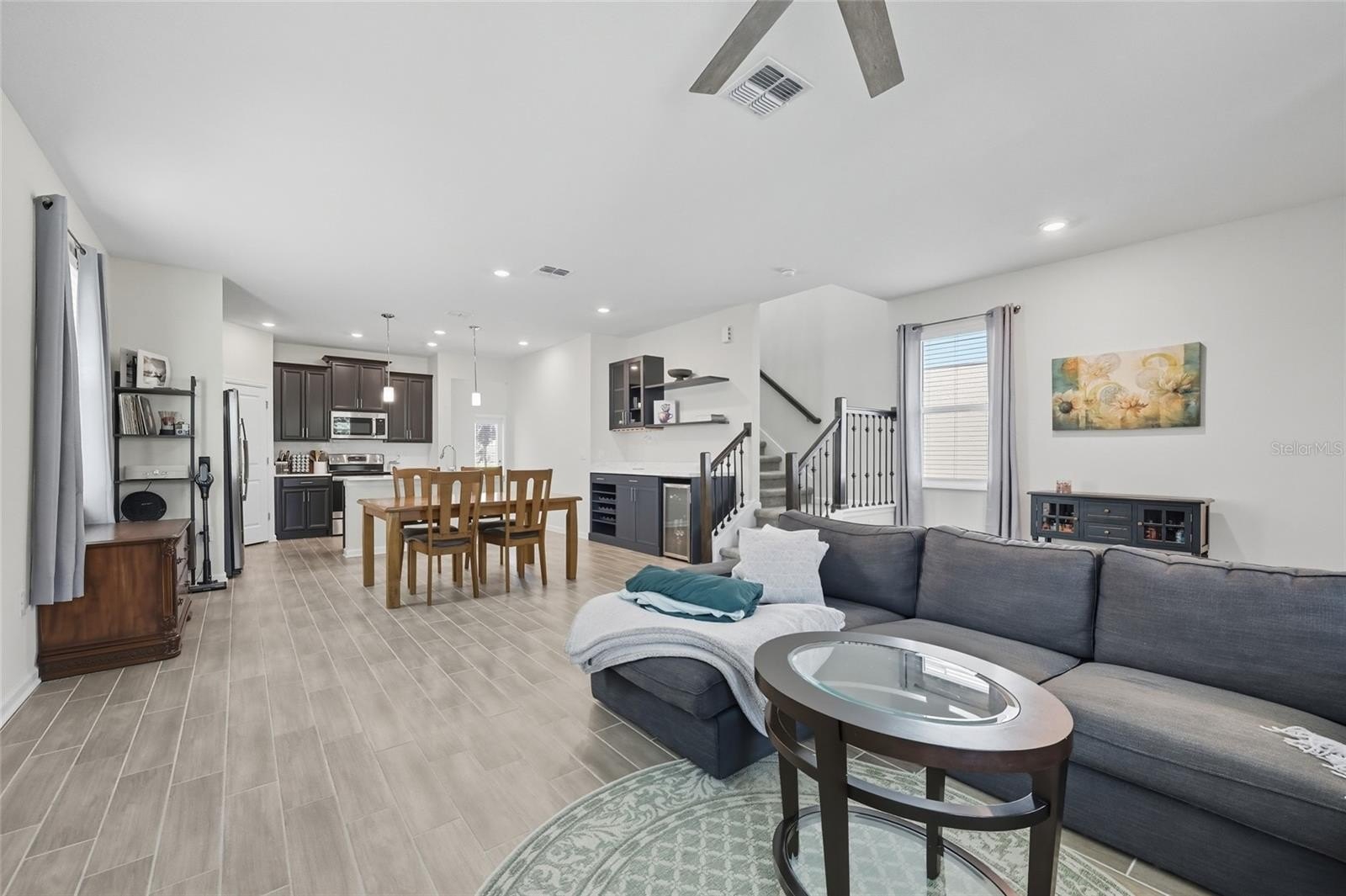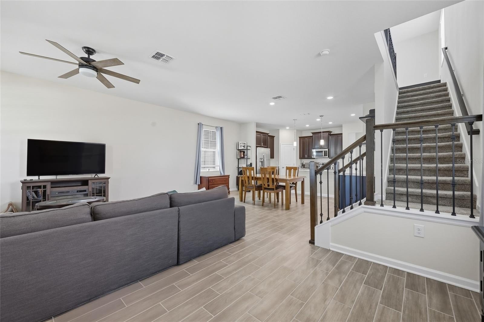 This stunning Waterside home sits on a premium lot with no rear neighbors and is loaded with thoughtful upgrades. The wide-open, beautifully designed kitchen features a closet pantry, quartz countertops, a large island, and stainless steel appliances. The main living areas are finished with tile flooring, leading into a bright and spacious great room filled with natural light.