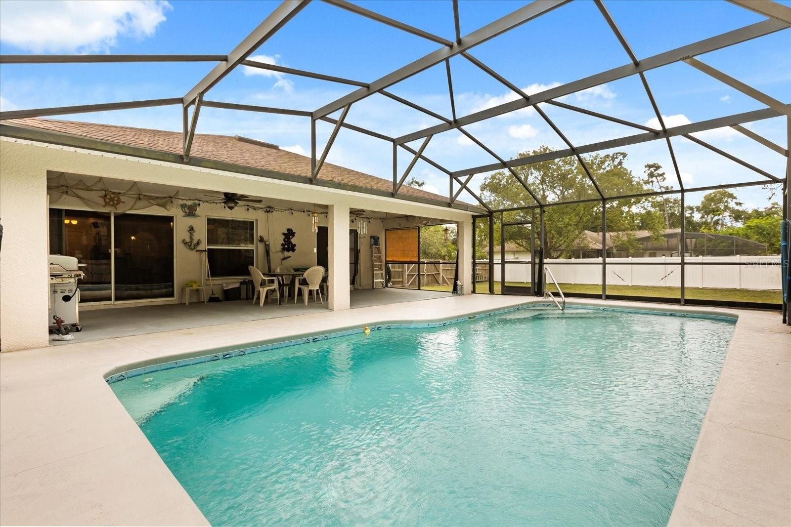 Welcome to this beautifully maintained 4-bedroom, 2-bath pool home located on an oversized, fully fenced lot with no HOA! Enjoy an open and spacious floor plan with high ceilings and ceramic tile flooring throughout most of the home. The layout includes a versatile split-bedroom design, offering a large primary suite complete with an updated en-suite bath featuring double vanities and 2 separate showers. The living spaces and primary bedroom offer serene views of the screened-in pool and private backyard that is perfect for enjoying Florida living. The eat-in kitchen features granite countertops, ample cabinet space, and modern finishes. Additional highlights include neutral interior colors, no popcorn ceilings, rounded wall corners, and a covered back porch ideal for entertaining. A 10x10 storage shed provides extra space for lawn equipment or tools. Located in the growing and sought-after area of St. Cloud, and right up the road from Ralph V. Chisholm Regional Park with boat access to East Lake Tohopekaliga this home won't last long!