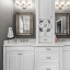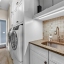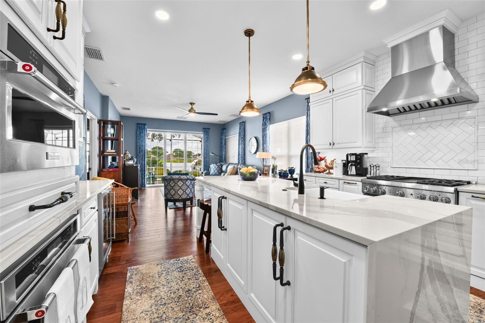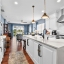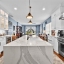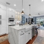 The chef’s kitchen is the showpiece: waterfall-edge quartz island, ceiling-height custom cabinetry, designer lighting, and a professional appliance package centered by a Thermador 36” gas range. Thoughtful details- two cooking centers, deep farmhouse sink, full-height backsplash, make everyday meals and holidays feel equally dialed-in.