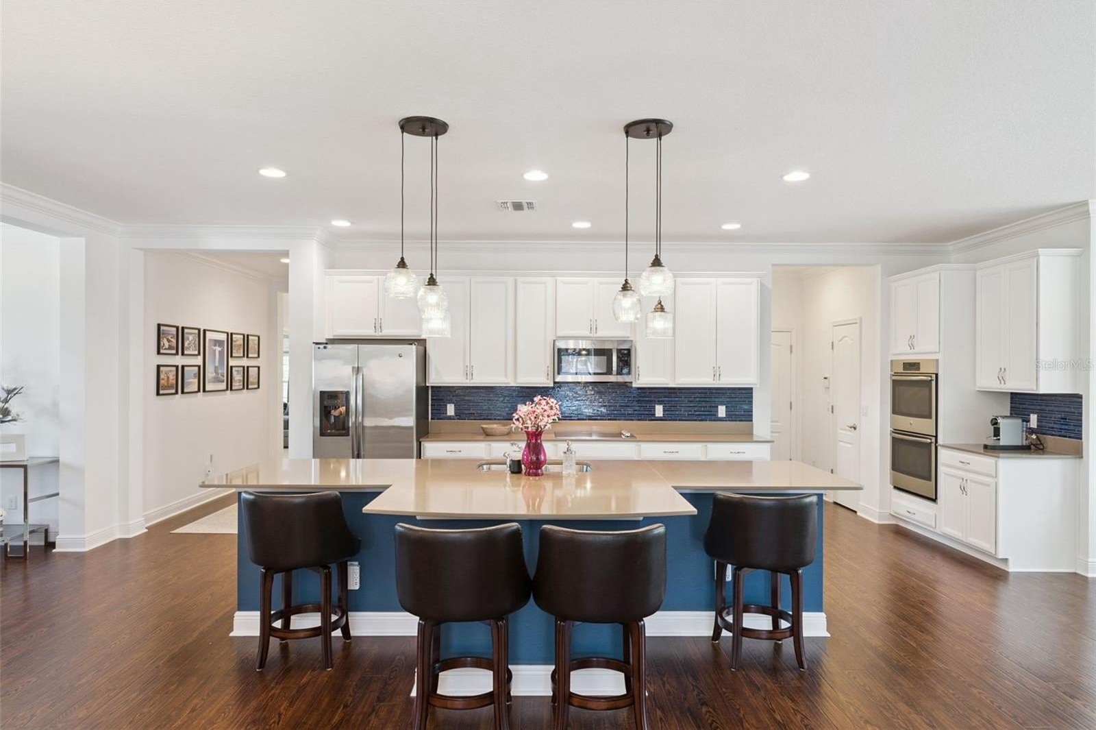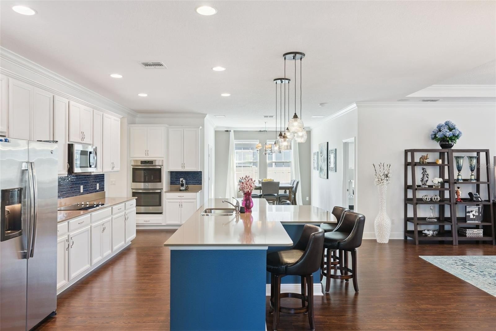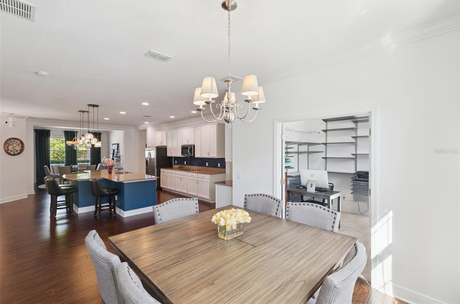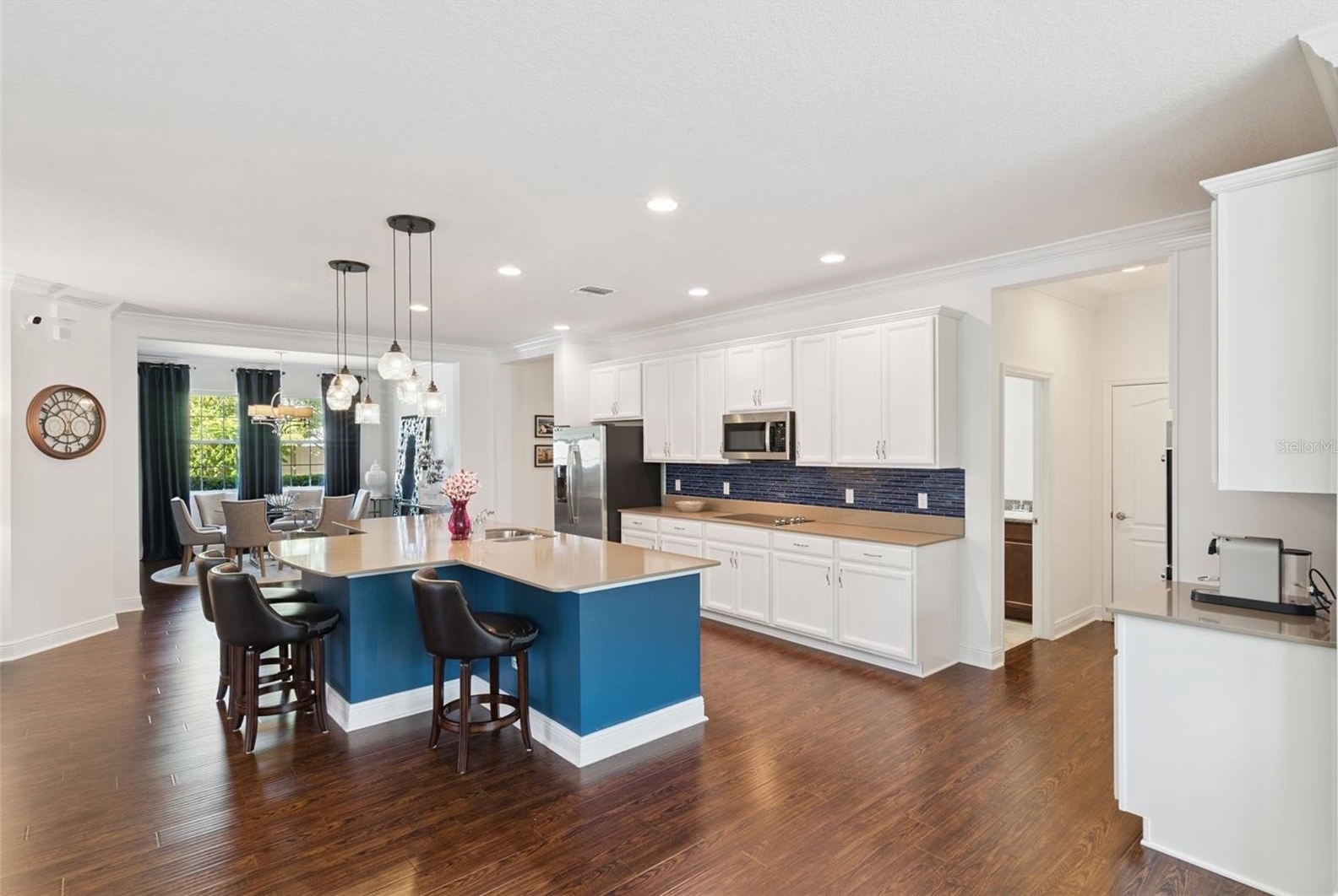 Welcome Home to Hickory Hammock! This stunning One-Story POOL home perfectly combines elegance, comfort, and convenience in one of Winter Garden’s most sought-after Gated Communities. Situated on a Premium Corner Lot, the home offers a Fully Fenced Yard with a sparkling Saltwater Pool, Travertine Deck, and versatile Basketball Court surrounded by lush green Grass; ideal for kids and pets alike. Whether you’re hosting friends’ poolside or relaxing under the Florida sun, this outdoor retreat offers the perfect balance of fun and tranquility. Step inside to an inviting Open-Concept floor plan spanning nearly 3,000 square feet of thoughtfully designed living space. With 5 bedrooms, 3.5 baths, and a flexible office/den, this layout provides plenty of room for both work and play. The formal dining room and bright dinette flow seamlessly into the spacious living room, which overlooks the resort-style backyard through large windows that fill the home with natural light. The gourmet kitchen is a showstopper—featuring a large Silestone island, elegant backsplash, white cabinetry, double ovens, GE appliances, and a pantry. Off the dinette, a an office/workspace that offers flexibility and can easily be converted into a walk-in pantry. The laundry room is oversized and comes complete with washer, dryer, utility sink, and additional cabinet storage. The home’s triple-split floor plan ensures privacy for everyone: two bedrooms share a full bath at the front, two more are connected by a Jack-and-Jill bath, and the primary suite is tucked away with its own luxurious bath featuring a garden tub, separate shower, and custom walk-in closet. Every closet in the home includes Alpha custom organization systems, maximizing storage and functionality. Designer touches are found throughout—engineered hardwood floors, crown molding, designer lighting, window treatments, 4-ZONE A/C, security system, surround sound outdoors, electric shades, and a termite bond for peace of mind. Outside, the Resort-style Saltwater Heated Pool with Sun Shelf is the centerpiece of the backyard oasis, surrounded by ample patio space for dining, sunbathing, or relaxing under the stars. The basketball court can be enjoyed or easily removed, leaving a beautiful paver patio for entertainment or expansion. Hickory Hammock residents enjoy resort-style amenities including a zero-entry community pool, clubhouse, fitness center, tennis and volleyball courts, fishing pier, playgrounds, parks, walking trails, and dog park. With top-rated schools, proximity to downtown Winter Garden, Winter Garden Village, and just 20 minutes to Disney and 30 minutes to the airport, this home truly offers the best of Central Florida living. Meticulously maintained by its original owners—with no pets or smoking ever, this residence showcases pride of ownership at every turn. Whether you’re seeking a primary residence or a fully furnished turnkey option, this exceptional home is ready to welcome its next lucky owner. Schedule your private tour today; your Winter Garden dream home awaits!