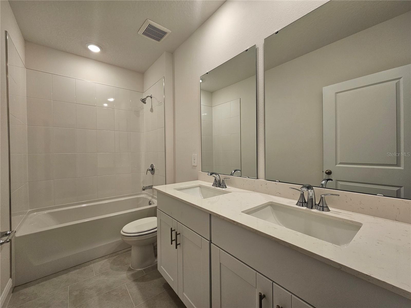 • Quartz countertops in kitchen and bathrooms