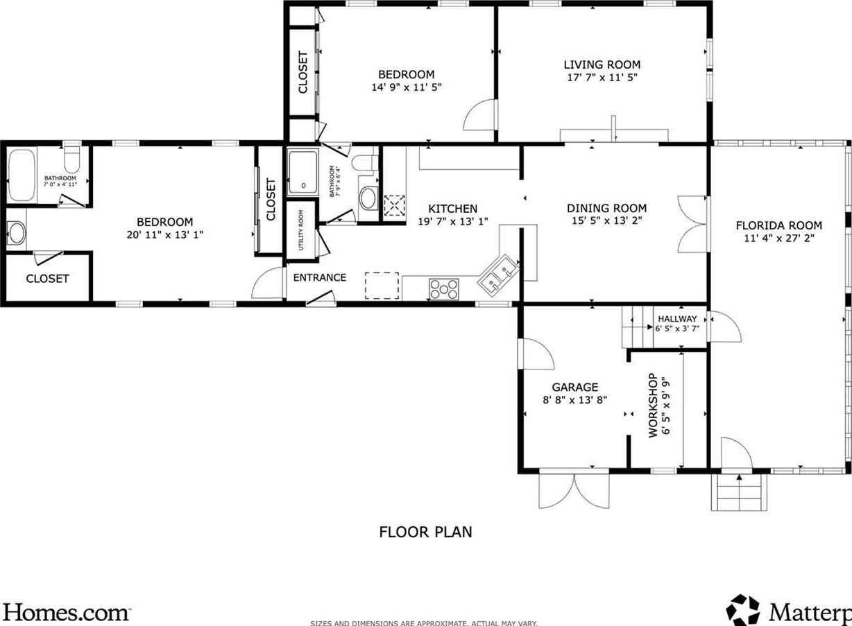 - Luxurious, updated bathrooms and new flooring throughout the kitchen, dining area, Florida room, and baths