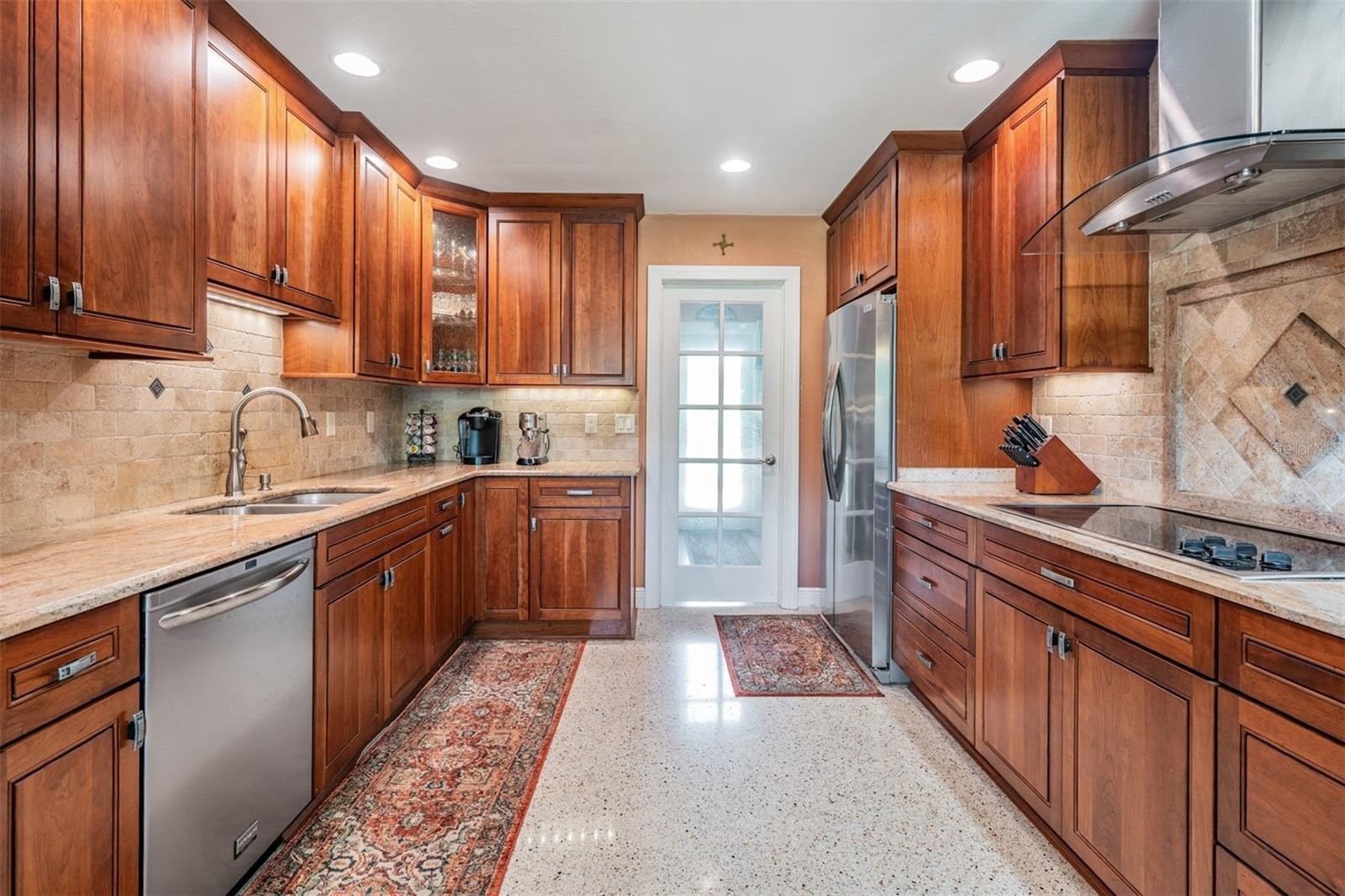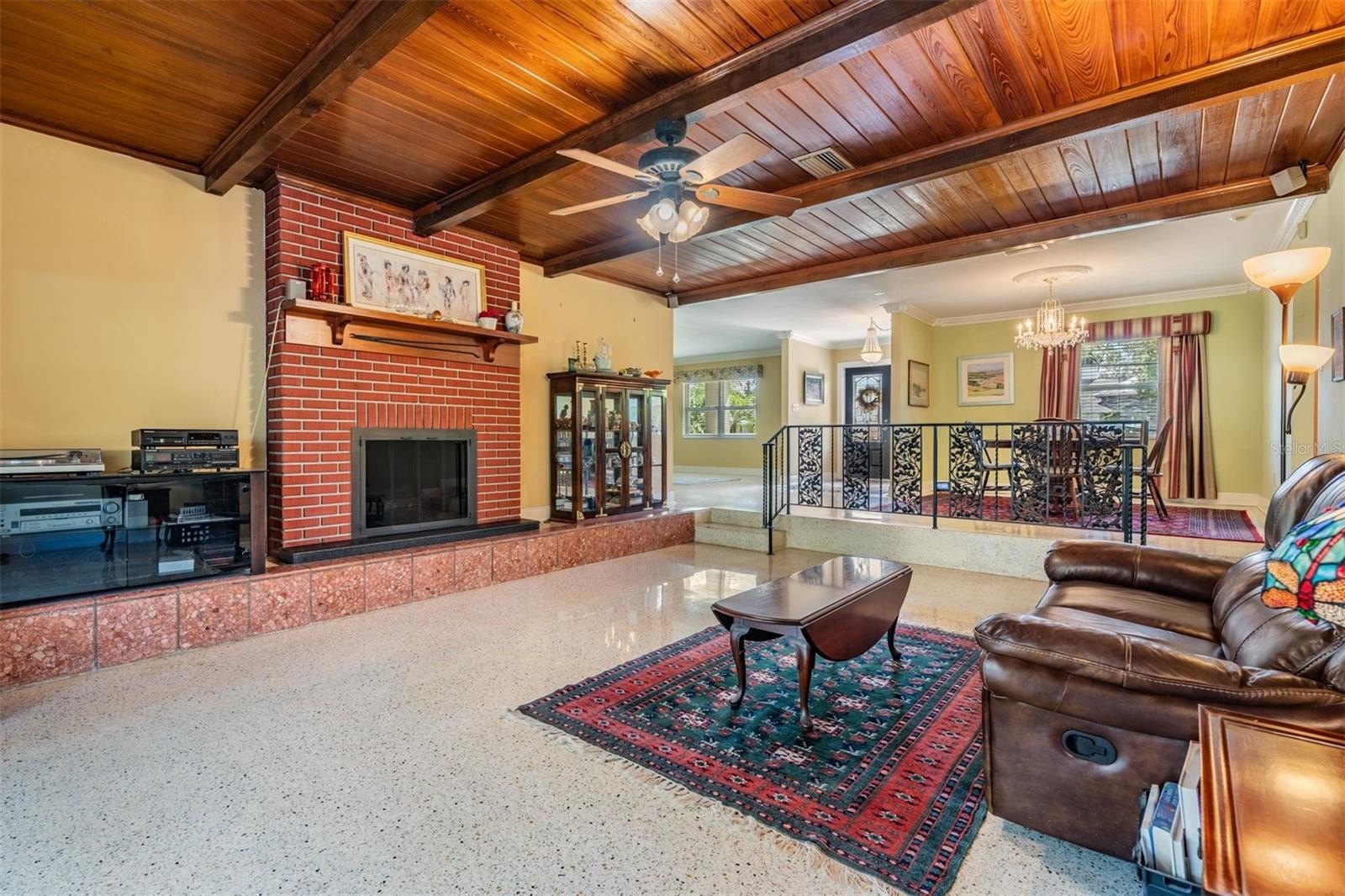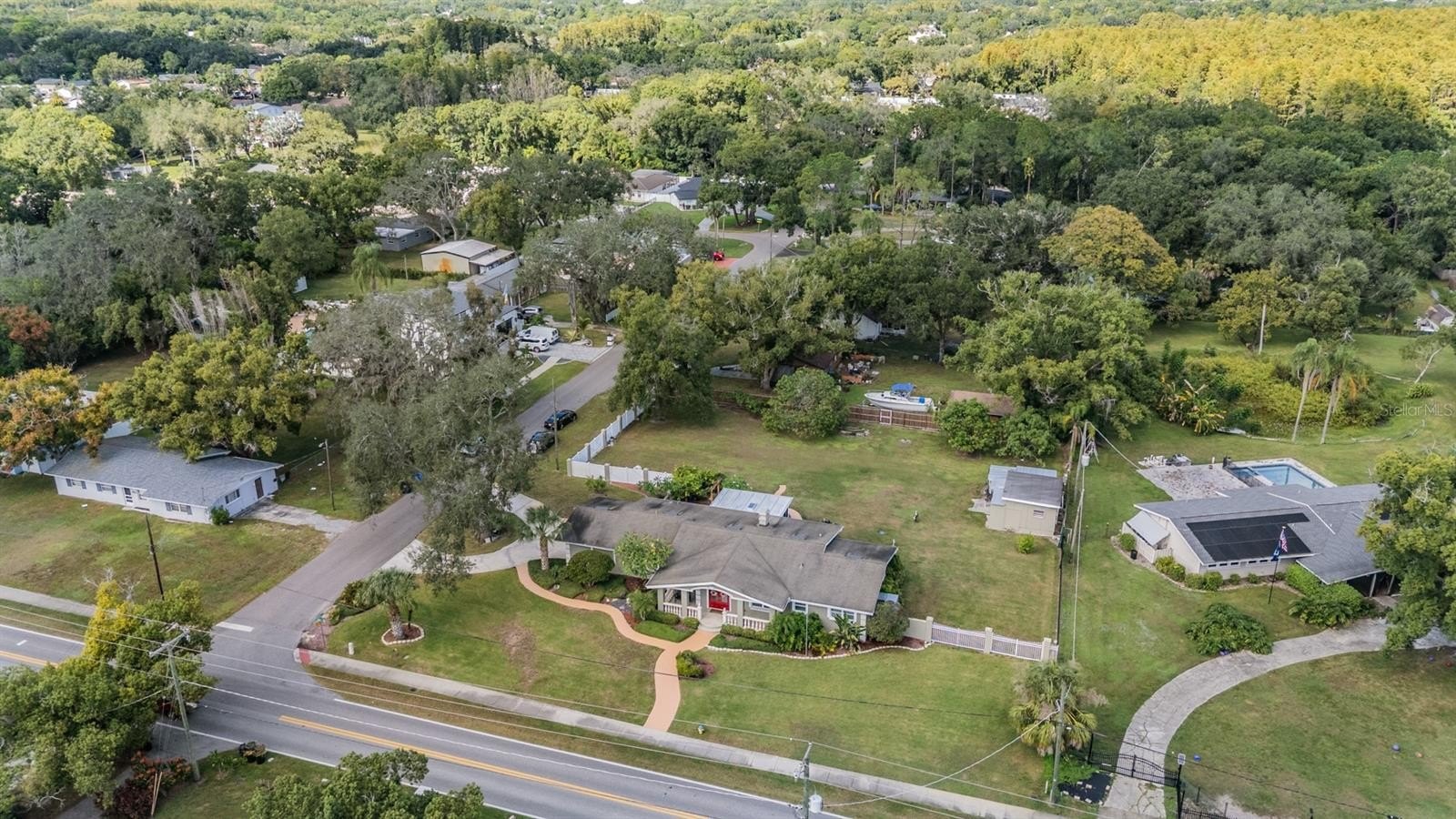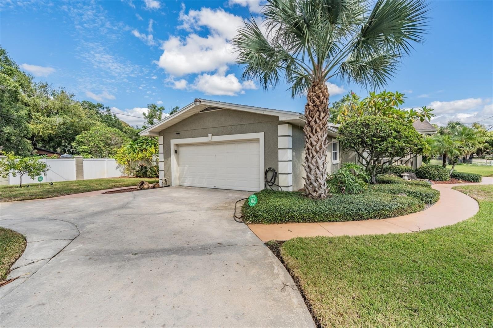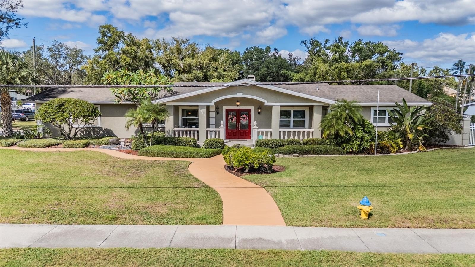 Large corner lot home in Carrollwood with No HOA! This 3 bedroom, 2 bath home sits on .70 of an acre with a large fenced yard with fruit trees and a workshop. The home features beautiful terrazzo floors, crown molding in the main living area and a well equipped kitchen designed with a home cook in mind. There is a sunken family room with wrought iron accents and a large brick wood burning fireplace with a mahogany mantel. The ceiling is beautifully finished with tongue in groove wood. The spacious kitchen features cherry wood KraftMaid cabinets with under cabinet lighting, granite countertops and a custom tumbled travertine backsplash. There is a 36” cooktop with a stainless steel and glass hood vent along with a GE profile microwave and wall oven. The laundry room has access to the garage and the backyard and has plenty of shelving and a pantry for storage. The front porch welcomes you into the foyer, formal dining room and living room which can be used as a flex space or home office. The primary bedroom has 3 closets along with sliders out to the large backyard. The secondary bedrooms are a good size and share a hall bath. There are double paned windows; hurricane shutters on all exterior sliders plus hurricane fabric for the windows and a whole house Generac generator. This home is convenient to all the Carrollwood and Tampa Bay area has to offer including restaurants, shopping and Tampa International Airport. Come see this home and make it yours today!