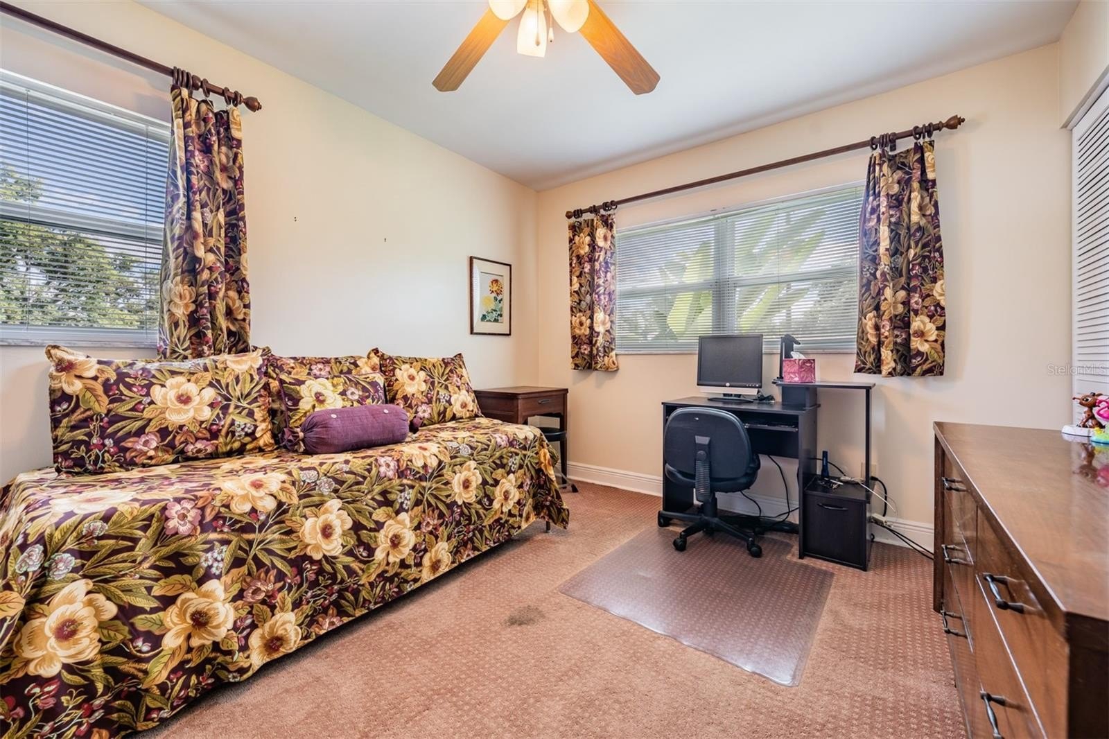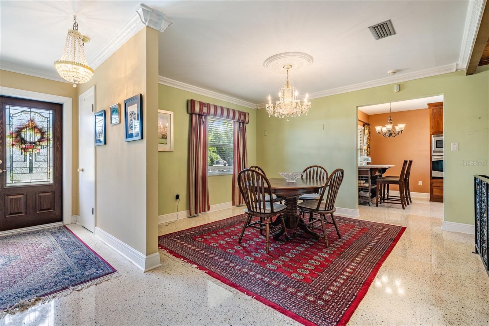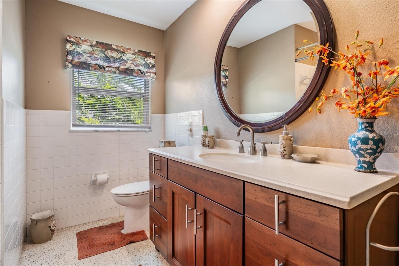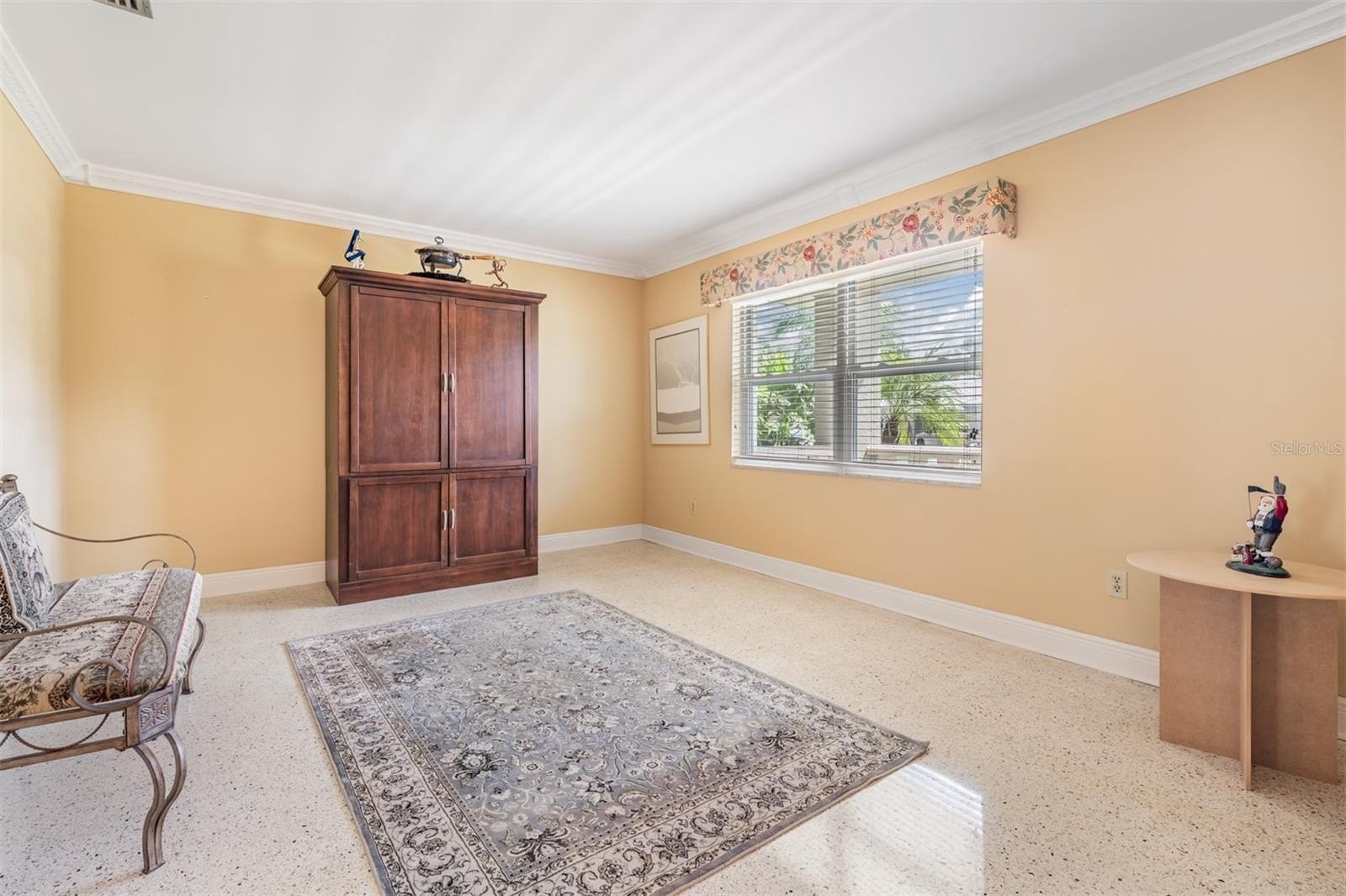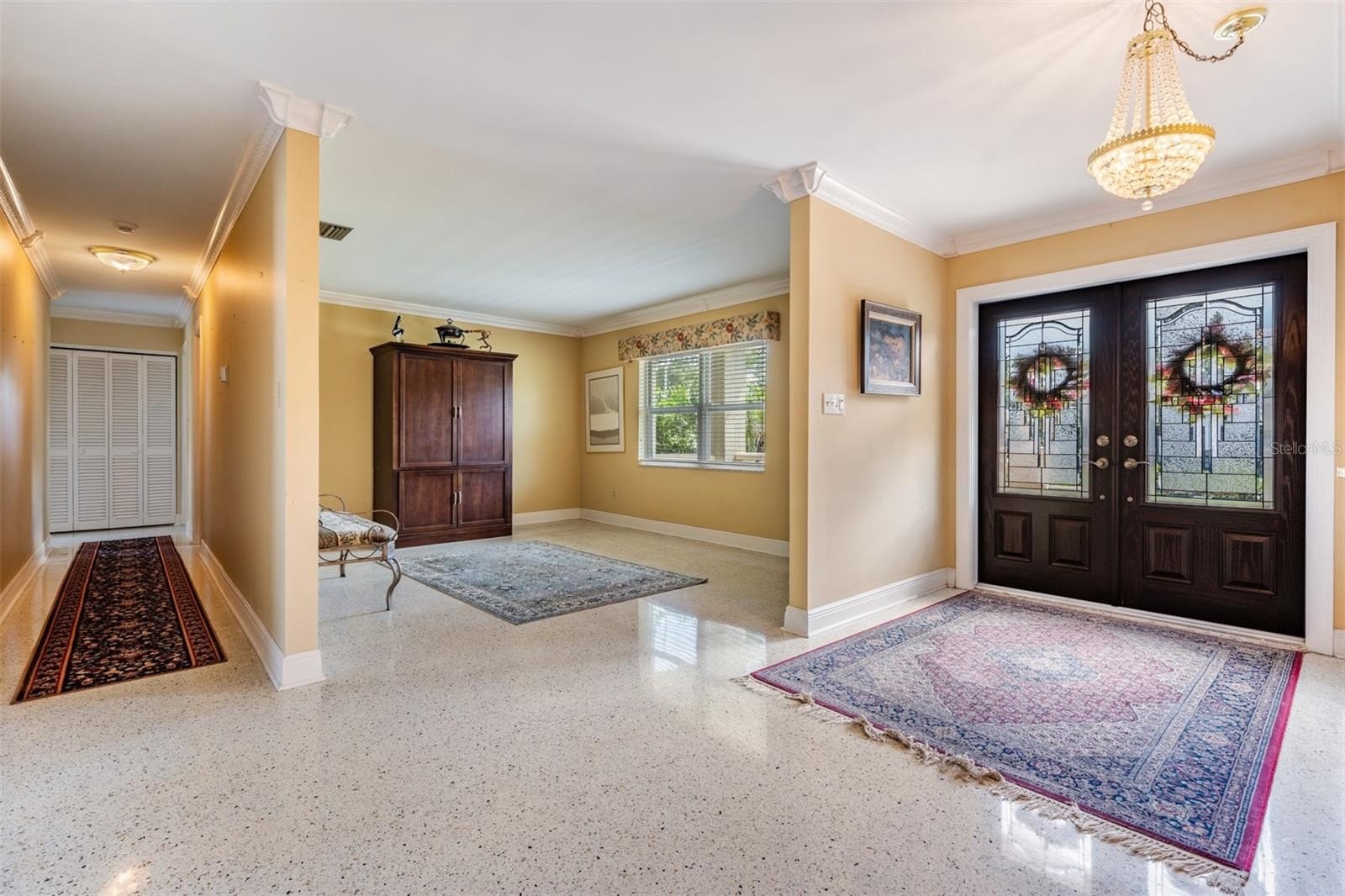 Large corner lot home in Carrollwood with No HOA! This 3 bedroom, 2 bath home sits on .70 of an acre with a large fenced yard with fruit trees and a workshop. The home features beautiful terrazzo floors, crown molding in the main living area and a well equipped kitchen designed with a home cook in mind. There is a sunken family room with wrought iron accents and a large brick wood burning fireplace with a mahogany mantel. The ceiling is beautifully finished with tongue in groove wood. The spacious kitchen features cherry wood KraftMaid cabinets with under cabinet lighting, granite countertops and a custom tumbled travertine backsplash. There is a 36” cooktop with a stainless steel and glass hood vent along with a GE profile microwave and wall oven. The laundry room has access to the garage and the backyard and has plenty of shelving and a pantry for storage. The front porch welcomes you into the foyer, formal dining room and living room which can be used as a flex space or home office. The primary bedroom has 3 closets along with sliders out to the large backyard. The secondary bedrooms are a good size and share a hall bath. There are double paned windows; hurricane shutters on all exterior sliders plus hurricane fabric for the windows and a whole house Generac generator. This home is convenient to all the Carrollwood and Tampa Bay area has to offer including restaurants, shopping and Tampa International Airport. Come see this home and make it yours today!