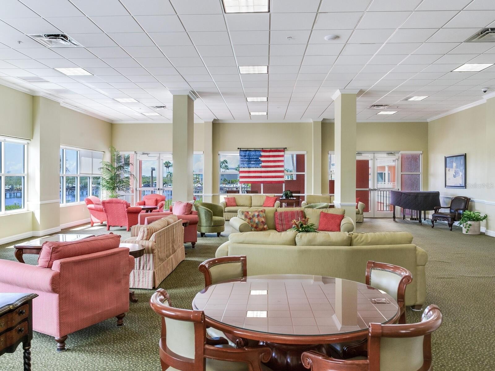 • Clubhouse with a large TV, baby grand piano, pool table, serving kitchen, and open terrace
