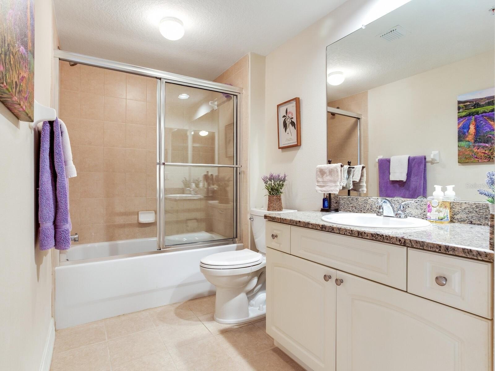 The spacious kitchen is ideal for entertaining, featuring newer stainless steel appliances (just two years old), a breakfast bar, pantry, and ample counter space. The luxurious primary suite offers a private balcony, a large walk-in closet, and a spa-like bath with dual granite-topped vanities and a garden tub.