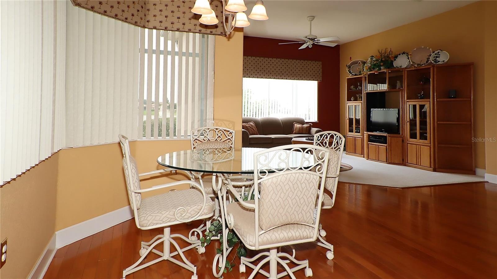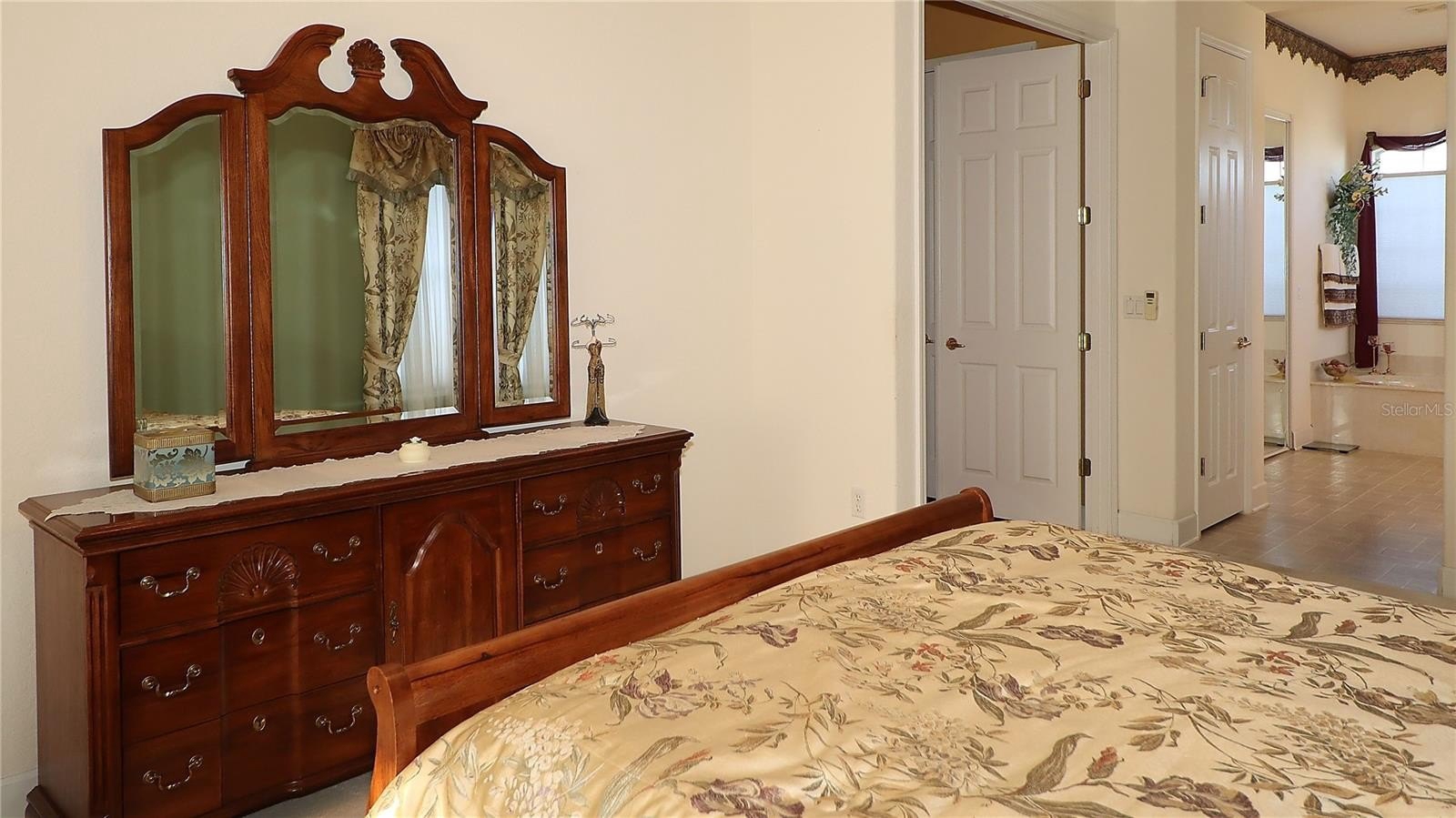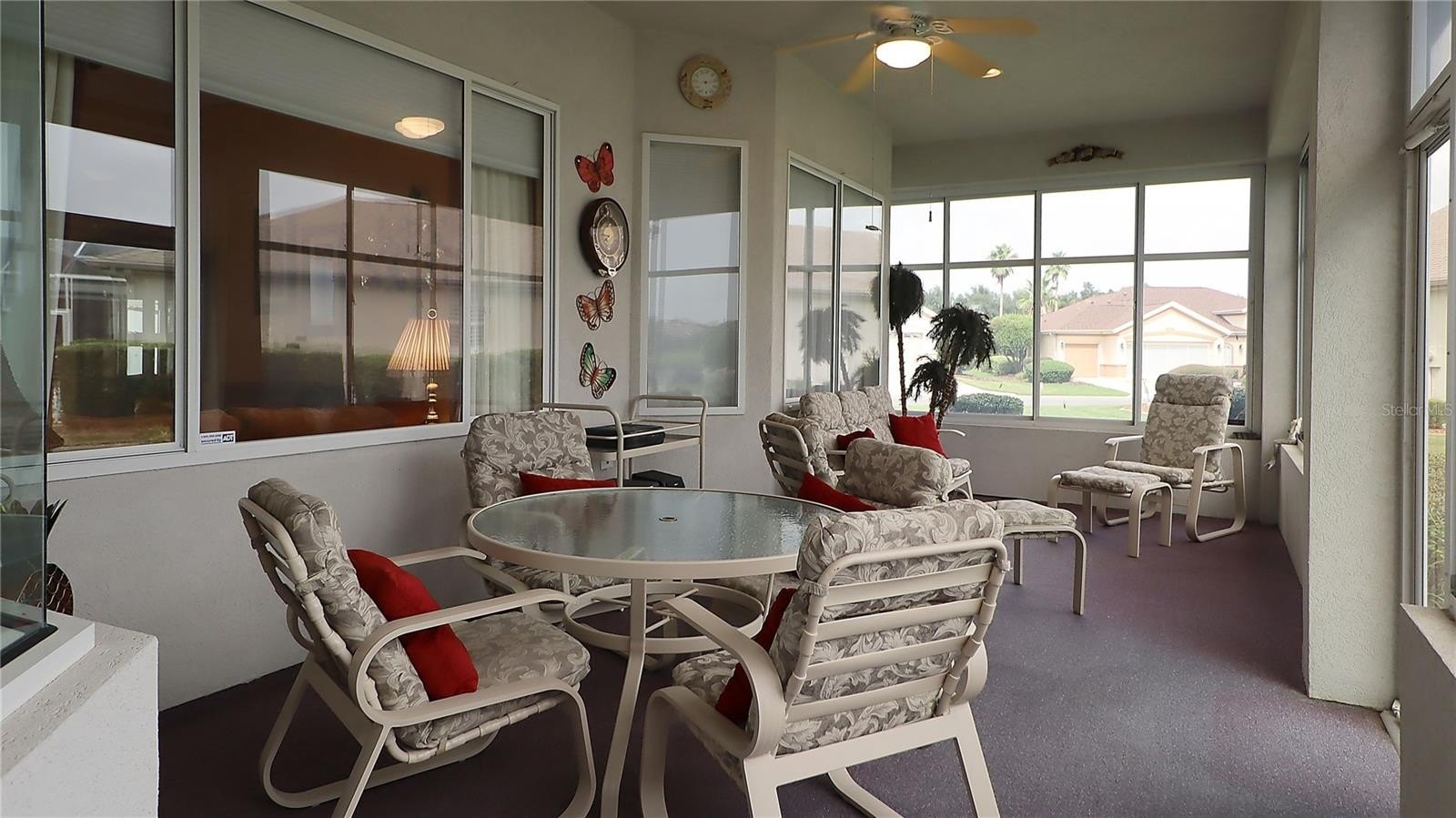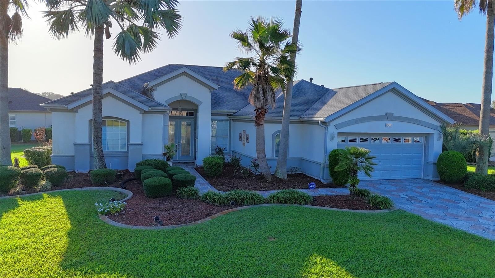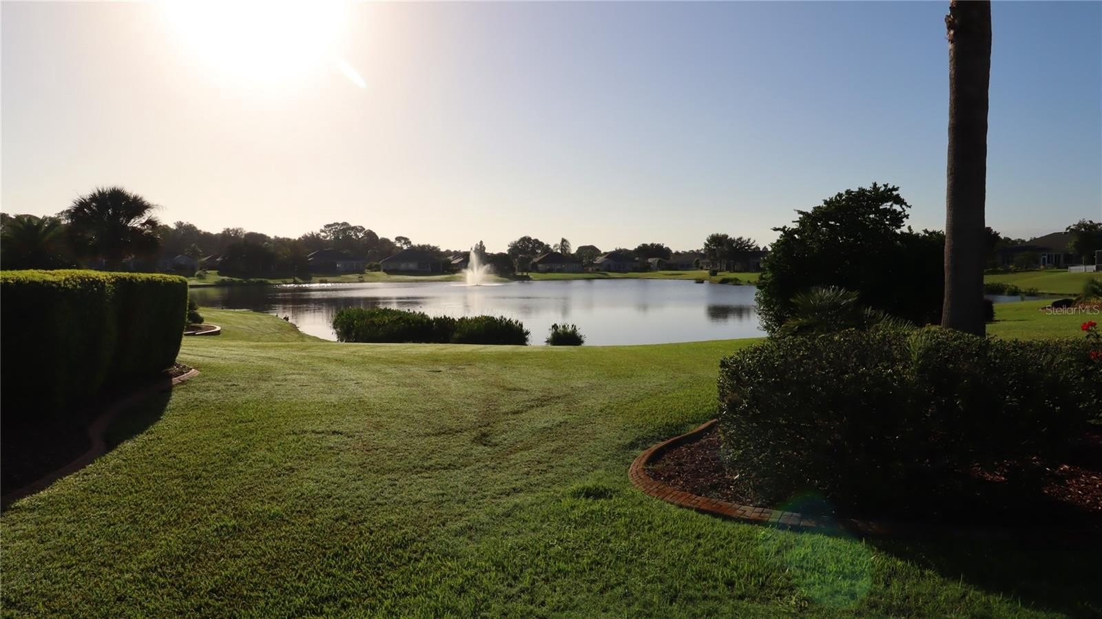 Sought after lake views in Tamarron. Great curb appeal. Designer double door entry. This 3/2.5 with formal living/dining plus a kitchen, nook and family room combo. Open, split plan with lake views from several rooms in this home. Large kitchen with cooktop, built-in oven and microwave. Lots of cabinetry and storage. Breakfast nook is adjacent and showcased by triple frameless bay window for spectacular lake views. Large inside laundry room with additional storage right off of the kitchen. Powder room is also located close to laundry and kitchen area. Formal living room has carpet insert with hardwood walkways and into the formal dining area. Double door entry into primary bedroom also features the hardwood walkway with carpet in the bedroom and vinyl flooring in en-suite bath. Large closet with mirrored double sliding doors, Jacuzzi jetted tub and separate glass enclosed shower with pivotal door. Double sinks, high-low vanities with make-up station. Separate water closet. Primary bedroom has beautiful tray ceiling with views of the lake. On the other side of the house are the two bedrooms; one features carpeting (lake views) while the other one is being used as a den and features the hardwood flooring. Guest bath has tub/shower combo. Enclosed lanai with acrylic windows and carpeting on the floor. Large over-sized two-car garage with golf cart parking or workshop capabilities; utility sink, key-less entry and storage galore. HVAC 2016. Architectural shingles 2020. Solar panels are paid for and are hooked into the power grid for reduction of monthly electric bills. Located close to the Fitness Center (indoor pool), Veterans Memorial, softball field and the walking trails in the Kestral Preserve. Awarding winning 55+ gated community of Del Webb's Spruce Creek Golf and Country Club. Do as much as you want or nothing at all. Entirely up to you and your lifestyle to participate in the activities that you like. Four 9 hole golf courses on site. Restaurant and Pro Shop. Make this your final move!