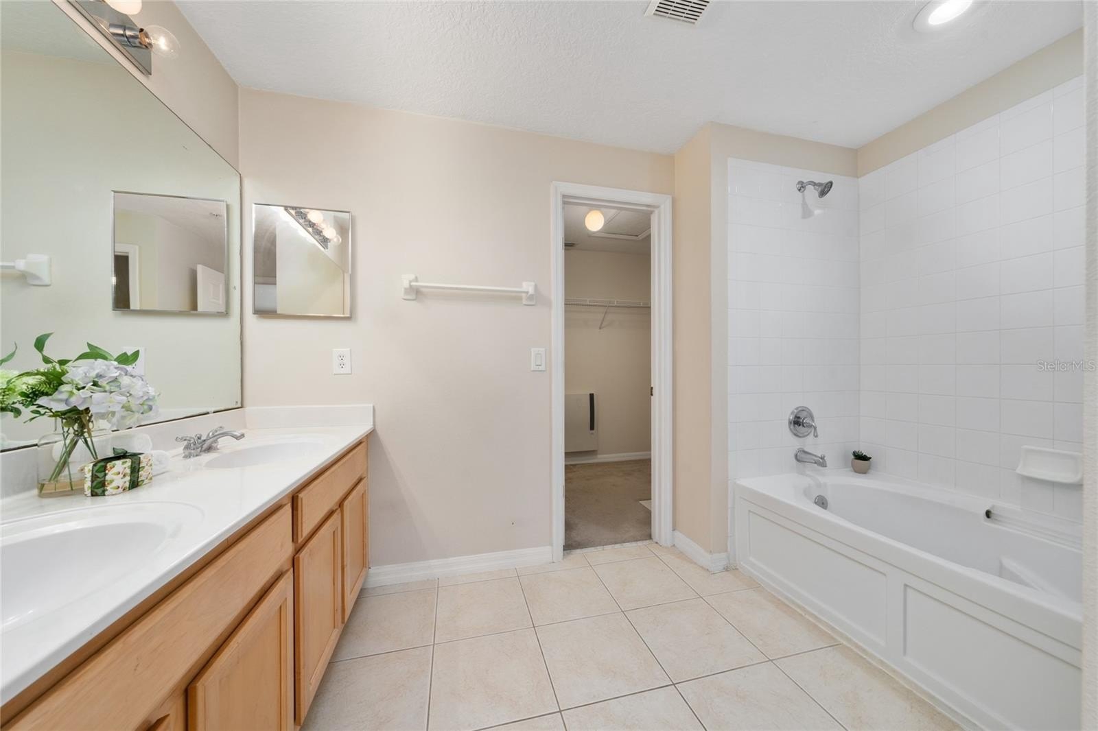 The unique floor plan sets this home apart, with well-defined common areas on the first floor, all finished with ceramic tile. Upstairs, the large primary bedroom includes a walk-in closet and an expansive en-suite bathroom with dual sinks. Additionally, the second floor offers an open loft area—perfect for a reading nook or home office.