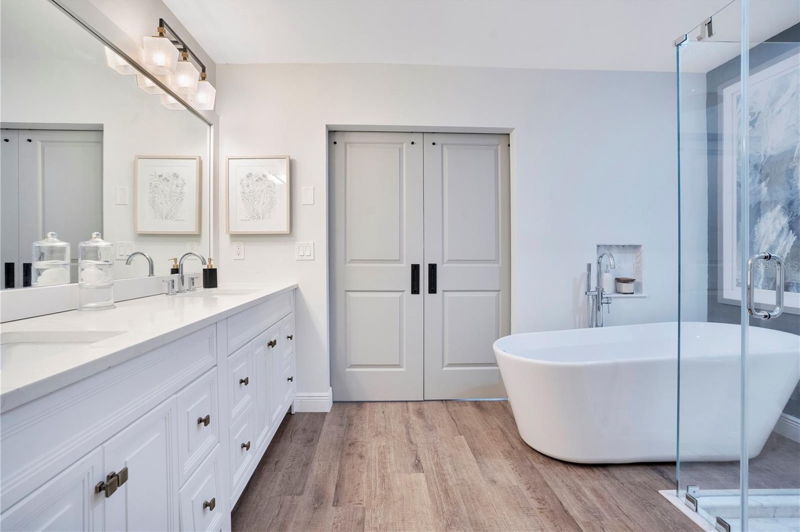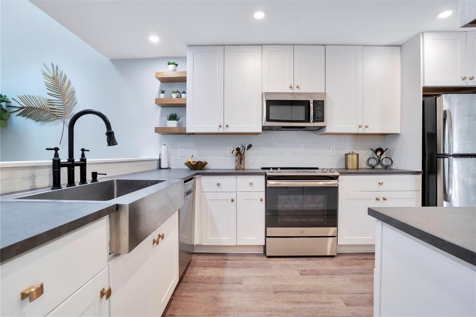 Welcome to 7736 Windbreak Road — a stunningly upgraded townhome in the coveted gated community of Sandpointe Townhomes, ideally located in the heart of Dr. Phillips. This 3-bedroom, 2.5-bath residence combines timeless design with modern comfort. As soon as you walk into the courtyard your welcomed with a peaceful zen garden that invites you right in. The home showcases flat ceilings (no popcorn), luxury waterproof vinyl flooring, custom paneled doors, accent walls, and designer baseboards throughout. Bright, open living spaces are enhanced by recessed lighting and freshly painted rooms, while 12-foot ceilings on the second floor create an airy, spacious feel.The kitchen features a farmhouse-style stainless-steel sink and flows seamlessly into the living and dining areas—perfect for entertaining or enjoying quiet evenings at home. Enjoy your mornings in the built in bistro cafe that some may refer to as a breakfast nook. The fully renovated primary suite located on the first floor, includes a marble-top vanity, spa-inspired finishes, and private patio access that floods the room with natural light. Additional baths feature updated vanities and premium materials. The home also offers a 2-year-old roof, recent AC maintenance, and an HOA that handles all lawn care, allowing for easy, low-maintenance living. Community amenities include a heated pool, clubhouse with library, fitness center, tennis/pickleball and bocce ball courts, and beautifully maintained landscaping throughout. Sandpointe’s two gated entrances make access convenient and secure. Prime Dr. Phillips location: walk to Trader Joe’s, Whole Foods, Publix, and over 85+ restaurants, shops, and cafes. Only 10 minutes to I-4, SR-528, and International Drive, 20 minutes to Disney World, and just an hour to the beach.