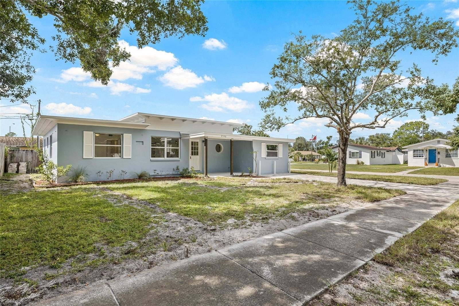 Just Remodeled and move in ready! This Must-see home features new roof 2024,ten foot ceilings, brand-new Hvac units and air ducts, updated elecrical wiring, new kitchen and bathroom cabinets, fresh drywall and paint,finished attic space above laundry area for added storage, new doors including two farm slide doors and front door. Luxury flooring with modern baseboards throughout. The kitchen shines with all-new appliances,while new irrigation system and fresh sod will create a lush, green lawn. Enjoy a beautifully paved back patio( photo just added) that now matches the new pavers on driveway,-plus upgraded sliding glass doors leading to porch. (4 new pallets of grass have been added not reflected in pictures) The spacious backyard offers ample room to store boats or other recreational wehicles-perfect for boaters! Located close to downtown St. Petersburg, love the convience of nearby shopping,dining and entertainment.Experience the best of St. Pete lifesyle in this fully updated home