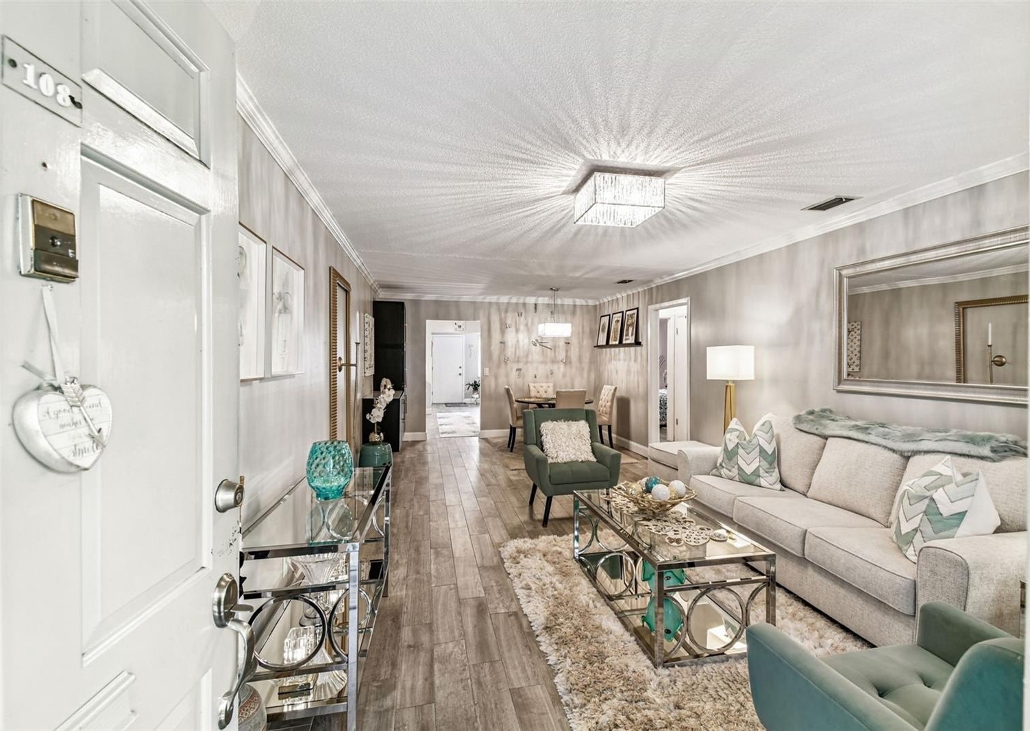Welcome Home! Don’t miss this beautifully updated and fully renovated 2-bedroom, 1-bath condo in the heart of Seminole, just minutes from Gulf beaches, parks, shopping, and dining. Stylish, modern, and move-in ready — this home offers comfort, convenience, and an unbeatable lifestyle. Inside, you’ll love the wood-look tile flooring throughout and the sleek, updated kitchen featuring quartz countertops, 42-inch cabinets with under-cabinet lighting, stainless steel appliances, and a designer tile backsplash. The renovated bathroom offers a fresh, modern look with an upgraded vanity and fixtures. Both bedrooms are spacious with ample natural light and closet space. The Florida Room offers an additional living space, perfect for entertaining. This welcoming community offers resort-style amenities, including a community pool, shuffleboard courts, and a clubhouse, which hosts social events and gatherings. The monthly condo fee covers cable, high-speed internet, water, sewer, and trash, making for stress-free living with minimal utility costs. Whether you're looking for a year-round home or a seasonal getaway, this condo delivers the perfect mix of value, location, and lifestyle. Schedule your private showing today and start living the Florida dream!
