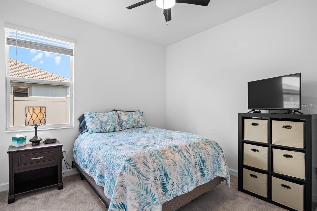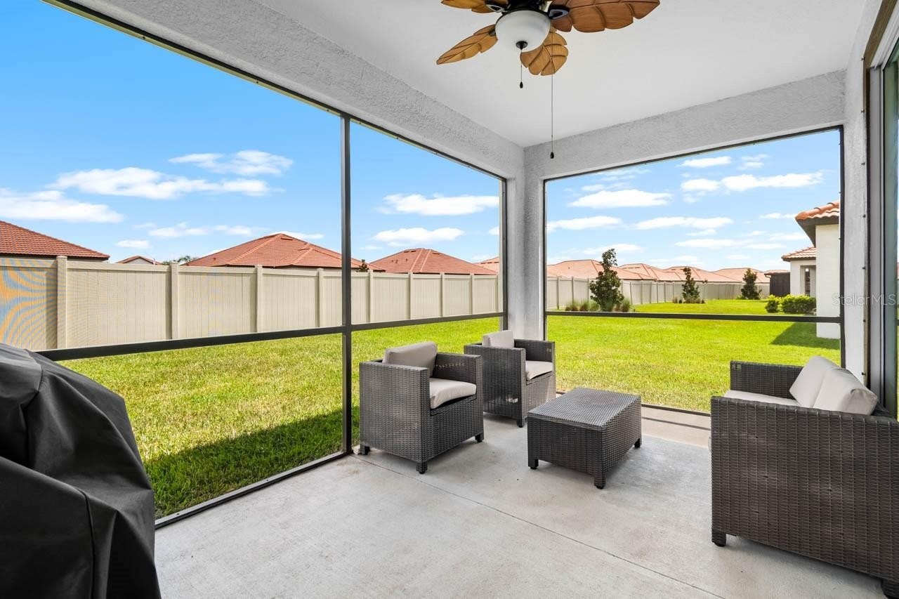 This beautifully maintained 2-bedroom, 2-bathroom home with a flex room and 2 1/2-car garage is better than new and ready to impress. Located in the premier, gated, active adult community of Medley at Southshore Bay, this home offers a lifestyle of comfort and convenience.Step inside to discover a spacious, open, and split-bedroom floorplan featuring ceramic woodgrain plank tile throughout the main living areas and carpet in the bedrooms. The home is thoughtfully designed with ceiling fans in every room, recessed lighting, and crown molding for a touch of elegance. The gas appliances and tankless gas water heater provide efficiency and modern convenience.The chef’s kitchen is a true highlight, with quartz countertops, painted cabinets with staggered height, and crown molding for added sophistication. The oversized island with a breakfast bar, walk-in corner pantry, and gas range make this kitchen as functional as it is beautiful.The master suite is a serene retreat with an ensuite bath featuring dual quartz vanities, an oversized glass-enclosed shower, and a large walk-in closet. The second bedroom and additional flex space (perfect for a home office or potential third bedroom) offer plenty of room for relaxation and versatility.The garage includes a 9x9 golf cart/workshop space, providing extra room for hobbies, storage, or a small studio setup—ideal for those who need a bit more space.Step outside and embrace Florida living. The covered and screened patio with a ceiling fan is perfect for relaxing or entertaining. And don’t miss the charming front porch, where you can unwind and enjoy vibrant Florida sunsets in the evenings—your own slice of paradise.Additional features include a tile roof, pavered driveway and walkways, and a separate laundry room.Medley at Southshore Bay is a vibrant, resort-style community designed exclusively for active adults who want to enjoy life to the fullest. This 55+ community features a private, gated entrance, providing peace of mind while still being part of a dynamic and social environment. Residents enjoy access to top-tier amenities including a luxurious clubhouse, a fitness center, resort-style pool, pickleball courts, and a grand ballroom for social events and gatherings. Plus, the stunning Southshore Bay Lagoon offers a unique aquatic experience with its beach entry, water slides, and cabanas, creating the perfect place to relax or entertain friends and family.The community is also ideally located near shopping, dining, and entertainment, with easy access to I-75 and zus Hwy 301, making it convenient for travel to nearby Tampa and the Gulf Coast beaches. Medley at Southshore Bay combines the best of both worlds – a peaceful, tranquil environment paired with a socially vibrant atmosphere where new friendships are waiting to be made.