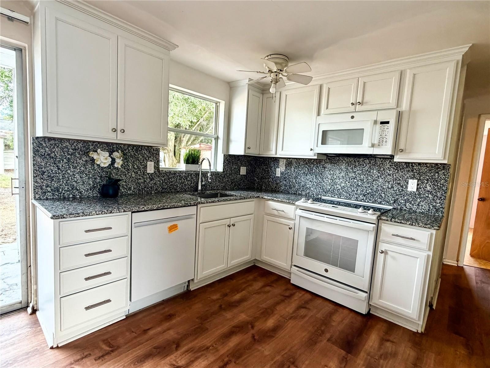 Perfectly situated near all the best of the Gulf Coast, this charming and affordable home offers unbeatable value, efficiency, and flexibility. Whether you’re seeking a full-time residence, seasonal getaway, or rental income opportunity, this property is ready to perform. You’ll love the unbeatable location! Just minutes from the World-Famous Tarpon Springs Sponge Docks, historic downtown Tarpon Springs, downtown New Port Richey, and some of Florida’s most beautiful Gulf beaches, including Sunset Beach and Fred Howard Park. Enjoy quick access to shopping, dining, entertainment, and Tampa International Airport for easy travel. Inside, discover a beautifully remodeled kitchen (2021) with upgraded KraftMaid cabinetry, granite countertops and backsplash, and beautiful matching GE appliances. All you need to bring is your preferred fridge! The warm, neutral flooring (2021) flows seamlessly through the main living areas, creating an inviting and move-in-ready atmosphere. Energy efficiency shines here, with whole-home solar panels that keep the average electric bill around $30 per month. The roof (2015) adds extra peace of mind plus this is a solid block home! Outside, enjoy the spacious backyard with two storage sheds, perfect for tools, hobbies, or extra storage space. Bring your golf cart or motorcycle! There's a perfect garage space just perfect for those too!