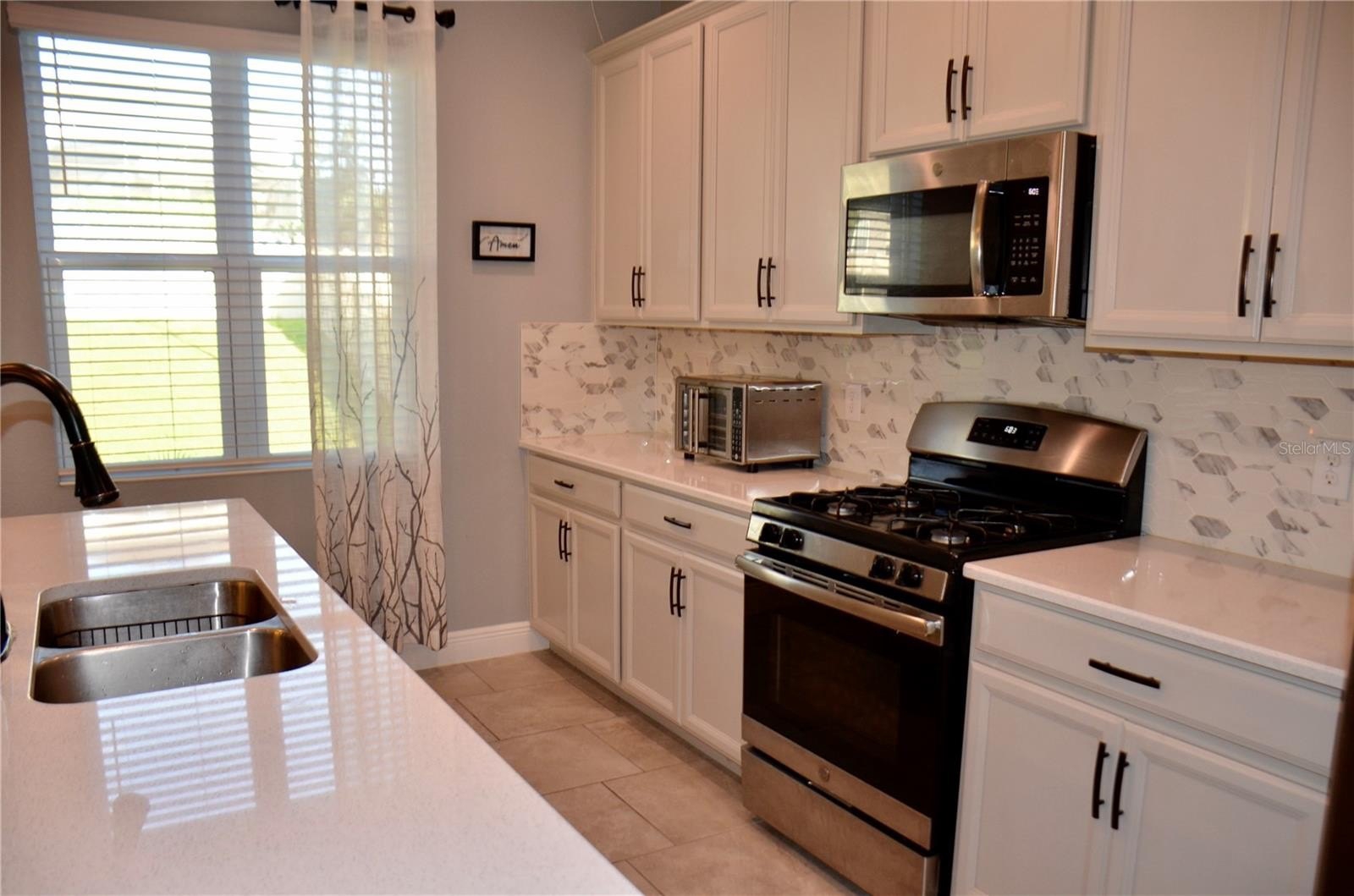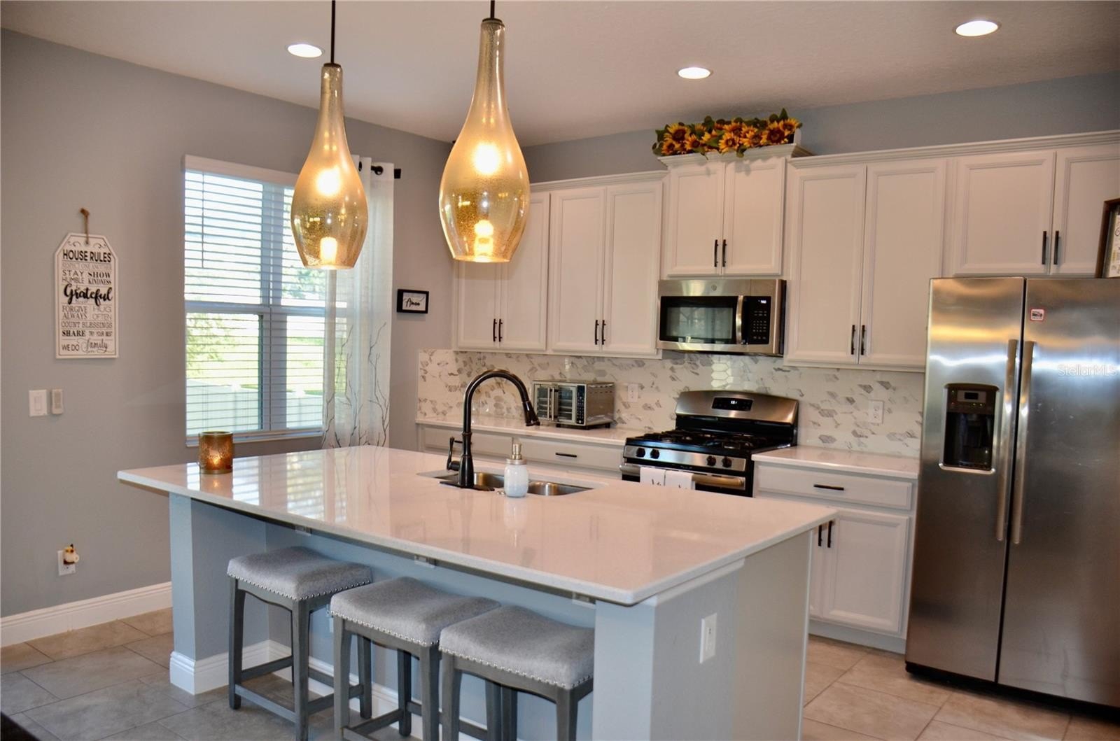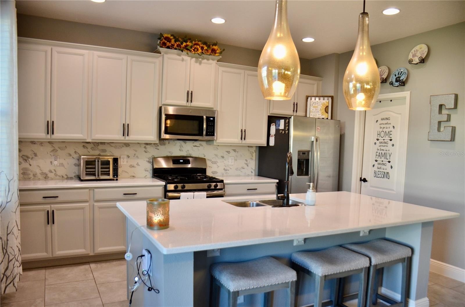 Step inside to find soaring 9.4-ft CEILINGS, luxury laminate wood stairs, beautiful QUARTZ COUNTERTOPS throughout, accent walls in family room and stairway, PLANTATION SHUTTERS on sliding glass doors and many more upgrades throughout the home. The modern DIGITAL SHOWER SYSTEM adds a luxurious touch, while the natural GAS community ensures efficiency and comfort year-round.