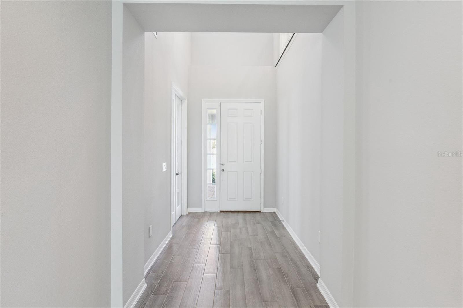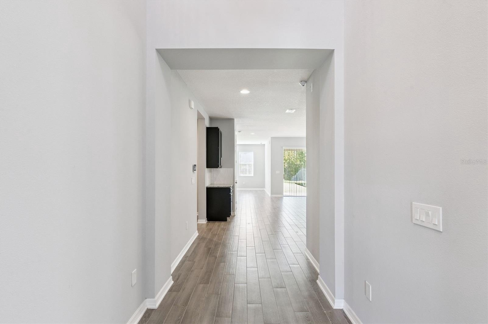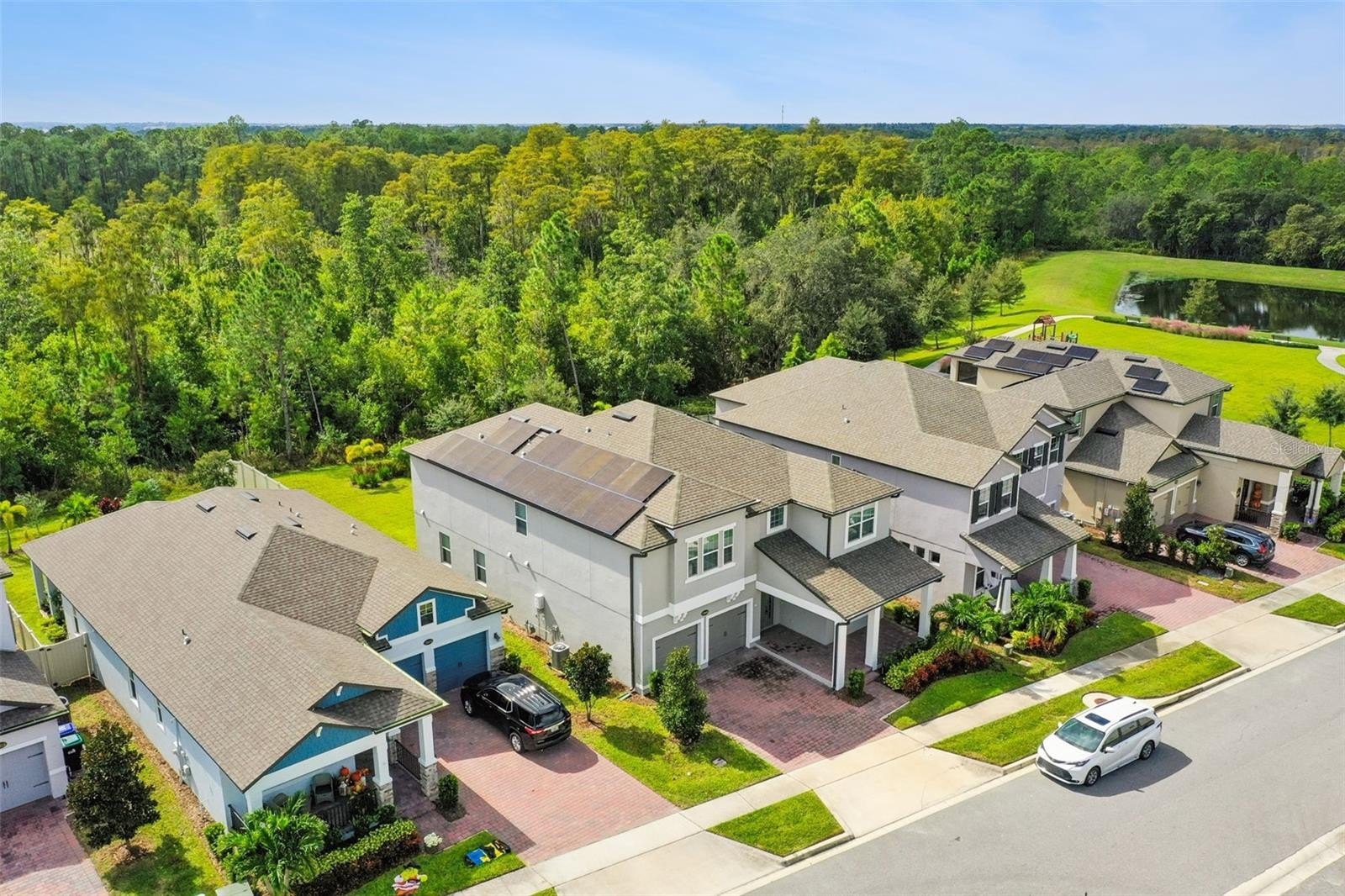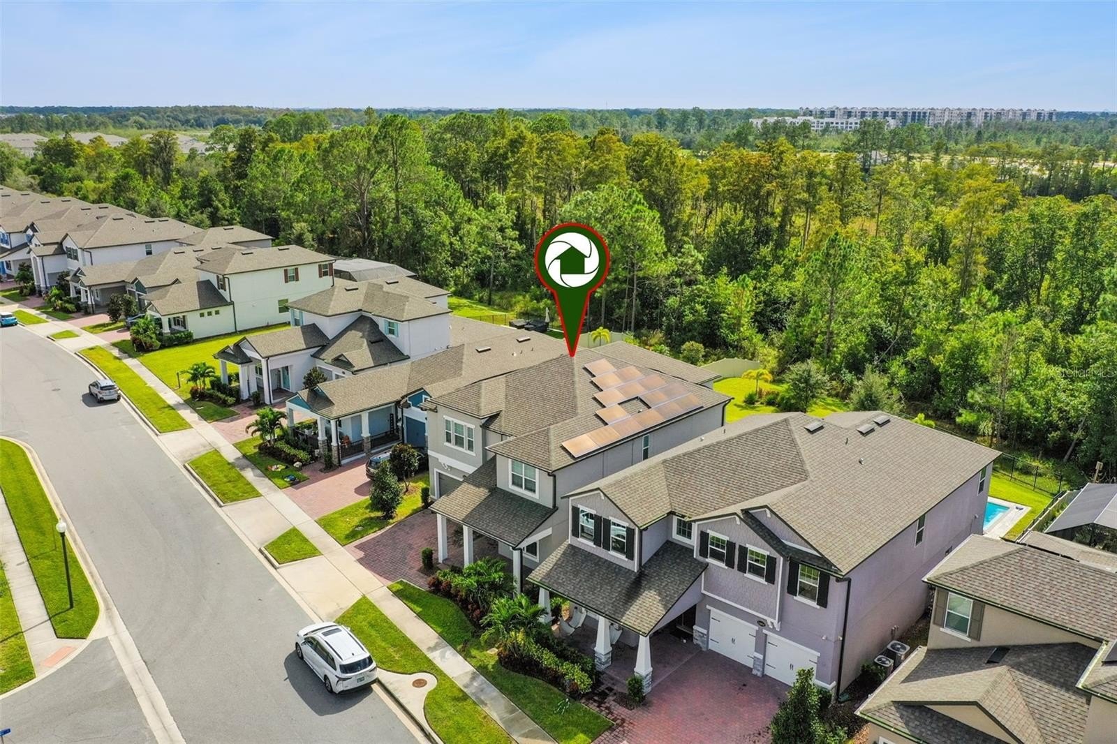 Welcome to this nearly new and lovely 5-bedroom, 4-bath home in the sought-after community of Encore at Ovation in the heart of Winter Garden/Horizon West. One of the neighborhood’s most popular floor plans, this home impresses with its smart layout and thoughtful design to suit any family. From the beautiful entryway and tall ceilings to the open, spacious kitchen, every detail feels elevated. The gourmet kitchen features dark-toned cabinetry, granite countertops, and a stunning textured backsplash that extends to the ceiling behind the stainless vent hood—adding both depth and flair. A cozy breakfast nook sits just off the kitchen, with additional seating at the oversized island, perfect for casual meals or entertaining. The large family room showcases expansive windows framing a private view—no rear neighbors and an exceptionally deep lot backing to serene natural scenery, a rare find in this area. Step outside to the covered lanai, perfect for relaxing or dining al fresco while enjoying the peaceful backdrop. This floorplan offers a first-floor bedroom (or office), a full bath and a separate exterior door offers ideal flexibility and easy outdoor access, great for a future pool or backyard oasis. Upstairs, enjoy a spacious bonus room with LVP flooring, additional guest or secondary bedrooms, and a huge primary suite with stylish, upgraded finishes throughout. The home is just a few houses away from a playground and green space, and residents also enjoy fantastic community amenities including a pool, fitness center, dog park, and more. Best of all, you’re only 3 miles from Flamingo Crossings—a vibrant retail and dining destination—and less than 5 minutes from the iconic Disney World arch. Experience modern living, beautiful design, and an unbeatable location all in one!