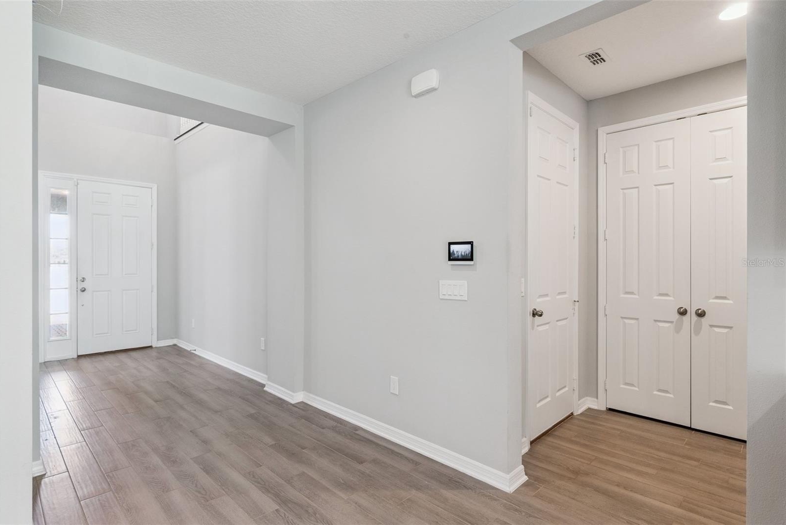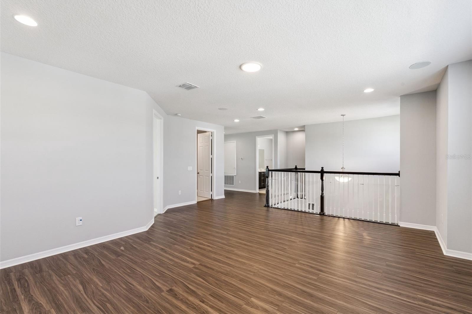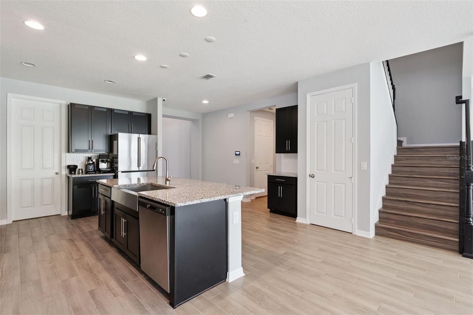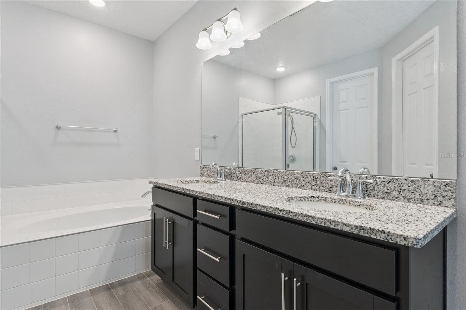 Welcome to this nearly new and lovely 5-bedroom, 4-bath home in the sought-after community of Encore at Ovation in the heart of Winter Garden/Horizon West. One of the neighborhood’s most popular floor plans, this home impresses with its smart layout and thoughtful design to suit any family. From the beautiful entryway and tall ceilings to the open, spacious kitchen, every detail feels elevated. The gourmet kitchen features dark-toned cabinetry, granite countertops, and a stunning textured backsplash that extends to the ceiling behind the stainless vent hood—adding both depth and flair. A cozy breakfast nook sits just off the kitchen, with additional seating at the oversized island, perfect for casual meals or entertaining. The large family room showcases expansive windows framing a private view—no rear neighbors and an exceptionally deep lot backing to serene natural scenery, a rare find in this area. Step outside to the covered lanai, perfect for relaxing or dining al fresco while enjoying the peaceful backdrop. This floorplan offers a first-floor bedroom (or office), a full bath and a separate exterior door offers ideal flexibility and easy outdoor access, great for a future pool or backyard oasis. Upstairs, enjoy a spacious bonus room with LVP flooring, additional guest or secondary bedrooms, and a huge primary suite with stylish, upgraded finishes throughout. The home is just a few houses away from a playground and green space, and residents also enjoy fantastic community amenities including a pool, fitness center, dog park, and more. Best of all, you’re only 3 miles from Flamingo Crossings—a vibrant retail and dining destination—and less than 5 minutes from the iconic Disney World arch. Experience modern living, beautiful design, and an unbeatable location all in one!