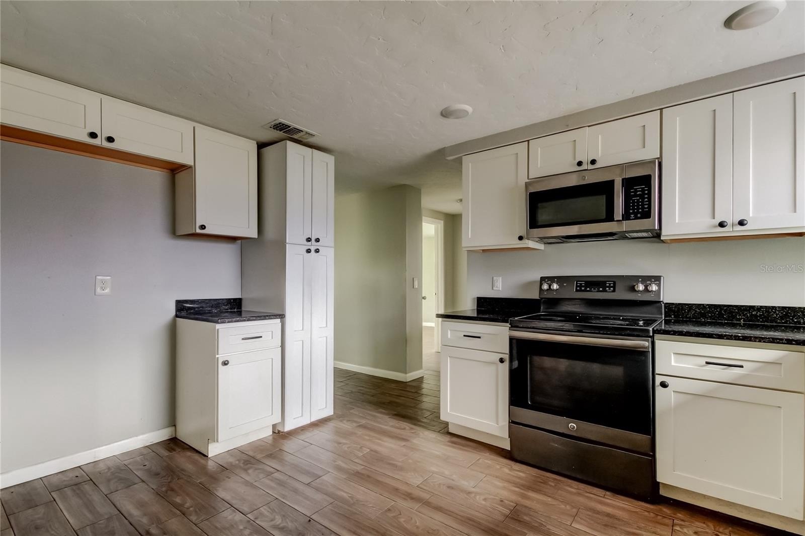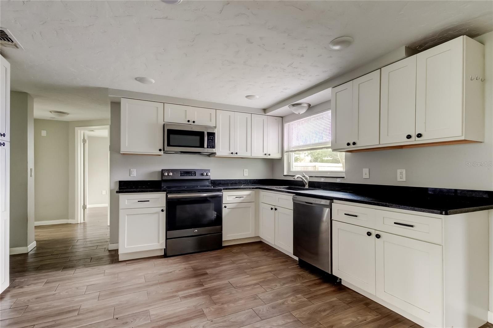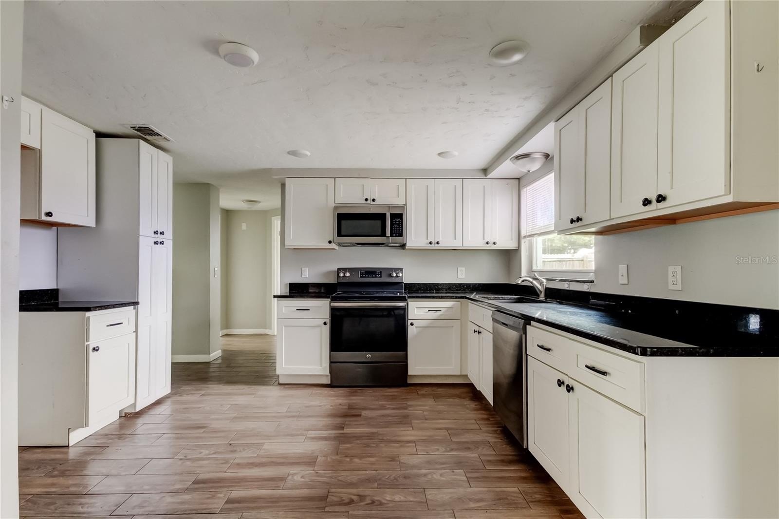 Auction Property. This lovely 3 bedroom, 2 bath home offers a fantastic opportunity for a savvy buyer or investor. While the garage area sadly suffered fire damage in January, the rest of the home shines with stylish upgrades and a functional layout. Step inside to attractive wood-look, plank tile flooring throughout the entire home (low maintenance - no carpet anywhere!). The kitchen has an abundance of cabinet space, a closet pantry and is complimented by granite countertops, stainless steel appliances and a cozy dinette area. The versatile split floor plan allows for comfort and privacy. The comfortable primary suite with sliders leading to the patio and spacious fenced yard, features a built-in closet and walk-in closet, and the updated ensuite bathroom enhances its appeal with earthy tile tones and a step-in shower. There are two generously sized guest bedrooms and a modern guest bath with tub and shower. Energy efficient windows assist in maximizing natural sunlight creating a brighter inviting atmosphere. You’ll appreciate the freedom of no HOA or CDD fees and your new home is located in Flood Zone X! This fabulous location is just 2 blocks from Lake Lisa Park, perfect for children and pets with its playground and green space and just minutes to schools, medical facilities, shopping plazas and dining. Explore nature trails at nearby Werner-Boyce Salt Springs State Park, kayak on its natural springs or have a relaxing beach day at Robert R. Rees Memorial Park. Take a short drive to downtown New Port Richey and enjoy its waterfront restaurants, music, retail therapy and events at Sims Park! This property is awaiting the right buyer to recognize its charm and potential!