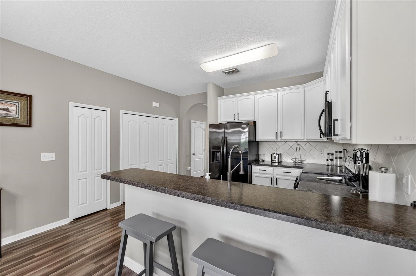 The bright and inviting floor plan offers an open-concept living and dining area with durable vinyl flooring, a modern kitchen with new black stainless steel appliances, and spacious bedrooms upstairs that provide comfort and functionality. Set within a secure, well-kept community featuring a pool and convenient access to shopping, dining, and major highways, this home combines style, comfort, and practicality in one perfect package.