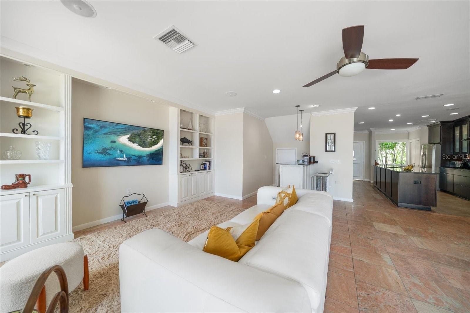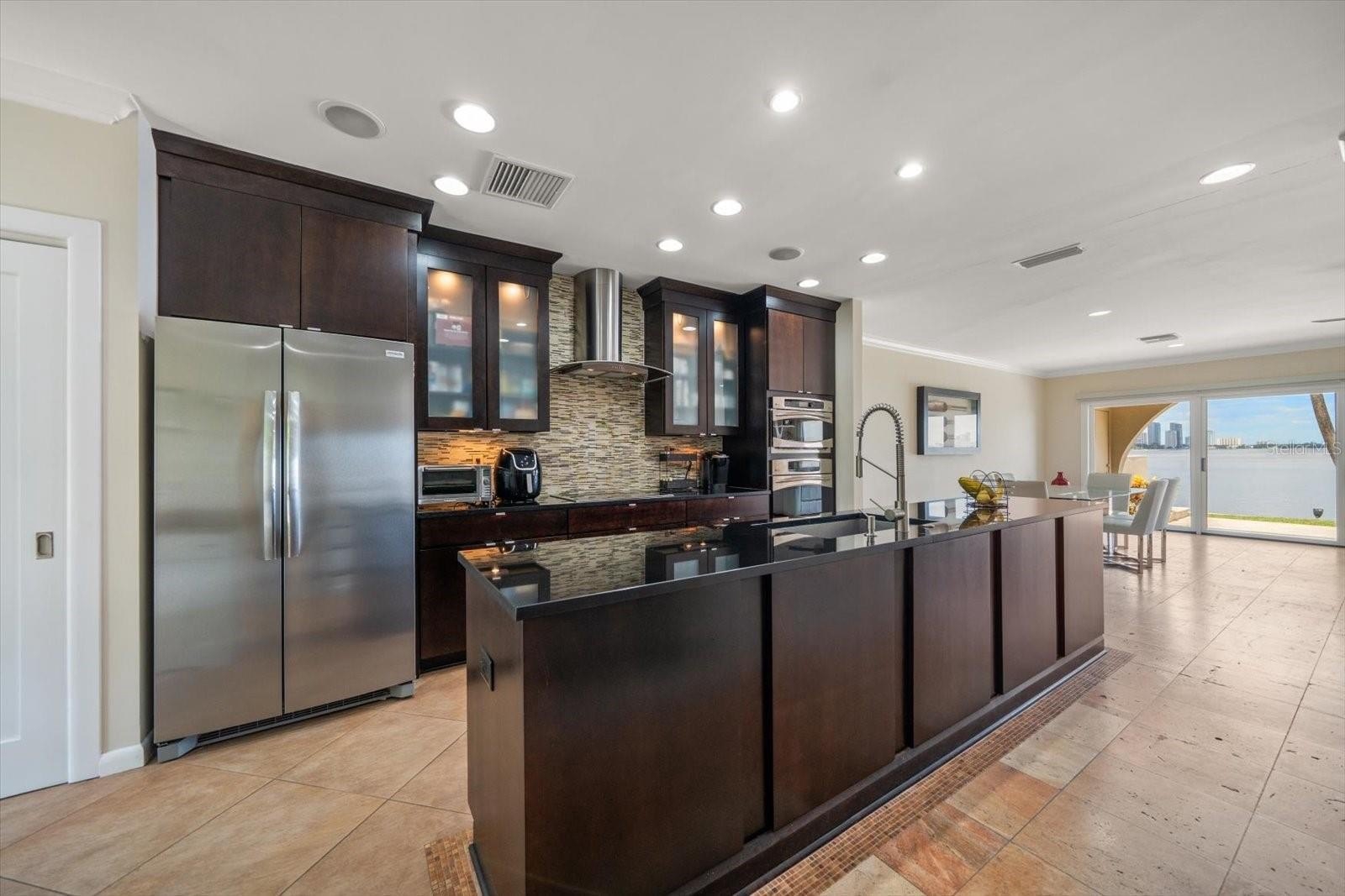 A elegant and contemporary, direct waterfront townhome with sweeping views of the Hillsborough Bay and Tampa’s city skyline. 2 suites. Located in Hawthorne Point, a gated private community with only ten owners and situated just off Bayshore Boulevard. This townhome features exceptional quality and exquisite design details. This open concept floor plan is ideal for entertaining. The kitchen has been remodeled with solid wood, custom-built cabinetry, granite countertops and stainless steel appliances. NEW refrigerator. Other features include crown molding, travertine tile floors downstairs, NEW wood floors upstairs, built-in bookshelves/cabinetry and a wet bar, complete with a wine cooler, PRIVATE elevator central vacuum, and electronic blinds. Air conditioning is 4 years old. The owner’s retreat features a very spacious walk-in closet with a custom closet system, electric window shades and a balcony overlooking the water. Carry the entertaining outside onto the spacious travertine tiled patio, equipped with surround sound and custom lighting. Enjoy the dolphin, stingray or manatee sightings right off your seawall! Community as space for a guess boat. Two car garage and extra store for bicycles. This is truly a special property and a rare opportunity to buy into this exclusive private and gated community.