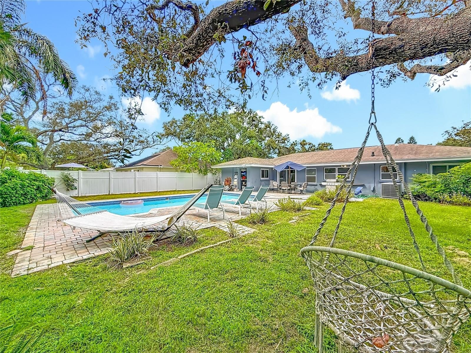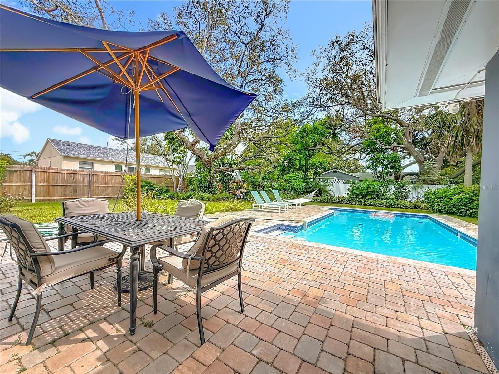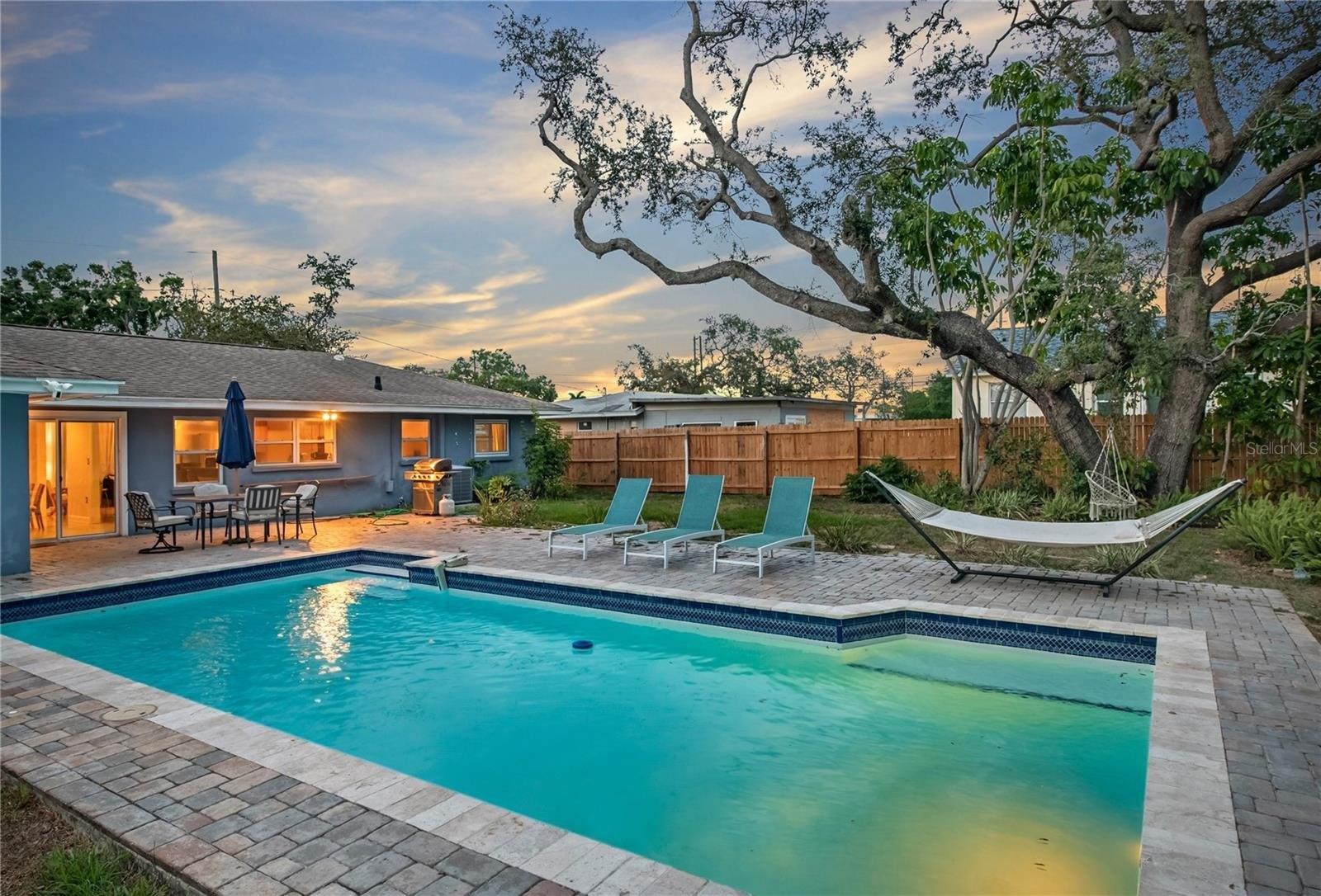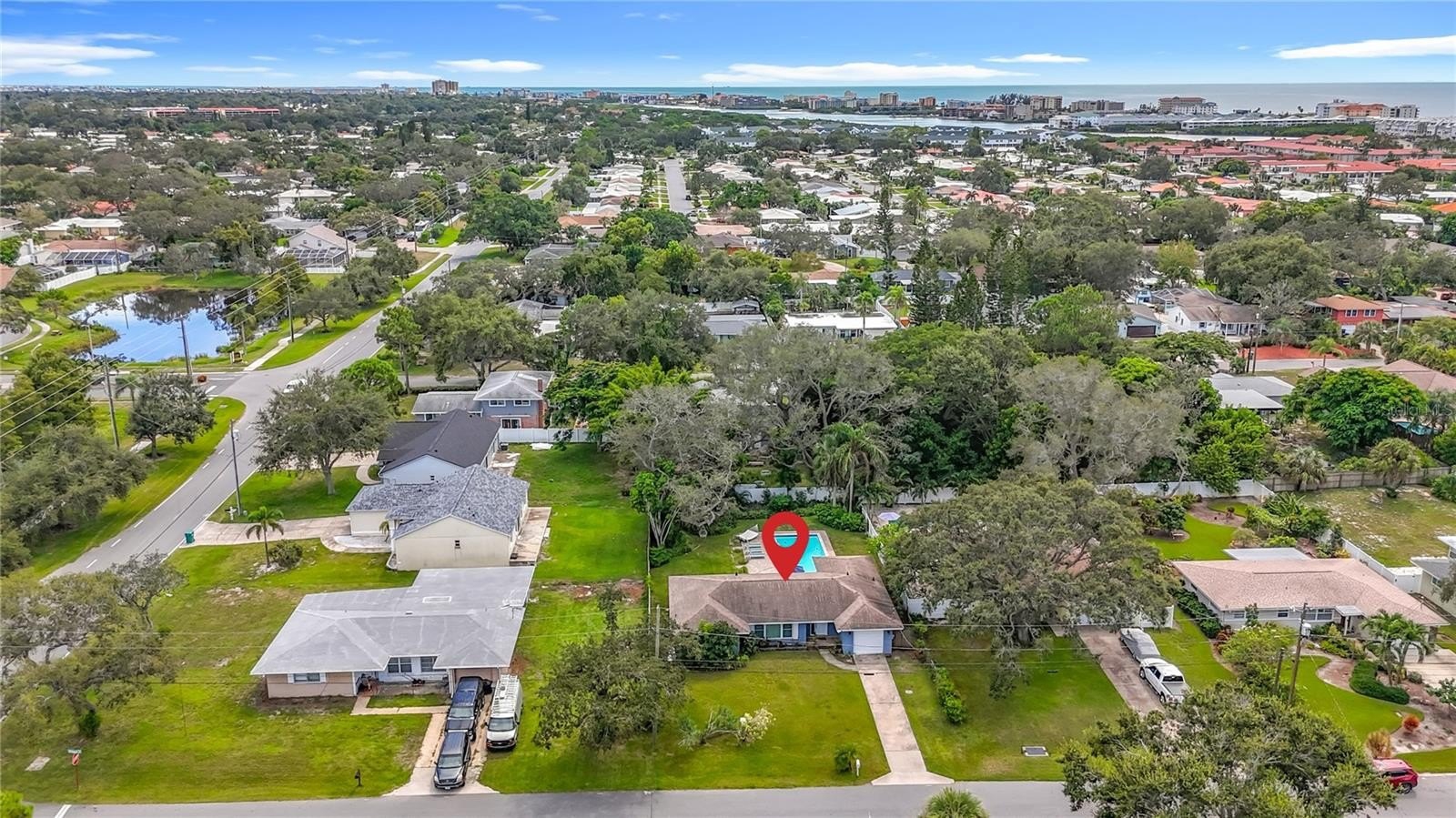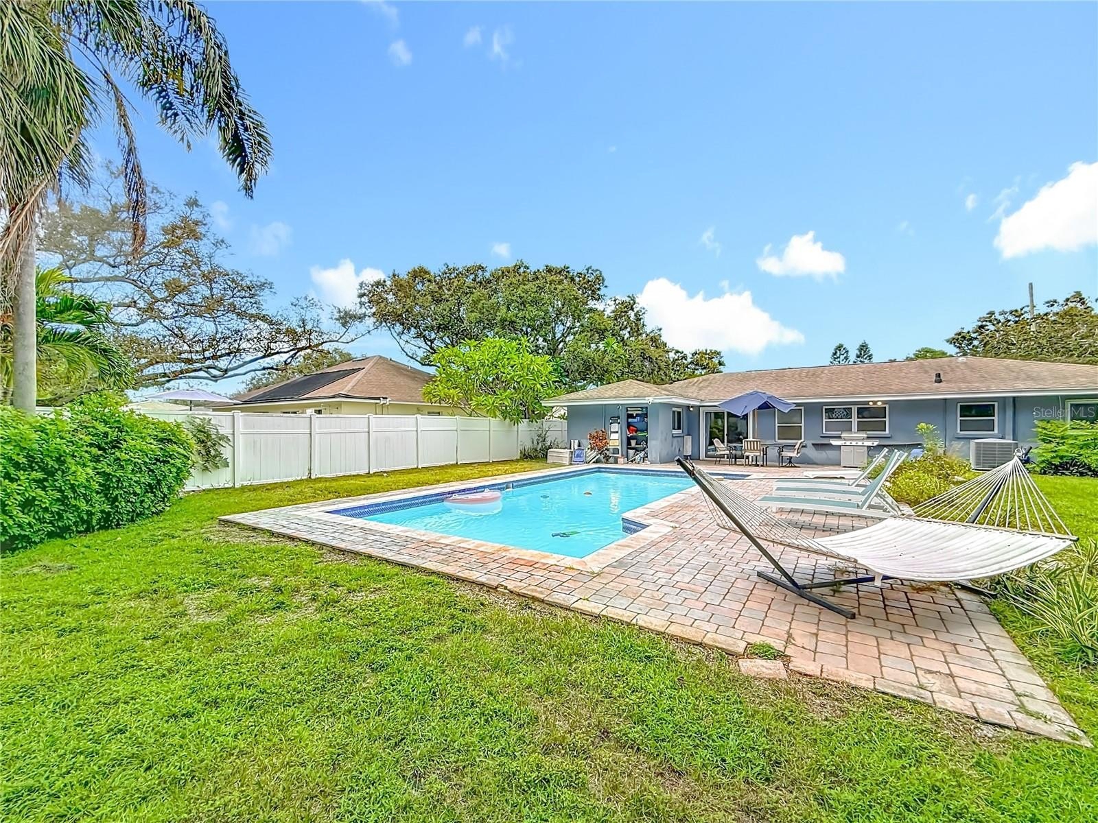 This beautifully maintained 3-bedroom, 2-bath home boasts a POOL and prime location, minutes from Indian Rock beach and all while situated in a desirable NO-FLOOD zone ( NON Evacuation zone). Can sell home fully FURNISHED or UNFURNISHED. Tired of the beach, you can ride your bike to George C. McGough Nature Park in 4 MINUTES and see rescue owls, bald eagles, and other birds. This home also features a potential fourth bedroom that could seamlessly function as an office, family room, or convert back to a single-car garage. With impact windows and a history of sustaining no damage from past hurricanes, this residence stays high and dry. Fully restored Diamond classic terrazzo flooring provides both durability and low maintenance throughout. The layout includes a dining room with a direct view of the pool through the door to the backyard, a spacious living room bathed in natural light from a large window, and an updated kitchen with stainless steel appliances. Step outside to your private backyard oasis, which showcases a newly installed privacy fence, beautiful PAVERS surrounding the sparkling pool, a spacious barbecue area for outdoor entertainment or family gathering. Additional highlights include Hurricane impact windows, pool resurface 2020. This home is a great investment opportunity! With its location in an unincorporated area allowing short-term rentals, you can earn extra income when you're not using it. Plus, the functional layout, natural light, and proximity to amenities make it a perfect vacation home or rental property. And with access to the Pinellas Trail, it's a great spot for outdoor enthusiasts! This rare opportunity offers a well-maintained home in an excellent location, good schools, desirable amenities, and a potential income stream. Schedule a private showing to view this beautiful home today.