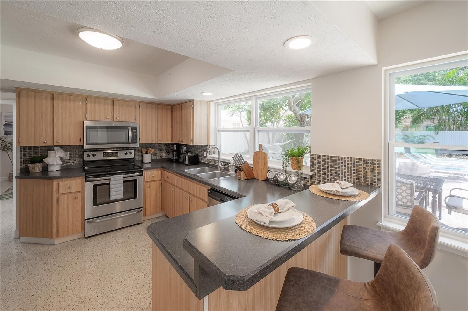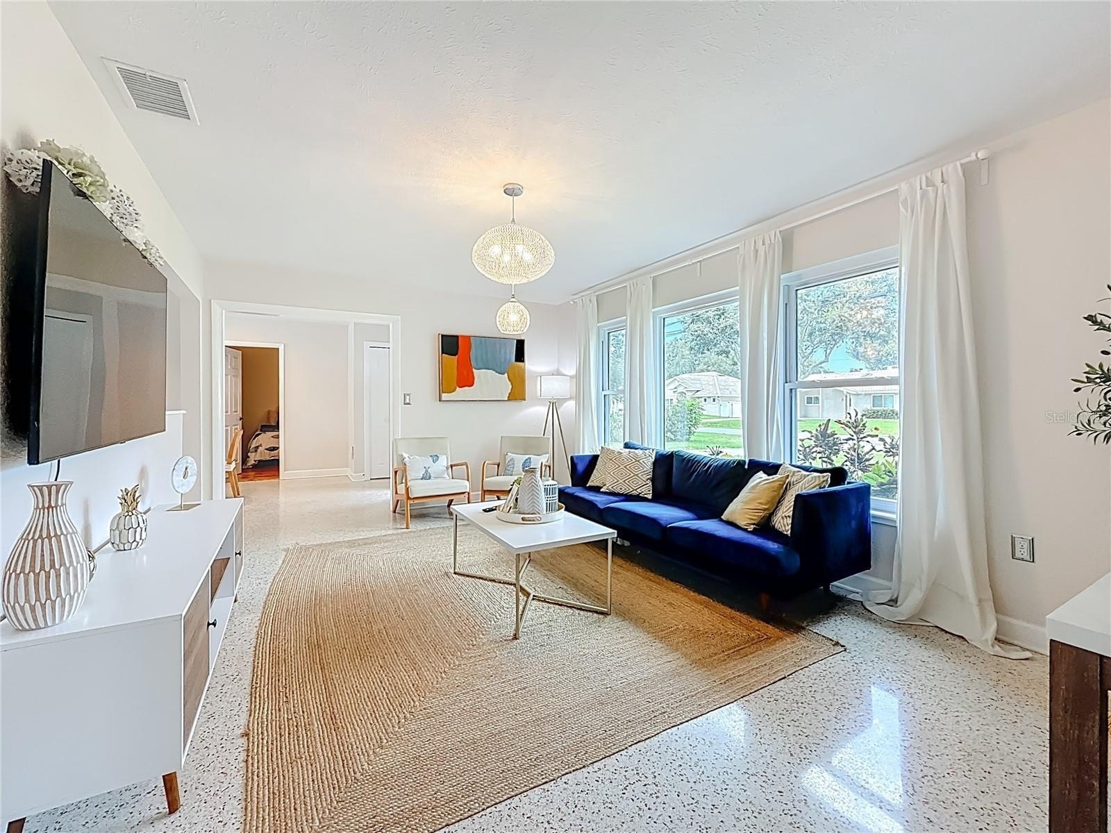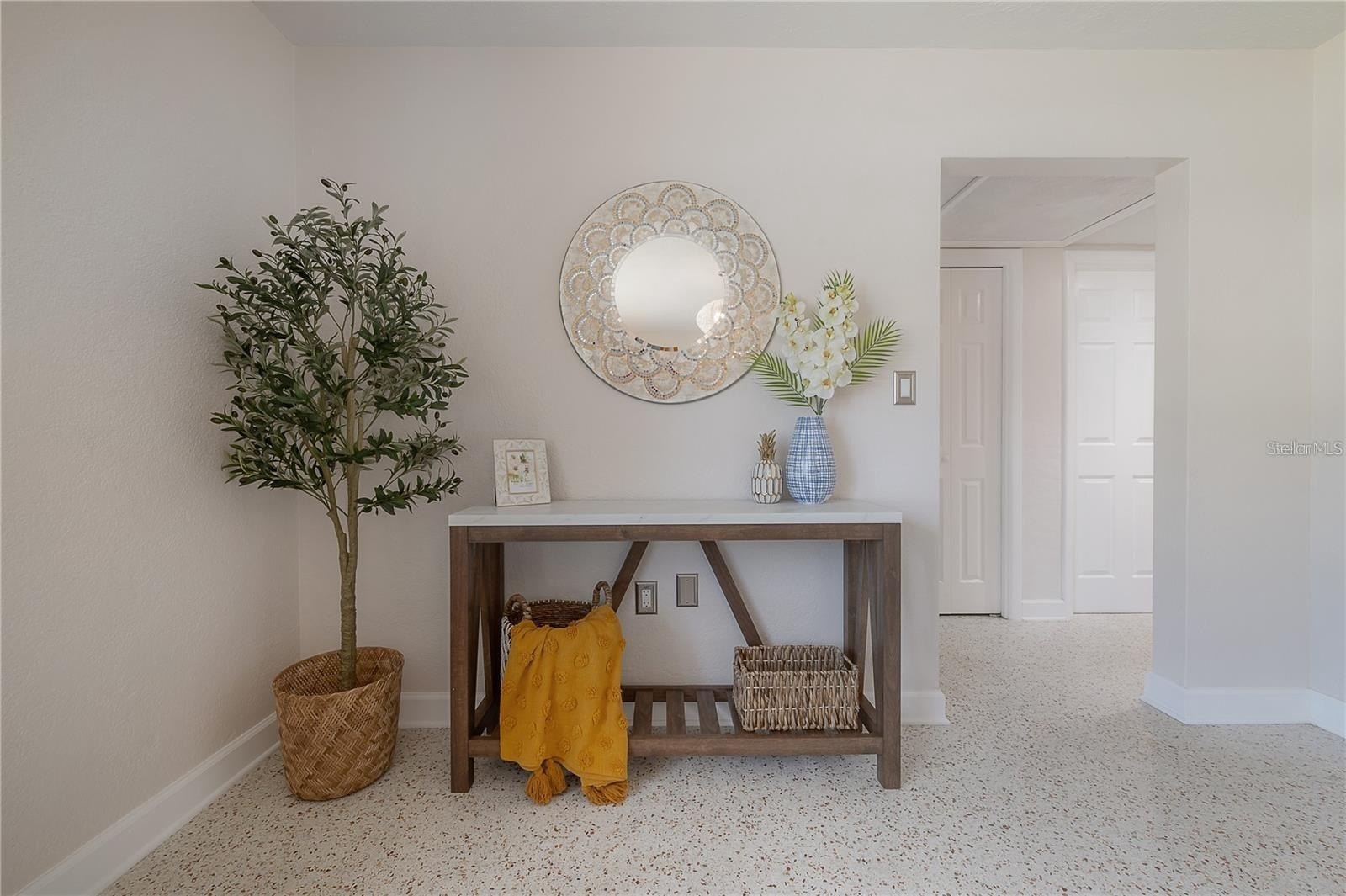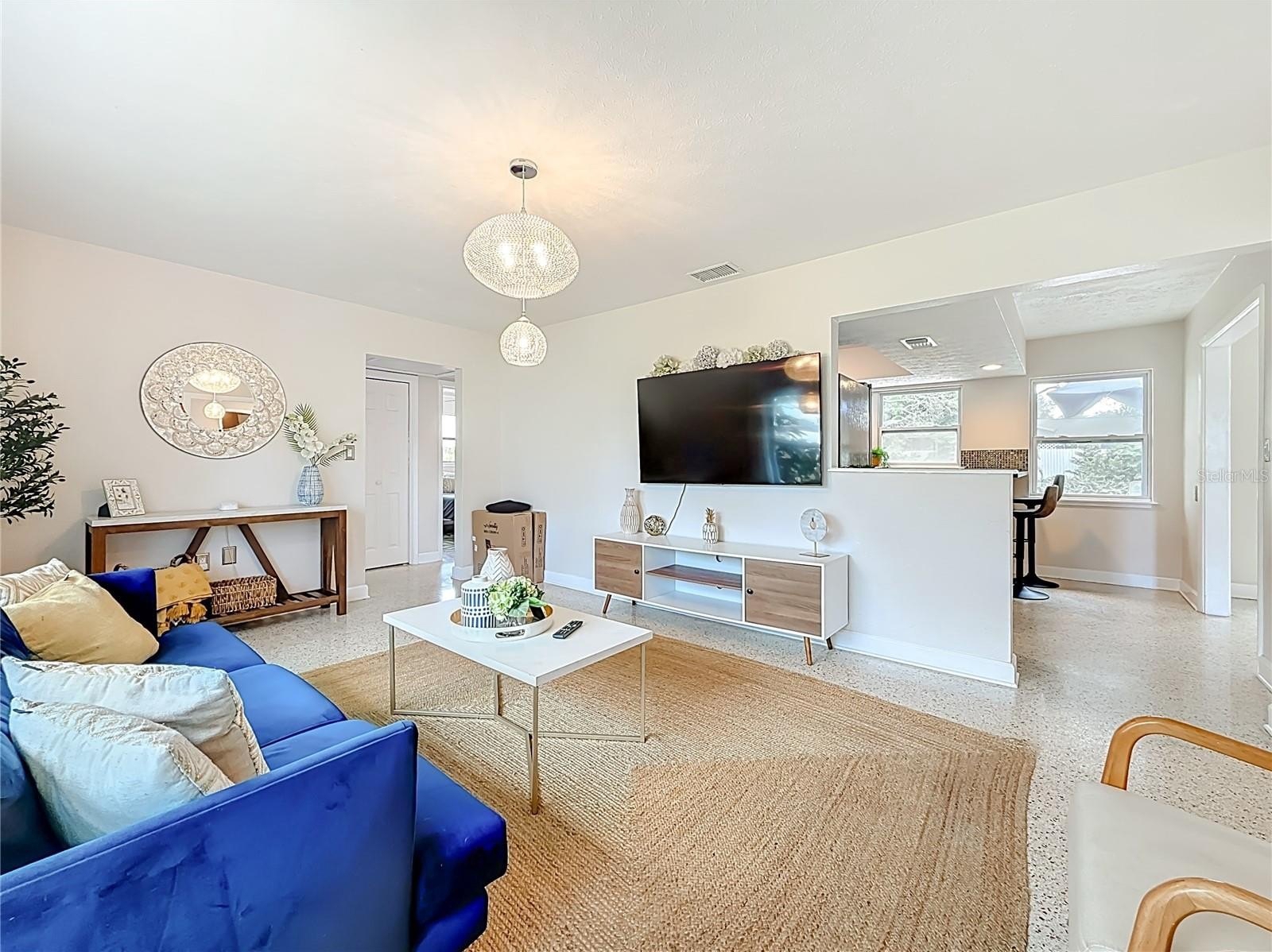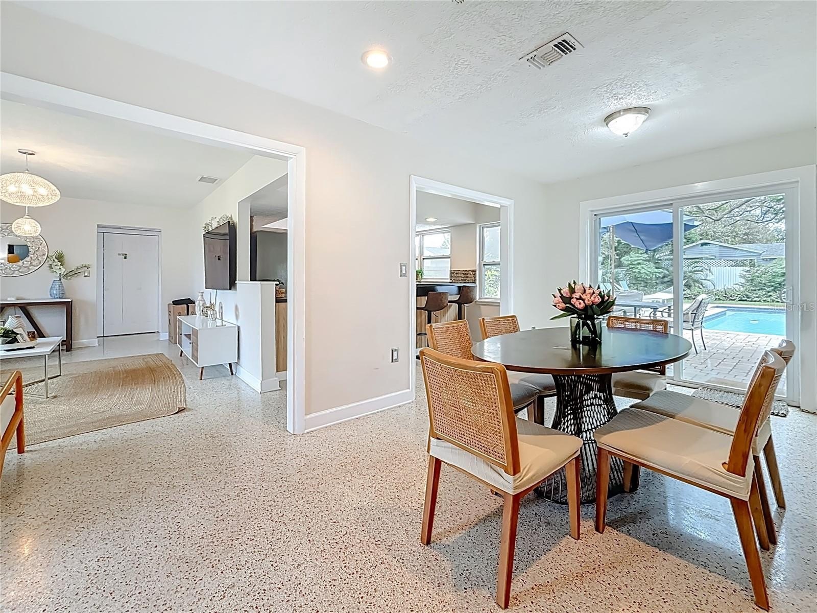 This beautifully maintained 3-bedroom, 2-bath home boasts a POOL and prime location, minutes from Indian Rock beach and all while situated in a desirable NO-FLOOD zone ( NON Evacuation zone). Can sell home fully FURNISHED or UNFURNISHED. Tired of the beach, you can ride your bike to George C. McGough Nature Park in 4 MINUTES and see rescue owls, bald eagles, and other birds. This home also features a potential fourth bedroom that could seamlessly function as an office, family room, or convert back to a single-car garage. With impact windows and a history of sustaining no damage from past hurricanes, this residence stays high and dry. Fully restored Diamond classic terrazzo flooring provides both durability and low maintenance throughout. The layout includes a dining room with a direct view of the pool through the door to the backyard, a spacious living room bathed in natural light from a large window, and an updated kitchen with stainless steel appliances. Step outside to your private backyard oasis, which showcases a newly installed privacy fence, beautiful PAVERS surrounding the sparkling pool, a spacious barbecue area for outdoor entertainment or family gathering. Additional highlights include Hurricane impact windows, pool resurface 2020. This home is a great investment opportunity! With its location in an unincorporated area allowing short-term rentals, you can earn extra income when you're not using it. Plus, the functional layout, natural light, and proximity to amenities make it a perfect vacation home or rental property. And with access to the Pinellas Trail, it's a great spot for outdoor enthusiasts! This rare opportunity offers a well-maintained home in an excellent location, good schools, desirable amenities, and a potential income stream. Schedule a private showing to view this beautiful home today.