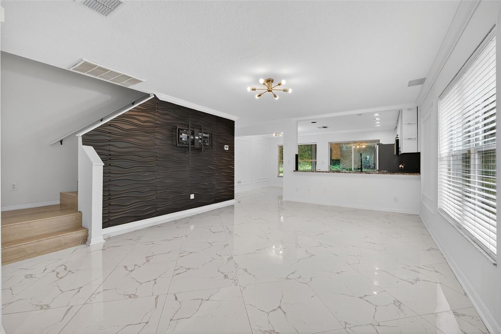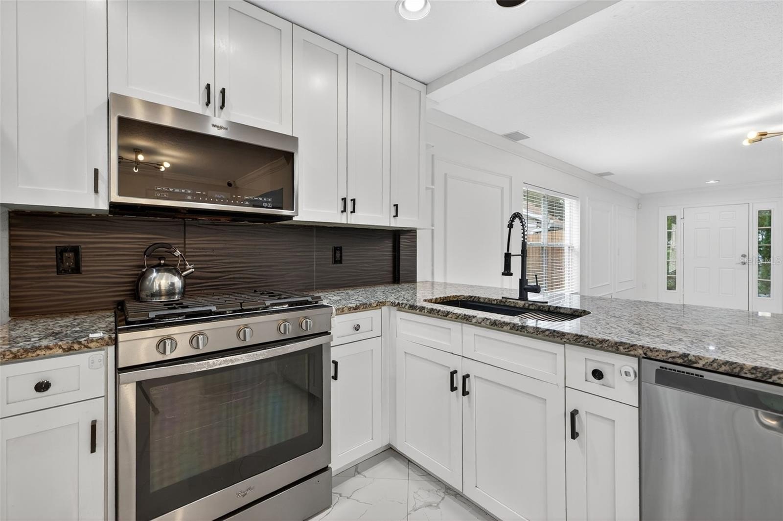 Downstairs, porcelain tile floors guide you into the expansive living room—a wide-open space that invites both lazy Sunday lounging and vibrant weekend entertaining. It’s anchored by granite counters that add a sleek, modern edge and create a natural flow into the stylish kitchen. Here, solid wood cabinets provide ample storage, while gas cooking ensures every culinary experience is as enjoyable as it is efficient. Whether you're prepping a quick weekday meal or entertaining for the holidays, this kitchen is ready for anything.